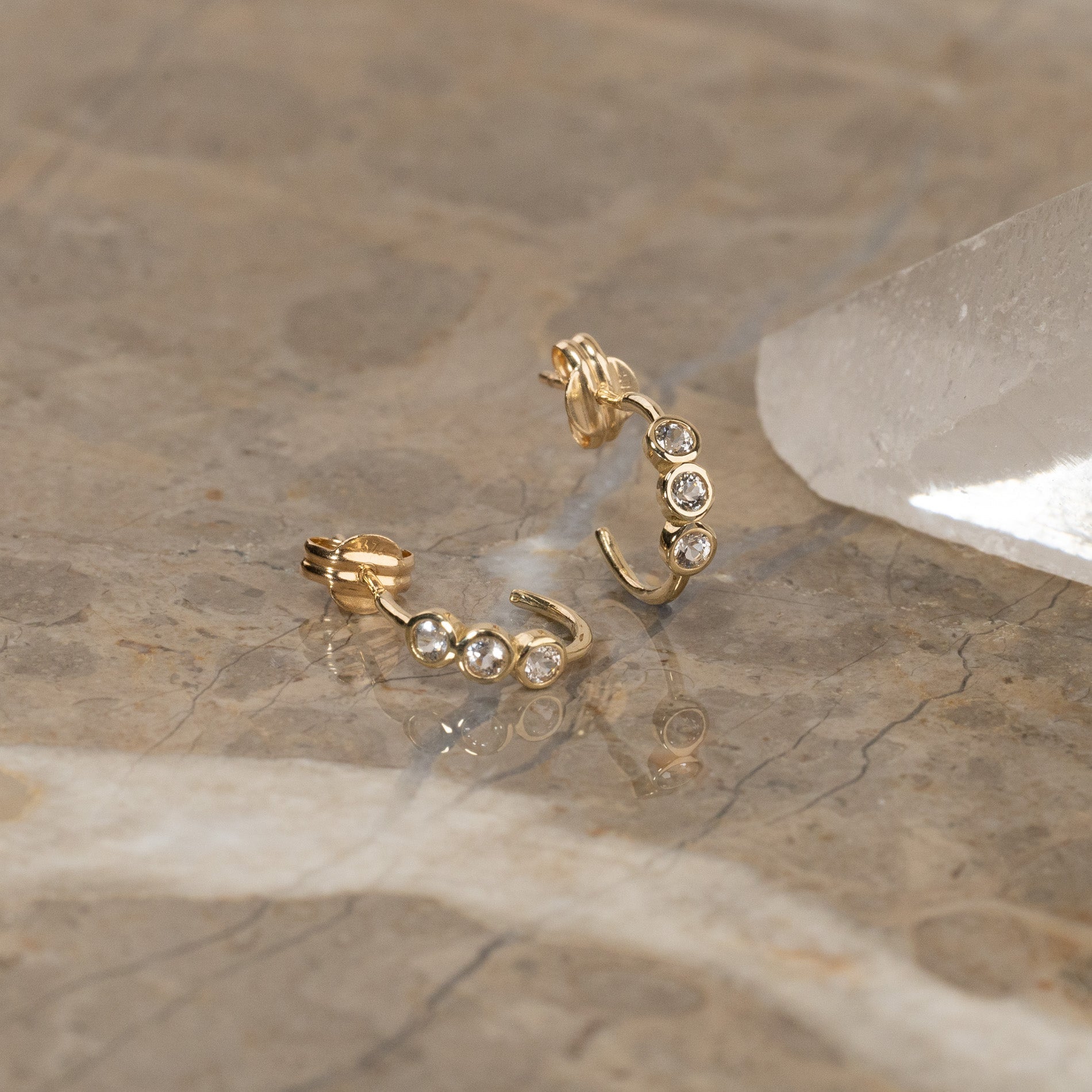 TRINITY WHITE TOPAZ SOLID GOLD EARRING