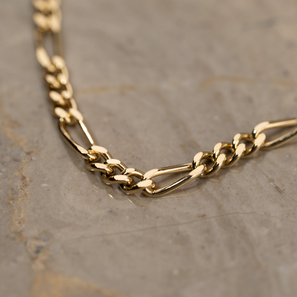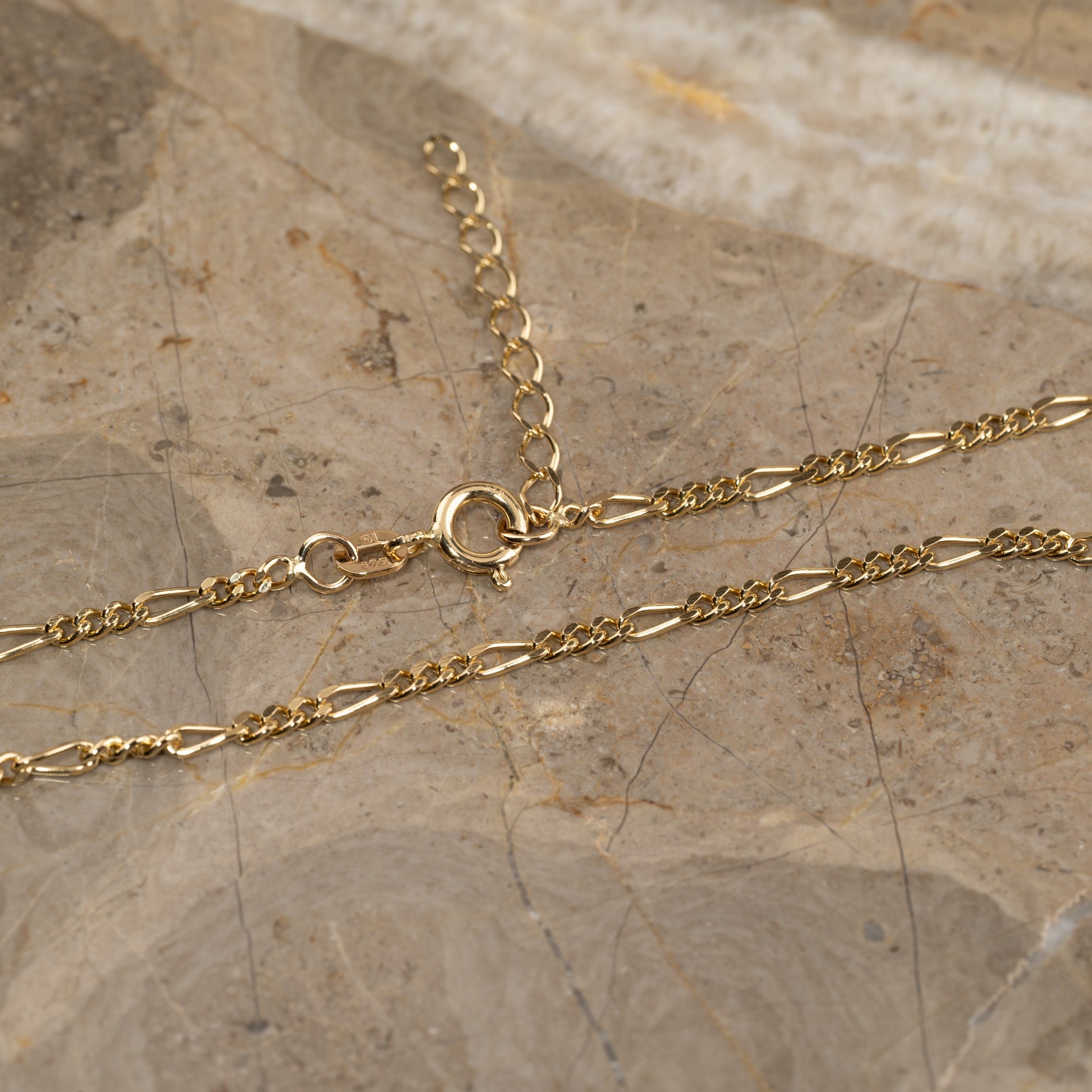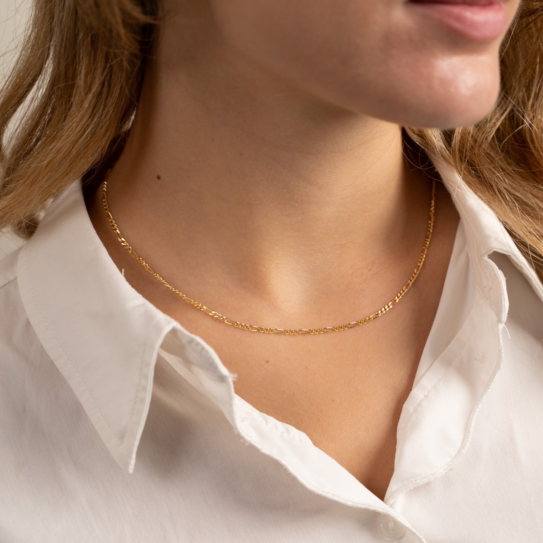 Unsere Uma-Halskette hat einen eleganten und modernen Ausdruck. Die Kette ist ein Twist von der klassischen Panzerkette, da die Kette aus einem Muster von drei kleinen und einem länglichen Gelenk besteht. Eine elegante Halskette, die zu allen Gelegenheiten passt