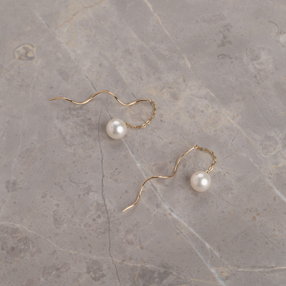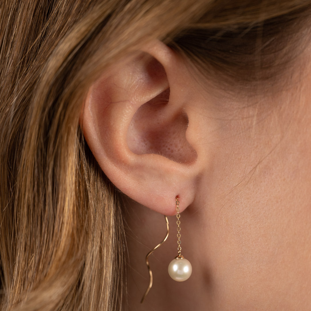 The earring has a beautiful freshwater pearl connected to a chain which has a solid and nice swirl at the back.