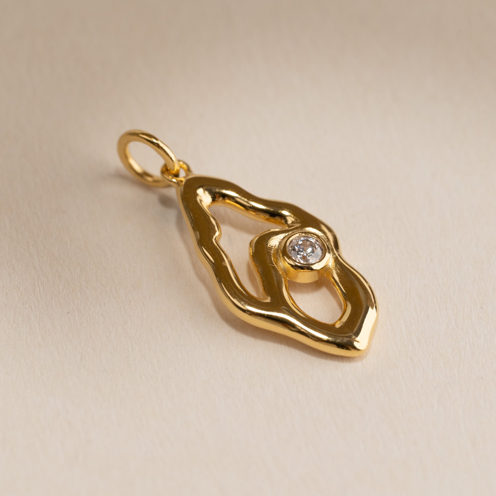 Pendant crafted from 100% recycled 18k gold-plated sterling silver, set with a clear zircon in an organic design. Soft, flowing lines give it a feminine and harmonious look, making it both unique and eye-catching.