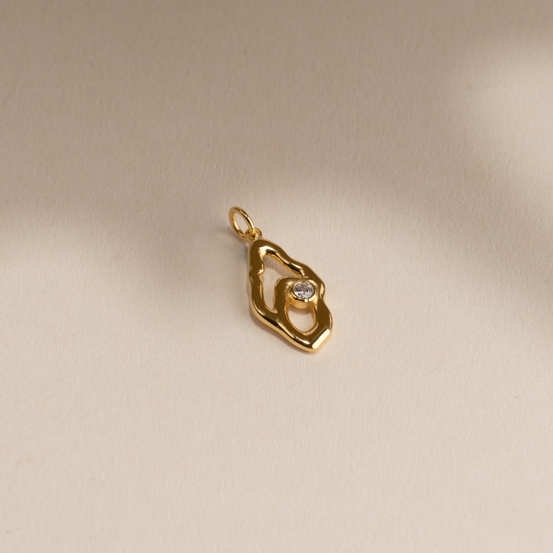 Gold-plated pendant with soft, organic lines and a clear zircon