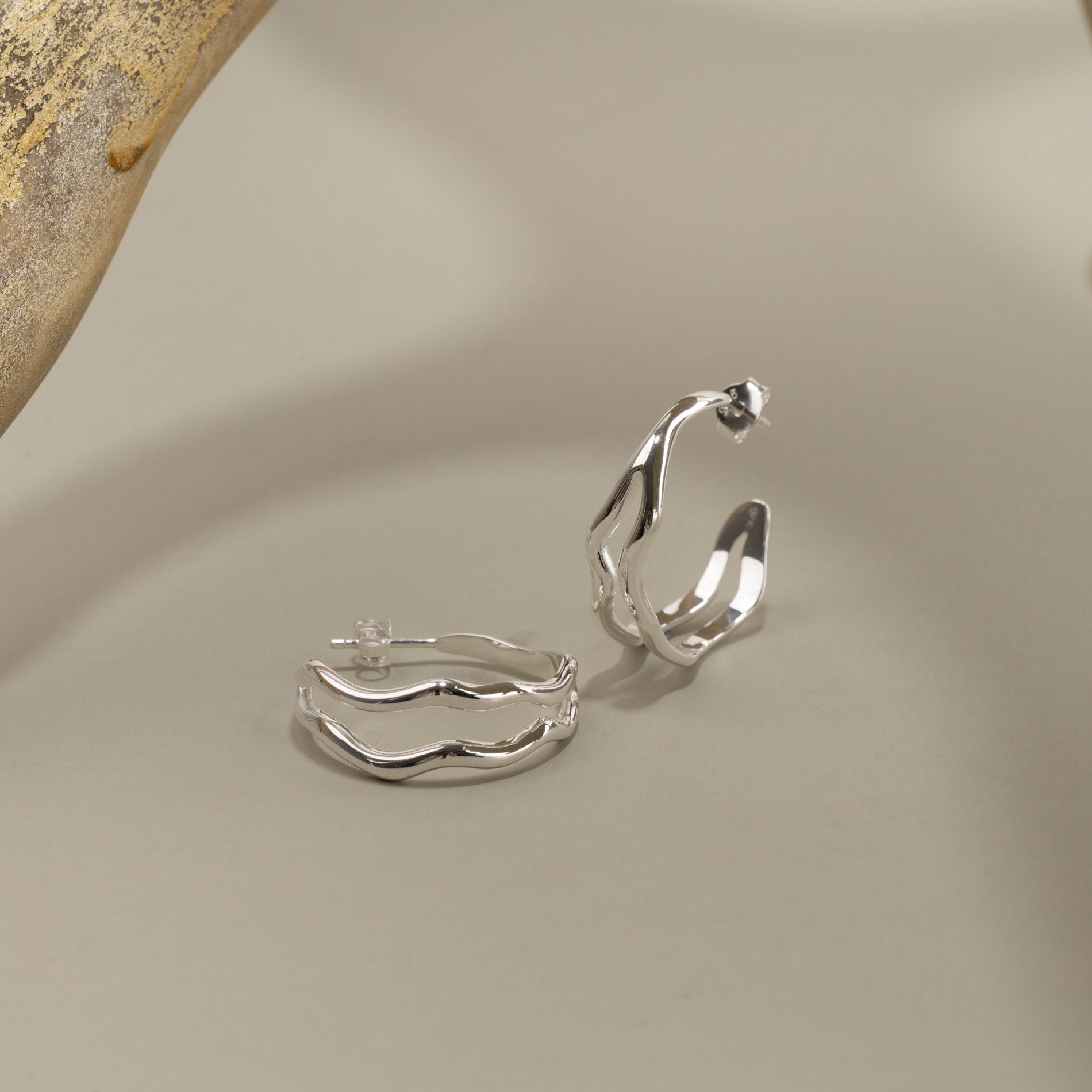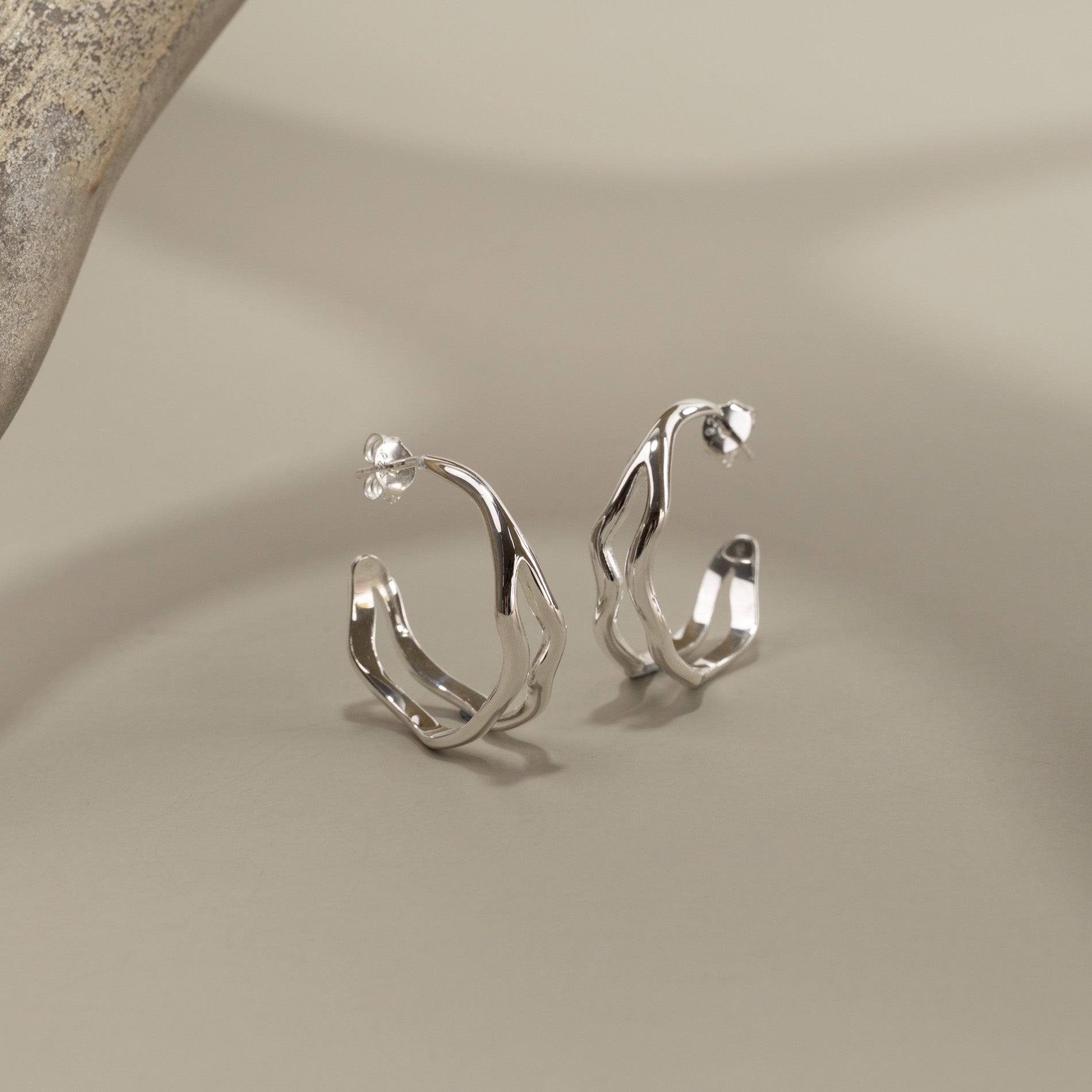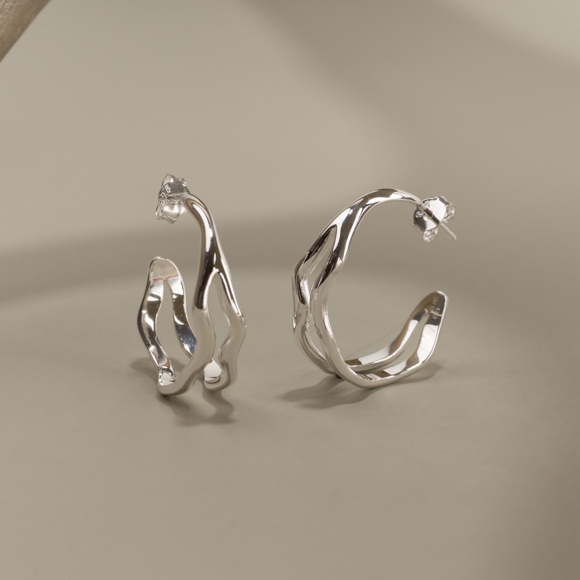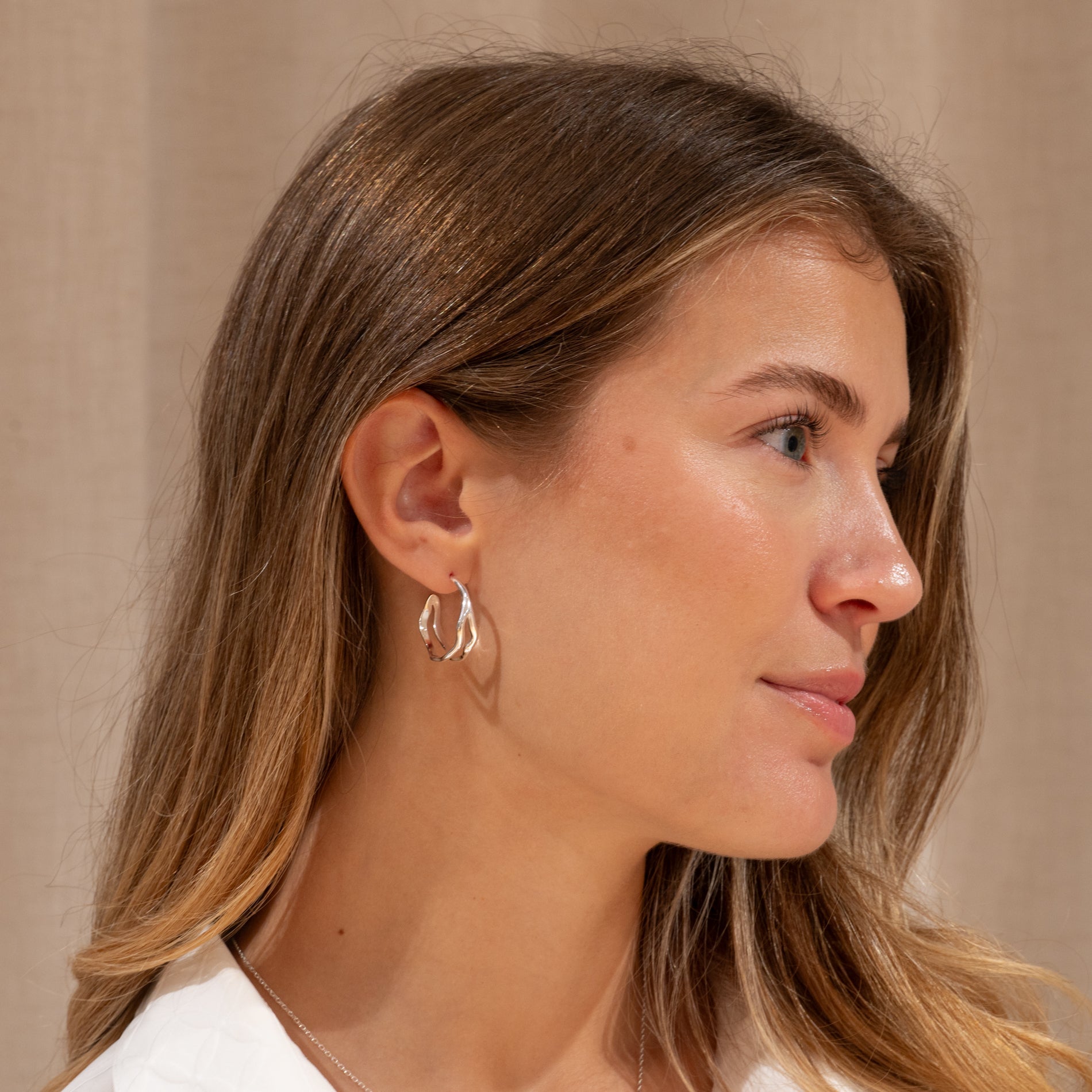 Hoop earrings crafted from 100% recycled 925 sterling silver with an organic design. Soft, curved lines give them an elegant and harmonious expression, making them both modern and timeless.