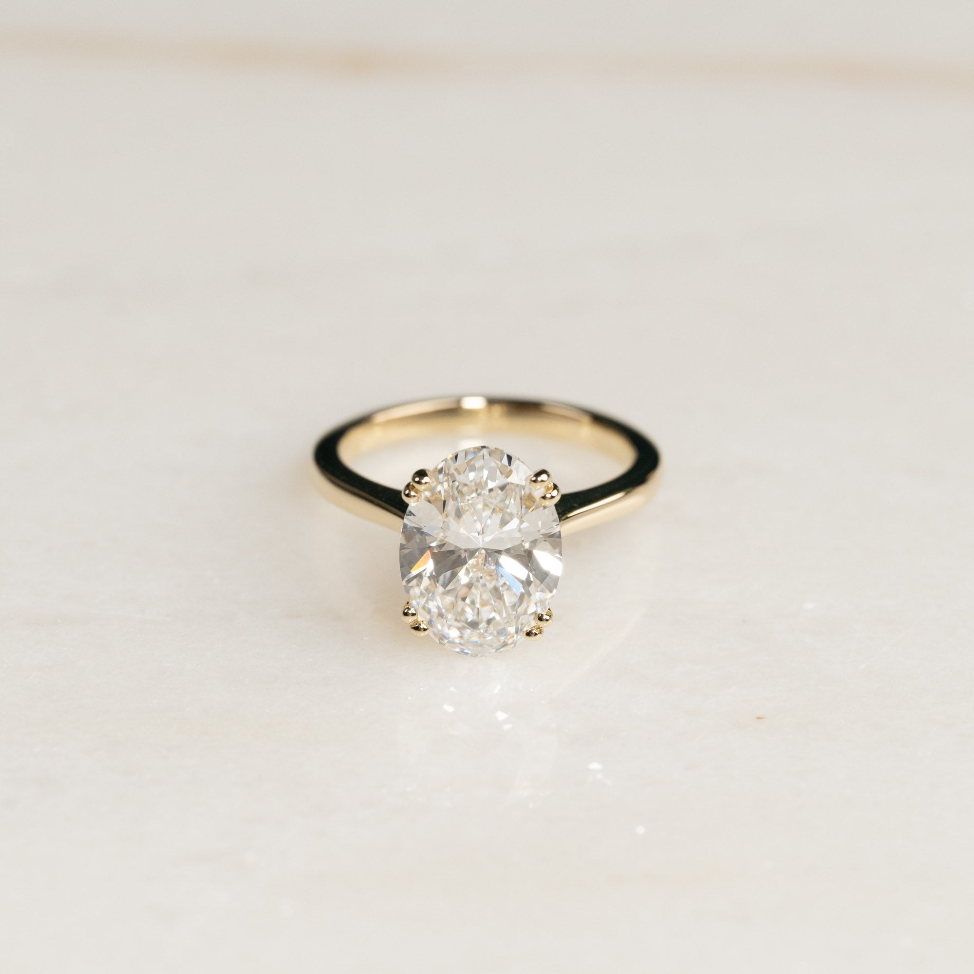 DOUBLE-CLAWED TULIP-SET OVAL-CUT DIAMOND RING - 3.0ct