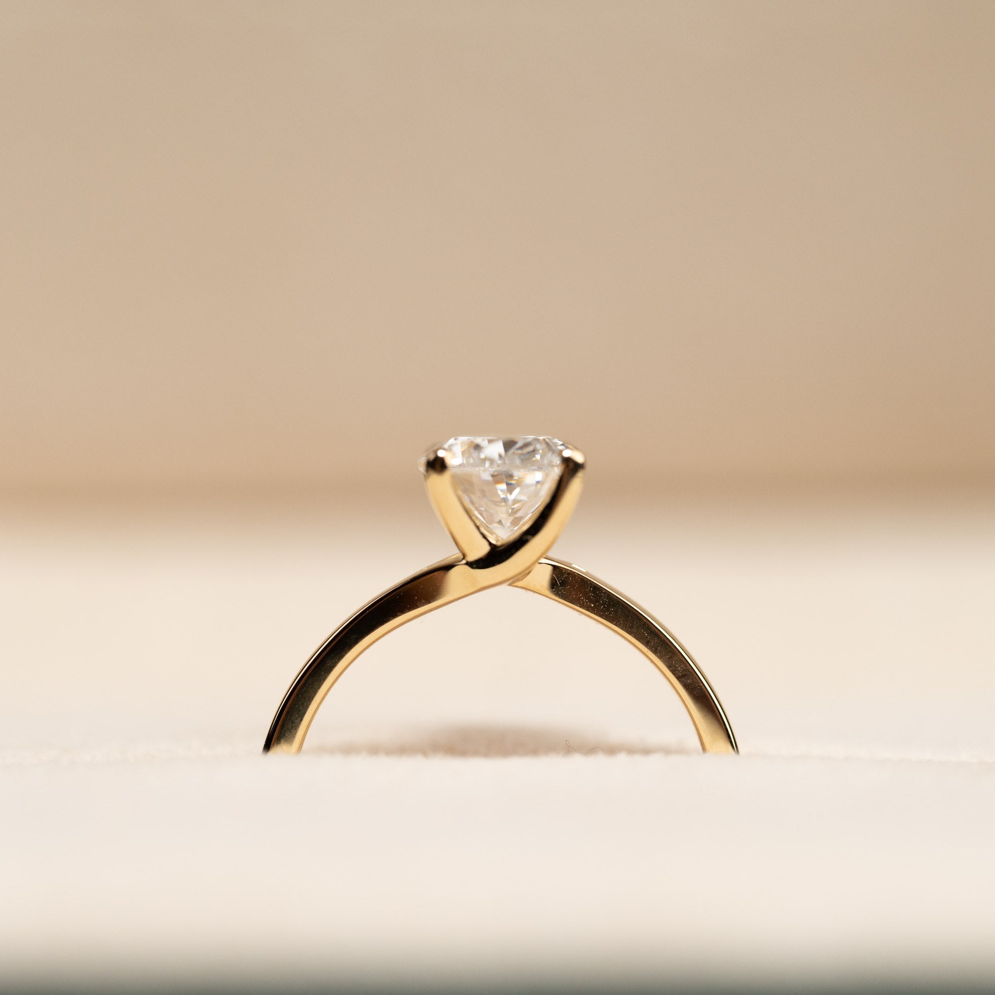 As part of the process, you’ll choose the diamond quality that best suits your preferences – including both colour and clarity. We typically use colour grade E-F, which ensures beautifully clear, colourless stones with exceptional brilliance. For clarity, we work with VVS2 as a minimum, meaning any inclusions are extremely minimal and not visible to the naked eye.