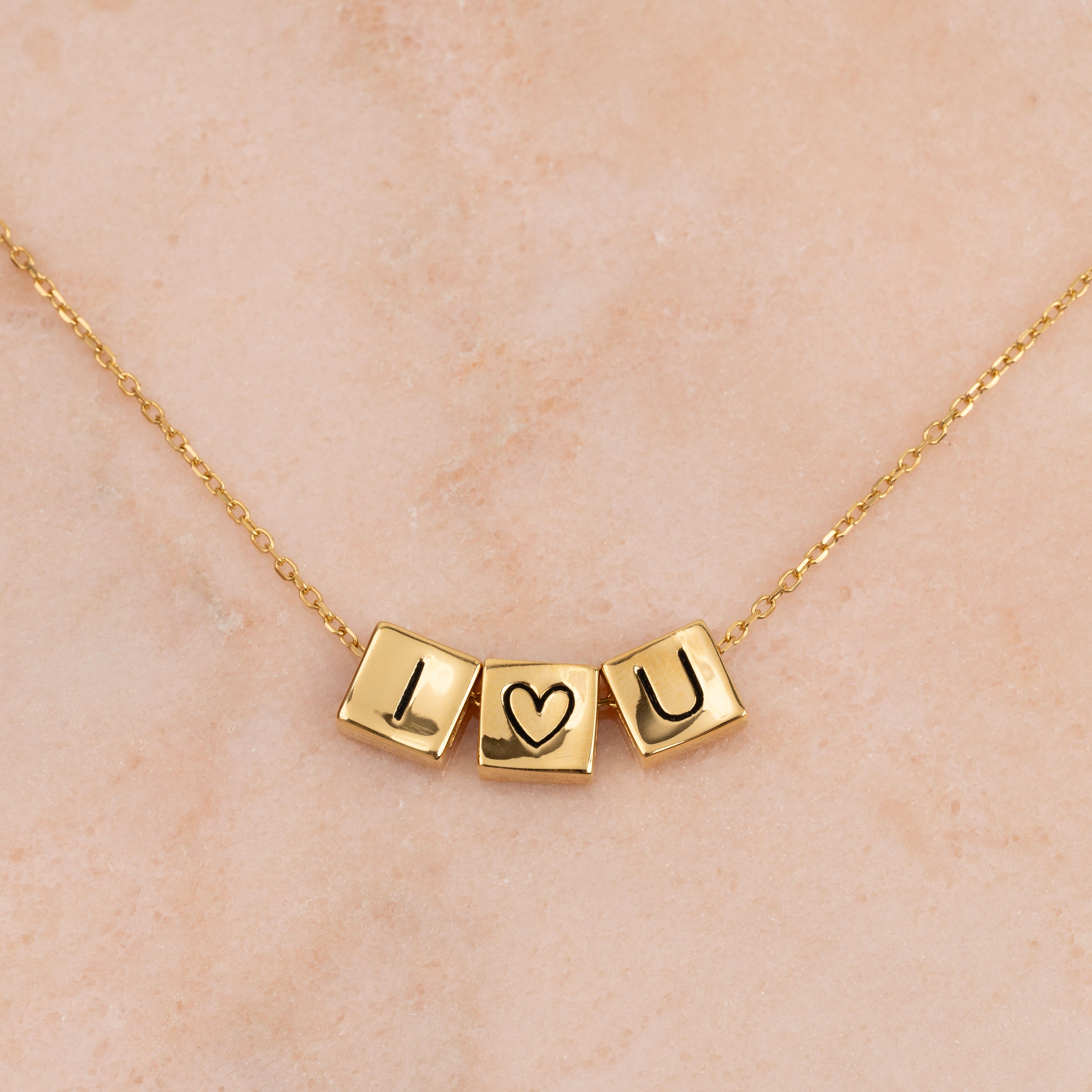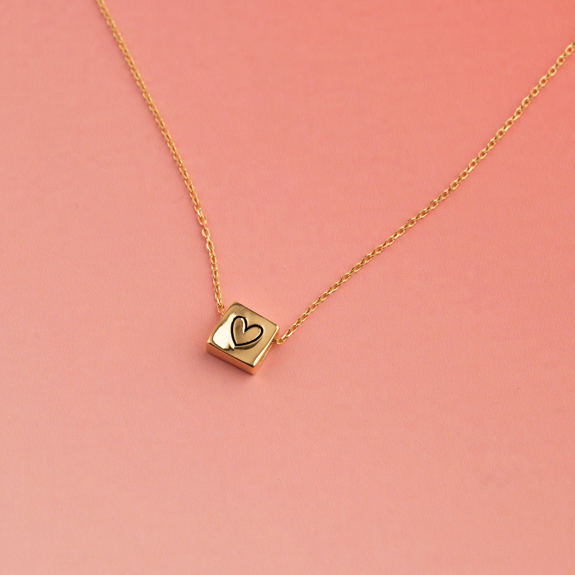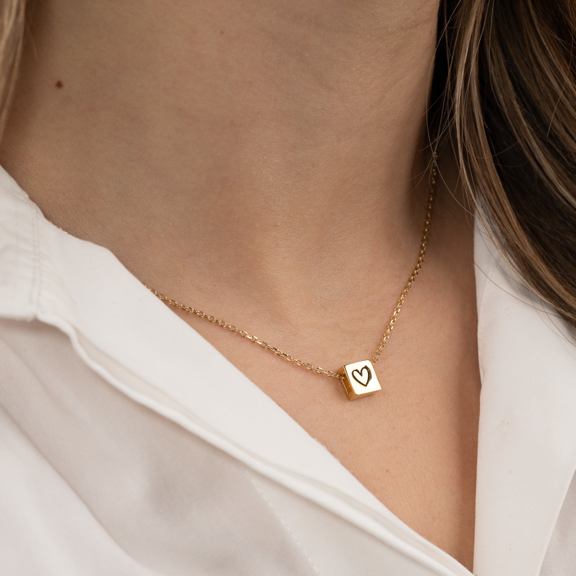 A pendant with subtle retro influences, inspired by classic keyboard keys. The design appears on both sides of the pendant. It measures 8 x 8 mm and has a slide-in opening of approximately 4 mm, making it easy to add to a necklace.