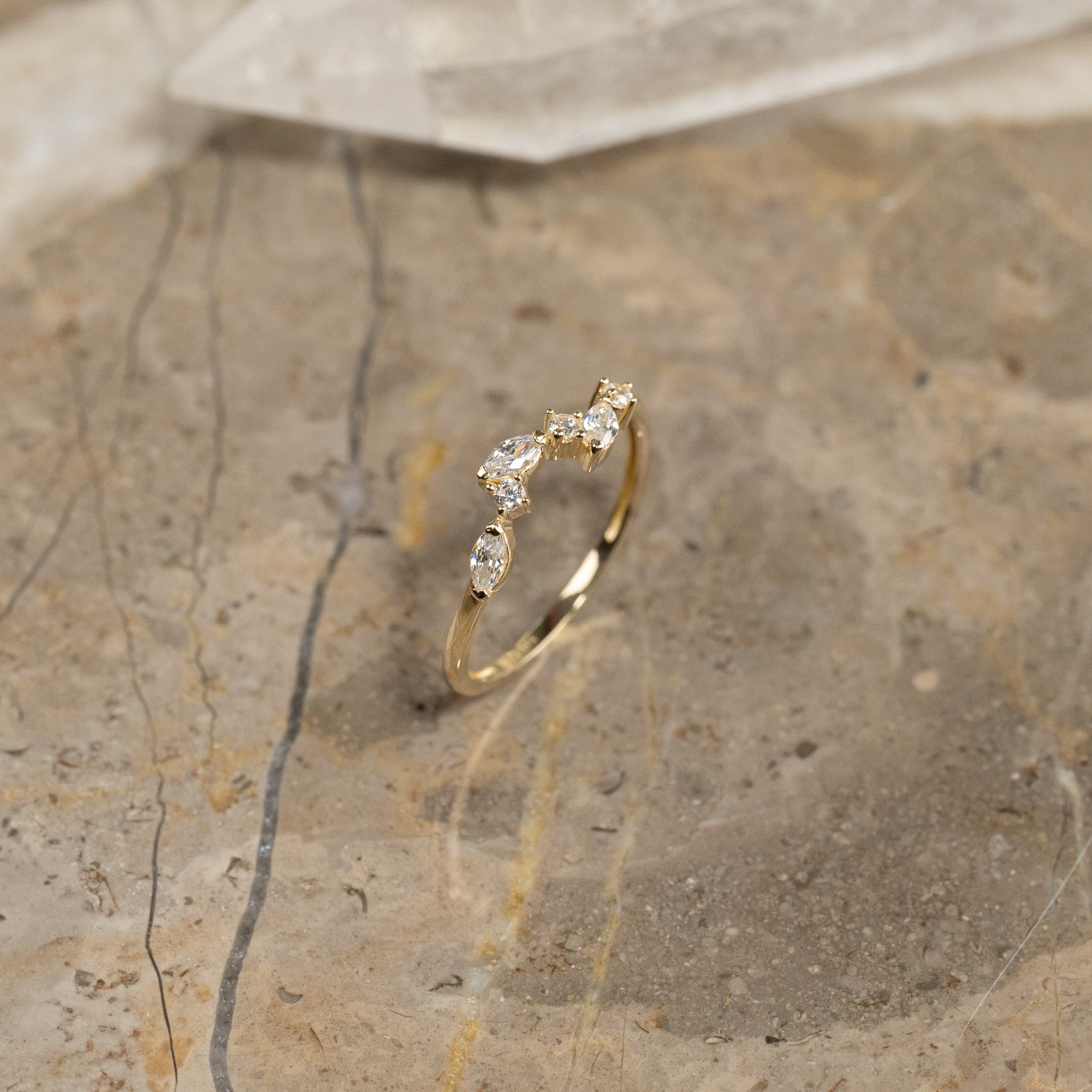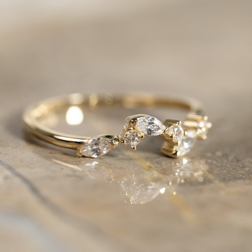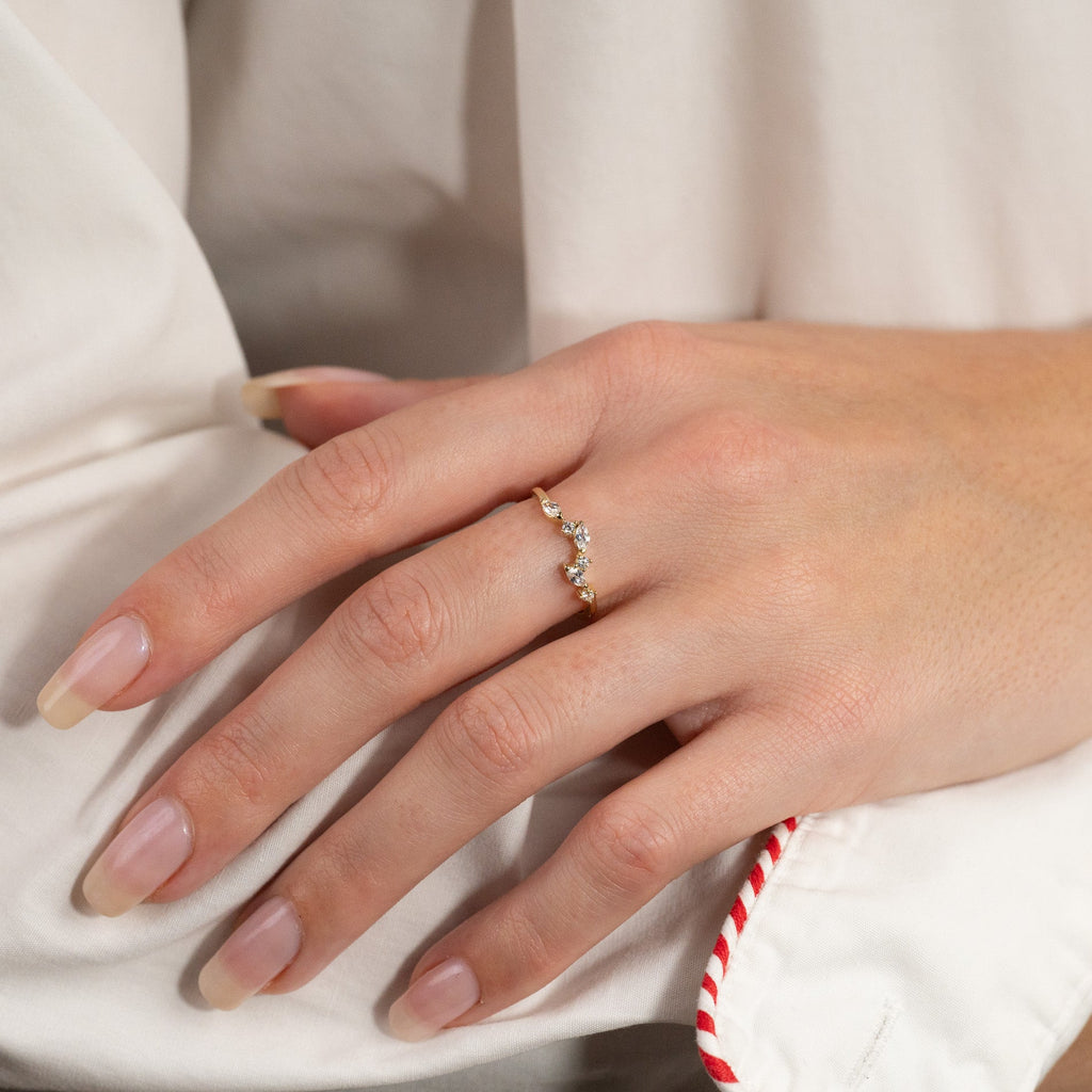 Ring in 100% recycled 9 karat solid gold with clear zirconias in different cuts.
