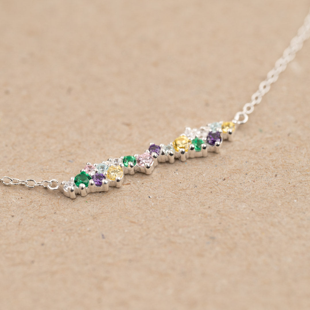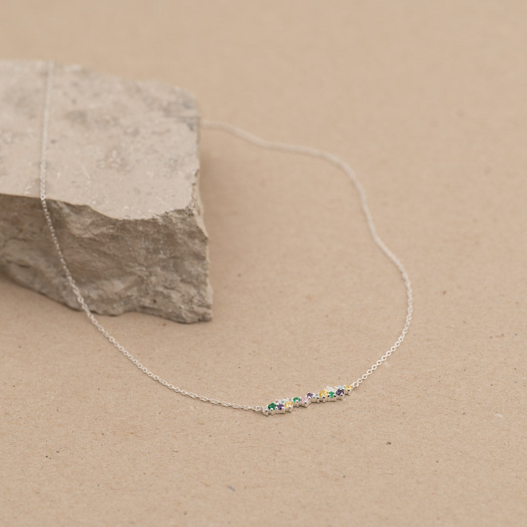 Our Clair necklace is made from 100% recycled 925 sterling silver with colored zirconias.