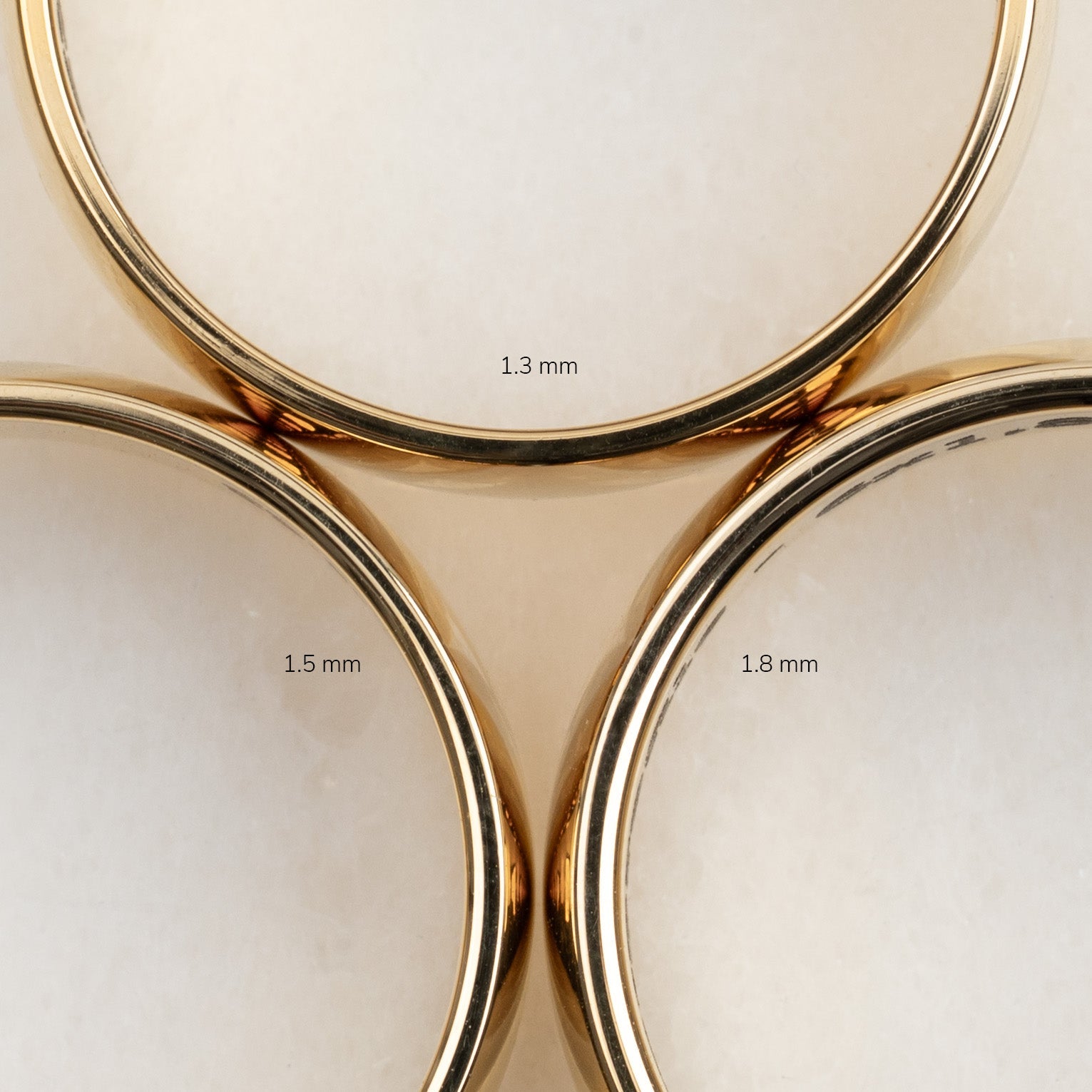 The 2 mm band is our most slender profile. At this width, we recommend a thickness of 1.5 mm to maintain balanced proportions and ensure the ring doesn’t feel too delicate - especially in sizes above 54.
