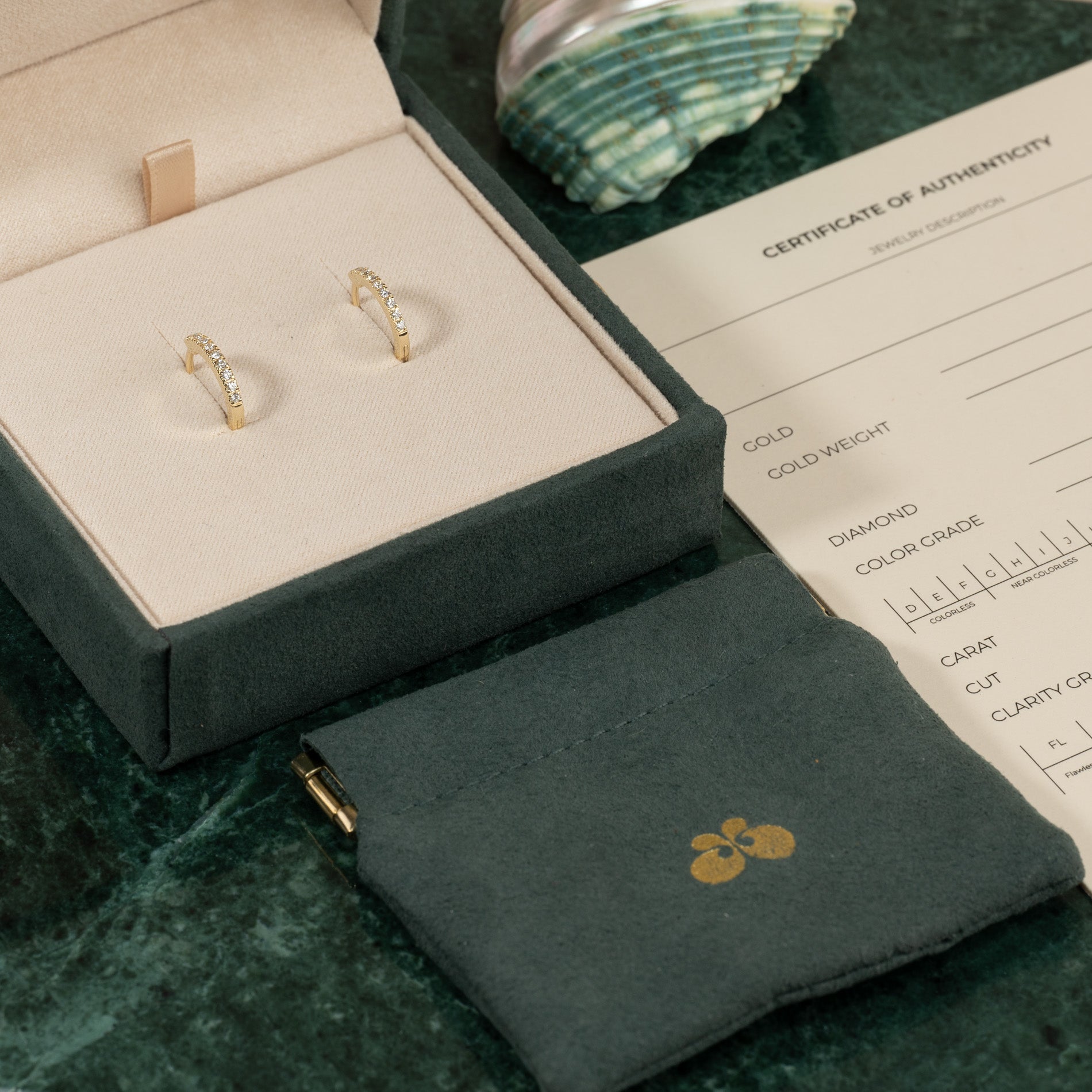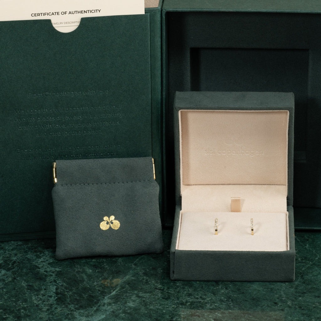 The hoops come in our exclusive Diamond Collection box with a beautiful jewelry box, certificate and pouch. The box is also perfect if you want to give the jewelry as a gift.