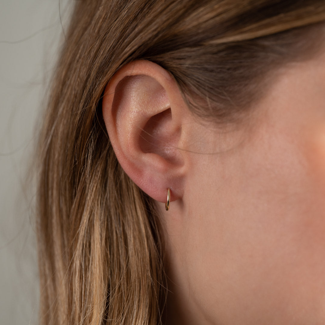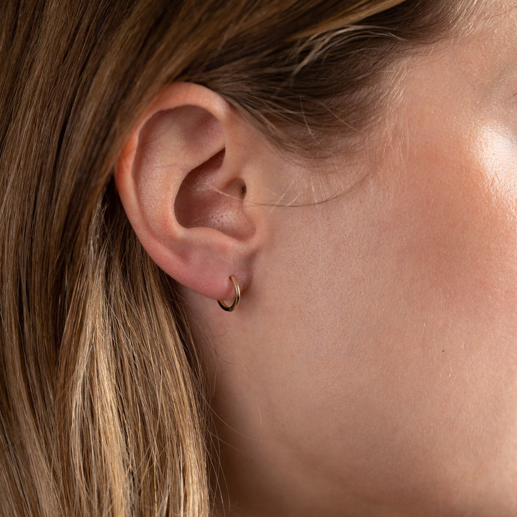 The hoops are a simple and classic earring that you can have in your jewelry collection for many years. They are designed with classic simplicity and elegance, making them easy to style for any occasion - whether you're looking for new everyday earrings or a classic piece for a party. The hoops are also available in 12mm and 14mm.