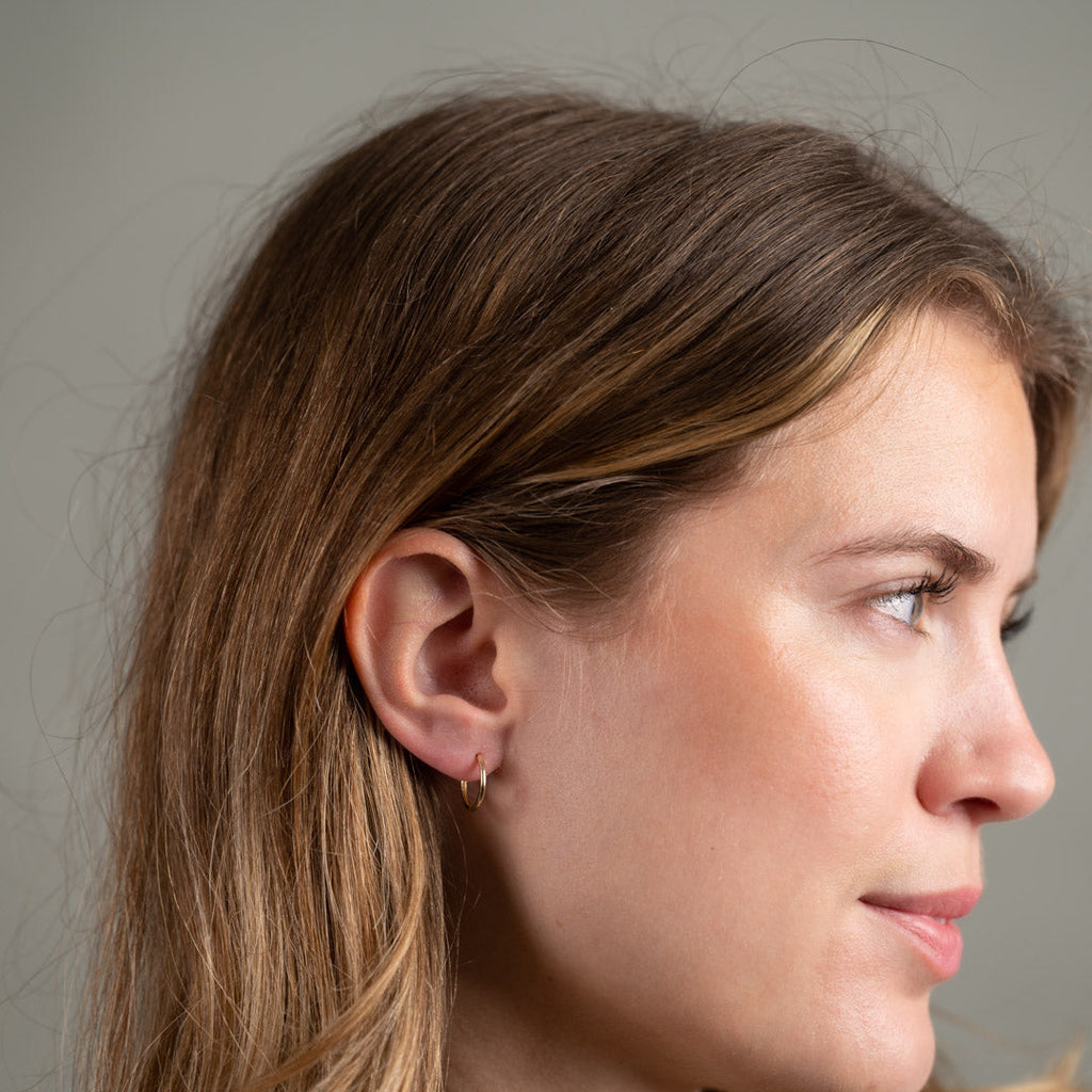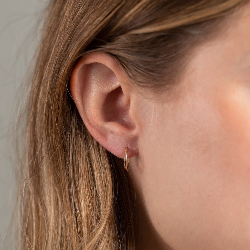 The hoops are a simple and classic earring that you can have in your jewelry collection for many years. They are designed with classic simplicity and elegance, making them easy to style for any occasion - whether you're looking for new everyday earrings or a classic piece for a party. The hoops are also available in 10mm and 12mm.