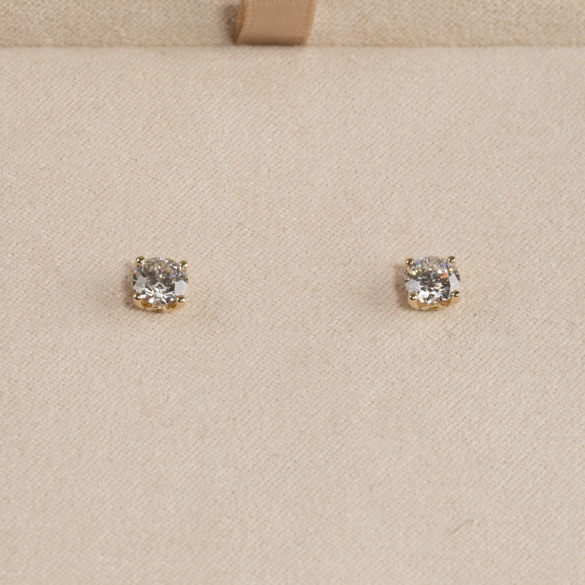 Solitaire stud earrings in 14kt gold with 1.0ct. lab-grown diamonds.