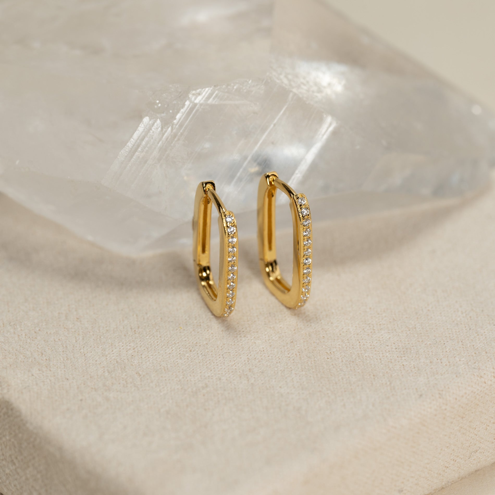 Oval huggies in gold-plated silver with zirconias