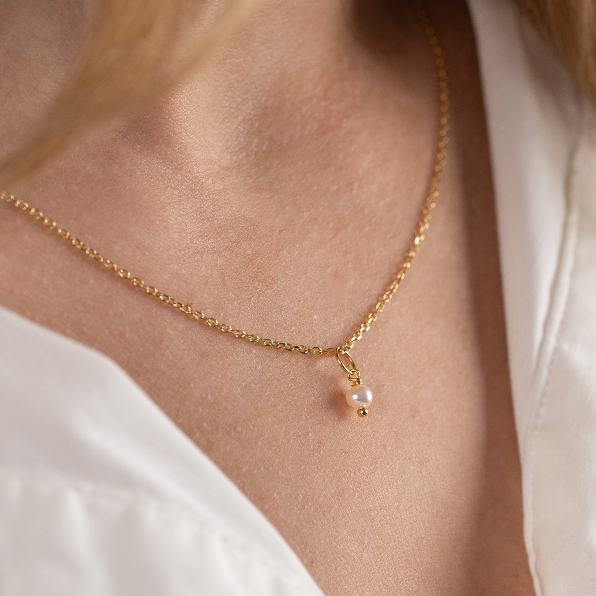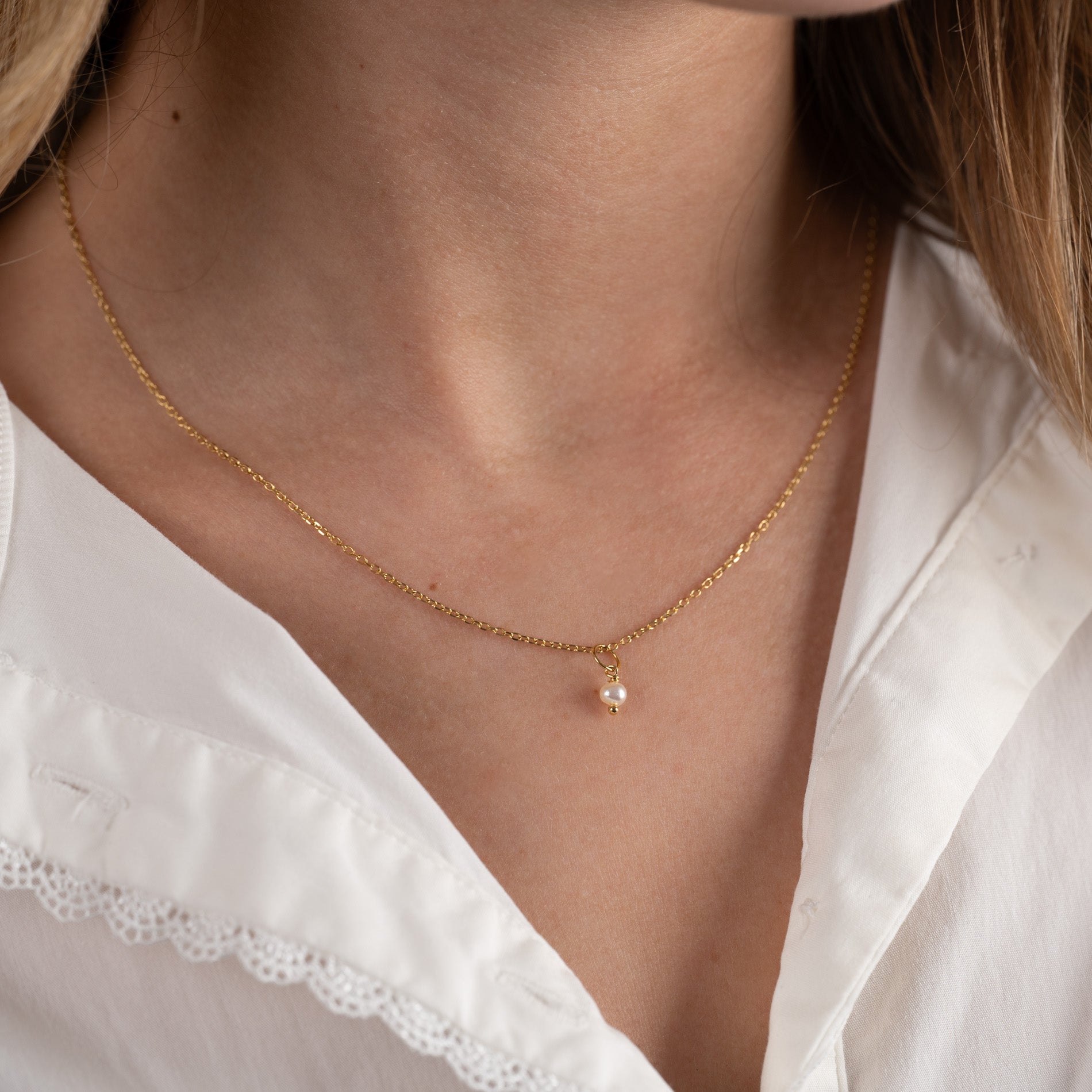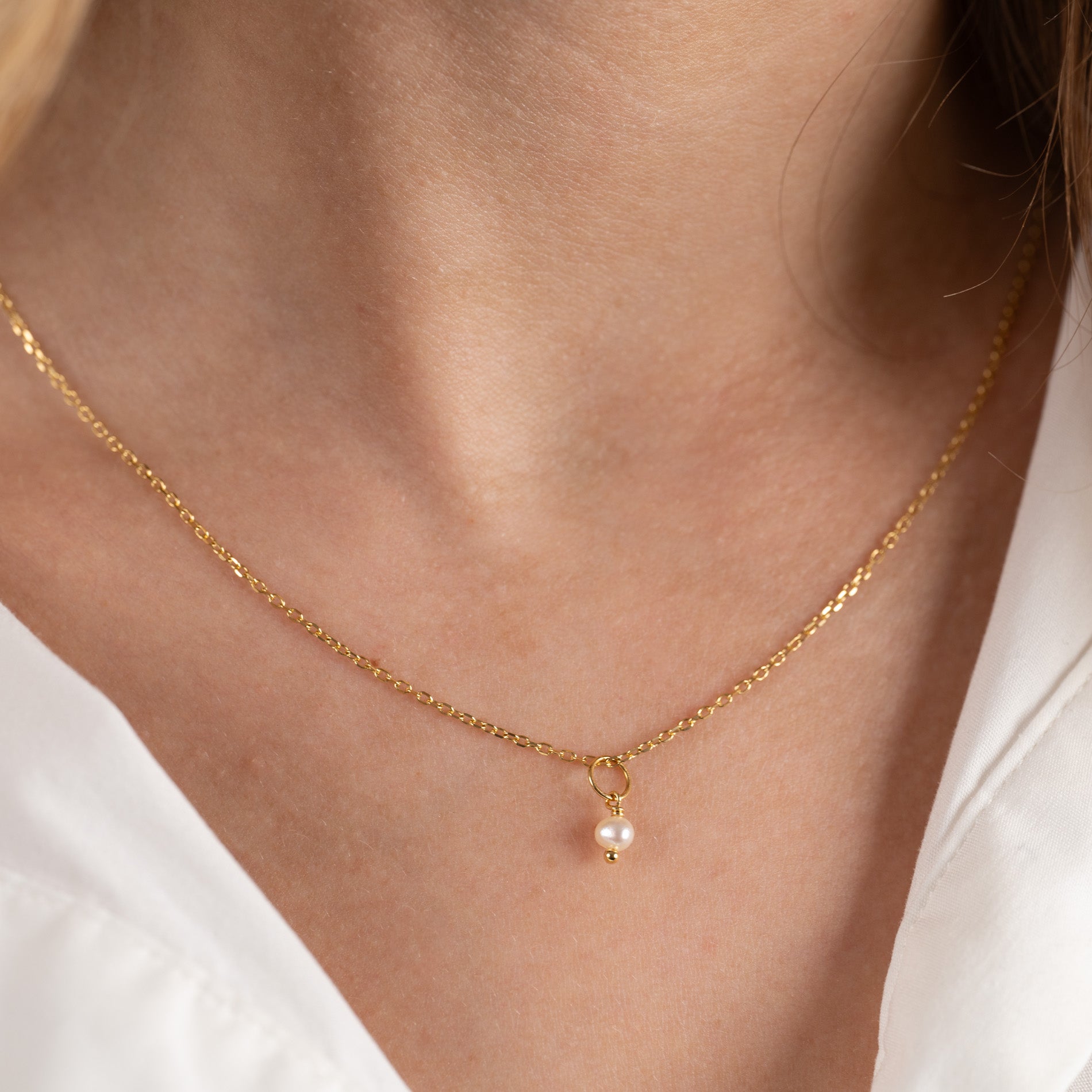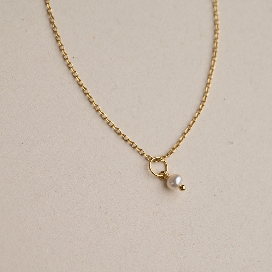 Pendant in recycled 18 karat gold-plated sterling silver with a white freshwater pearl. The pendant is sold here without a chain.