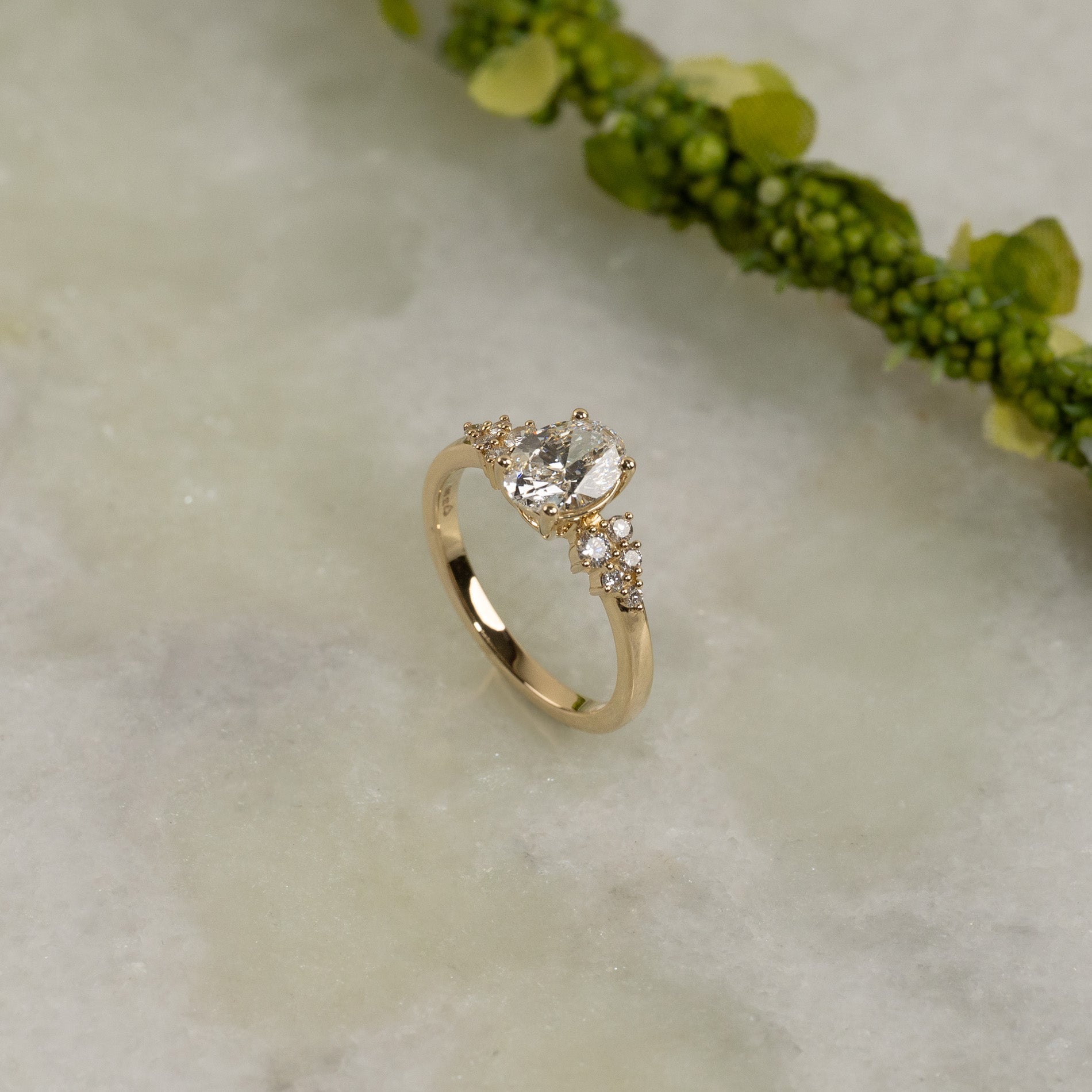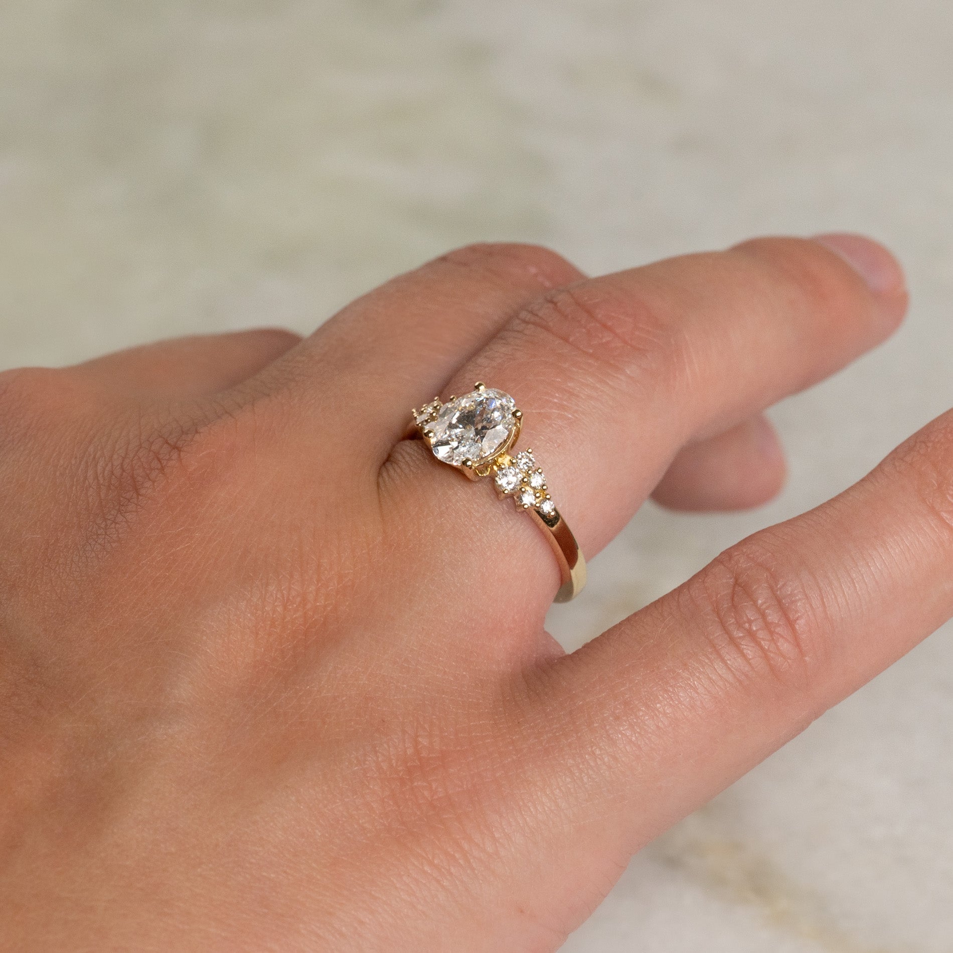 DELICATE CLUSTER OVAL-CUT DIAMOND RING - 1.25ct - YG