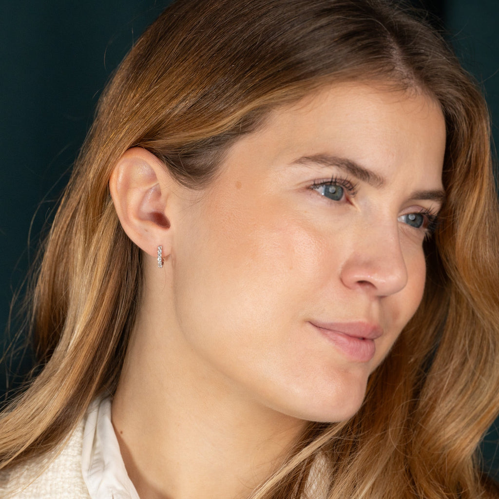 Timeless and elegant, the hoops are beautiful piece of jewelry that can be worn for both everyday and festive occasions. They are designed so that the back part of the earrings mirrors the pattern of the settings of the front – but without set stones. The hoops are sized 12.5 mm in outer diameter and close with hinged click clasp.