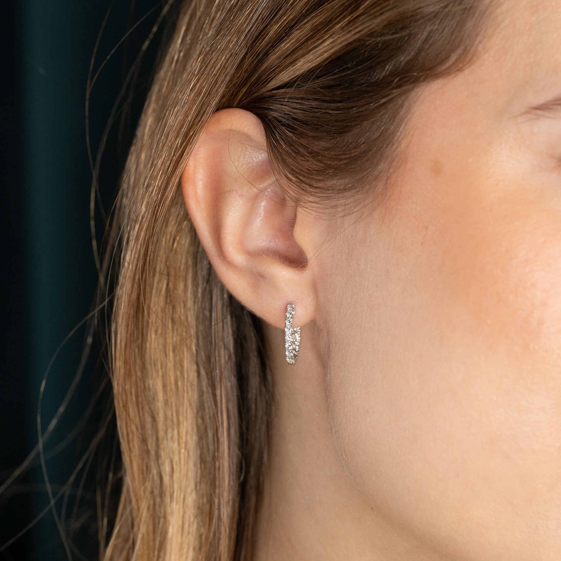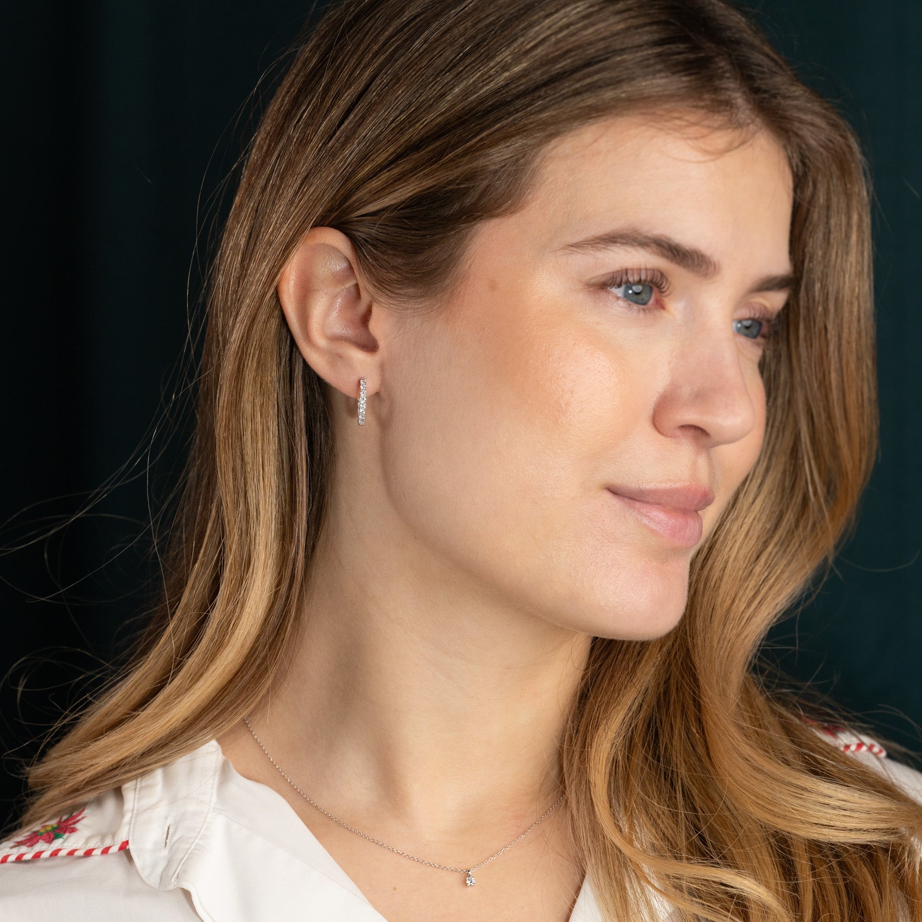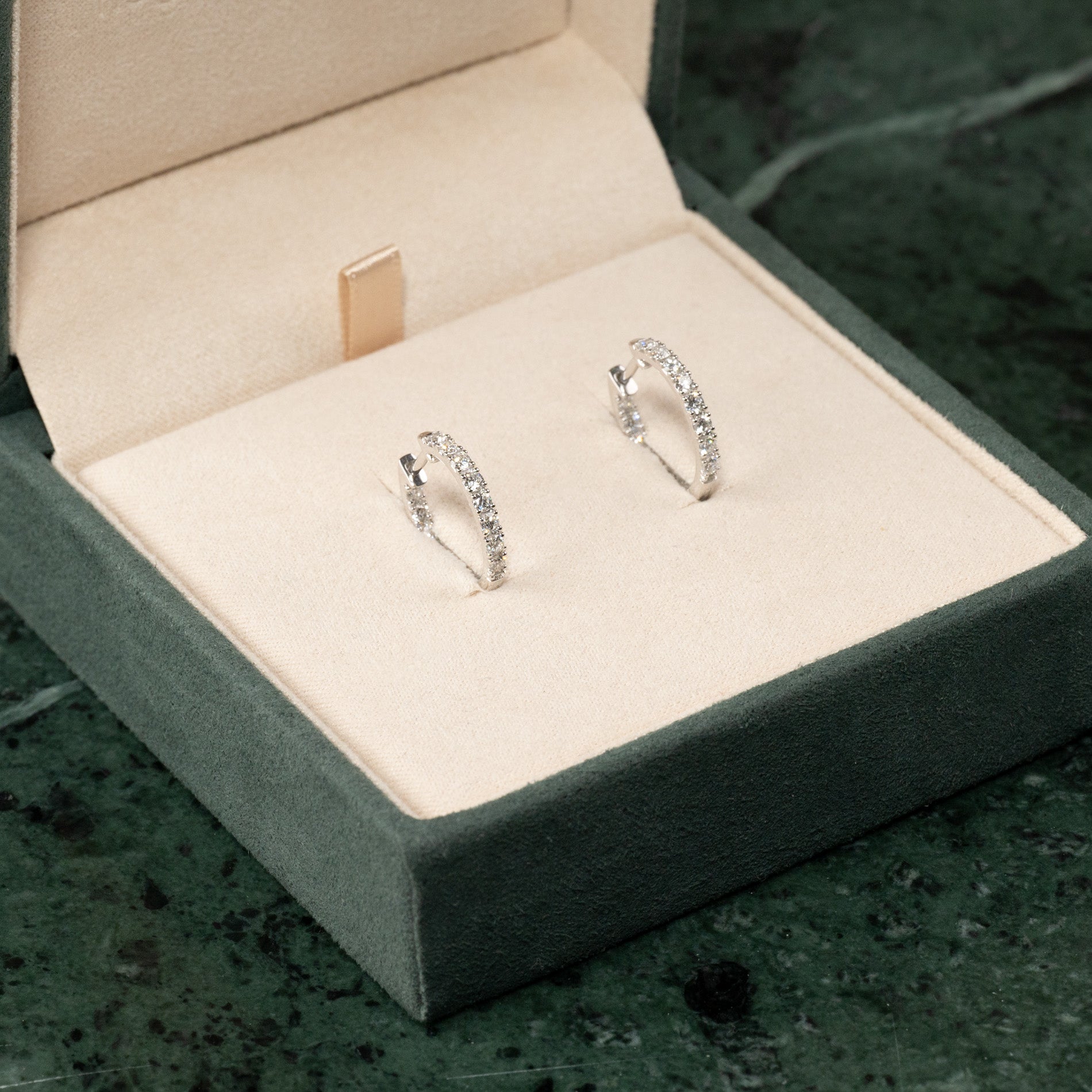 Hoops in 14 karat white gold set with 0.8 ct. lab-grown diamonds inside and out.