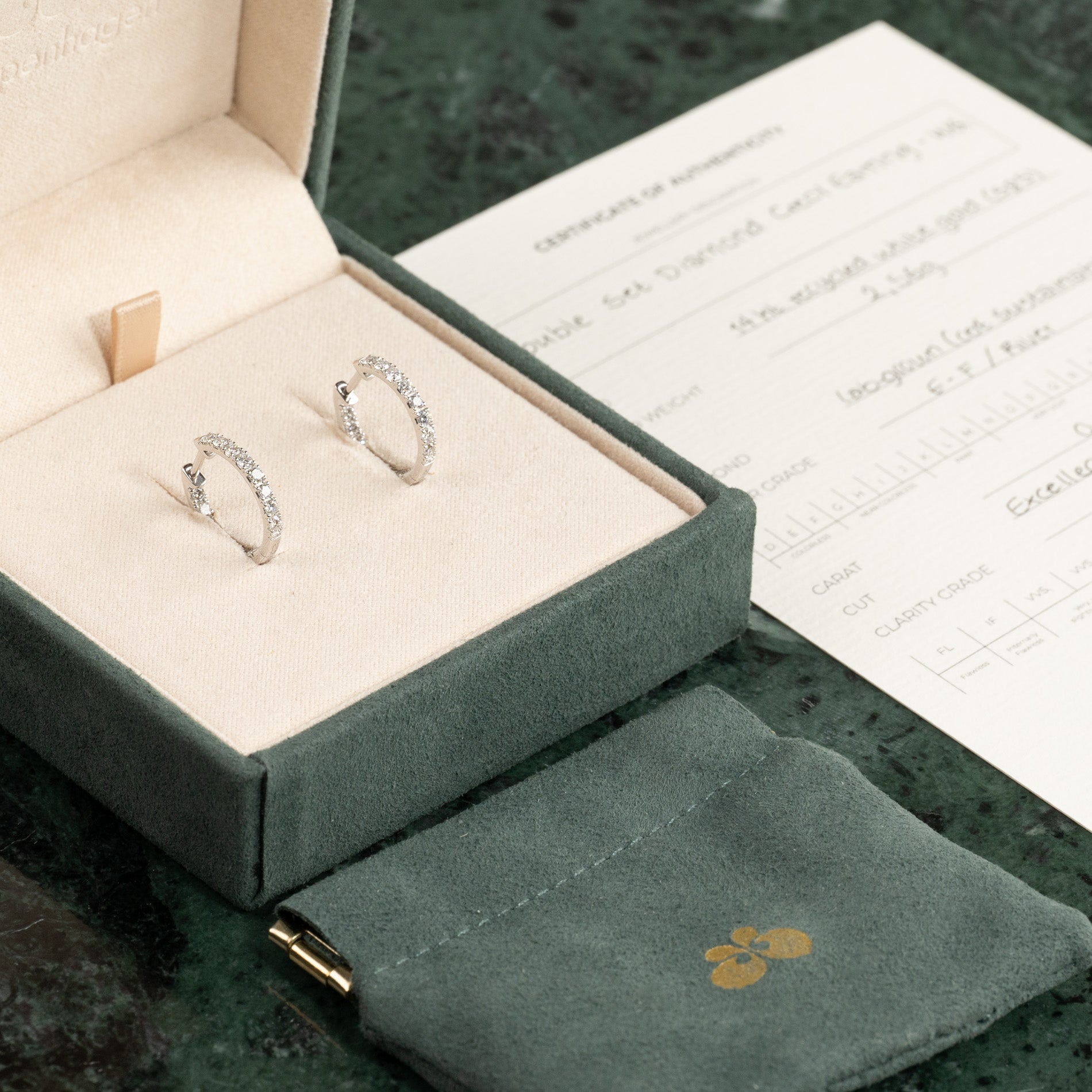 Our Diamond Collection jewelry comes in our exclusive Diamond Collection box, which includes a beautiful jewelry case, certificate, and pouch. The box is also perfect if the jewelry is intended as a gift.