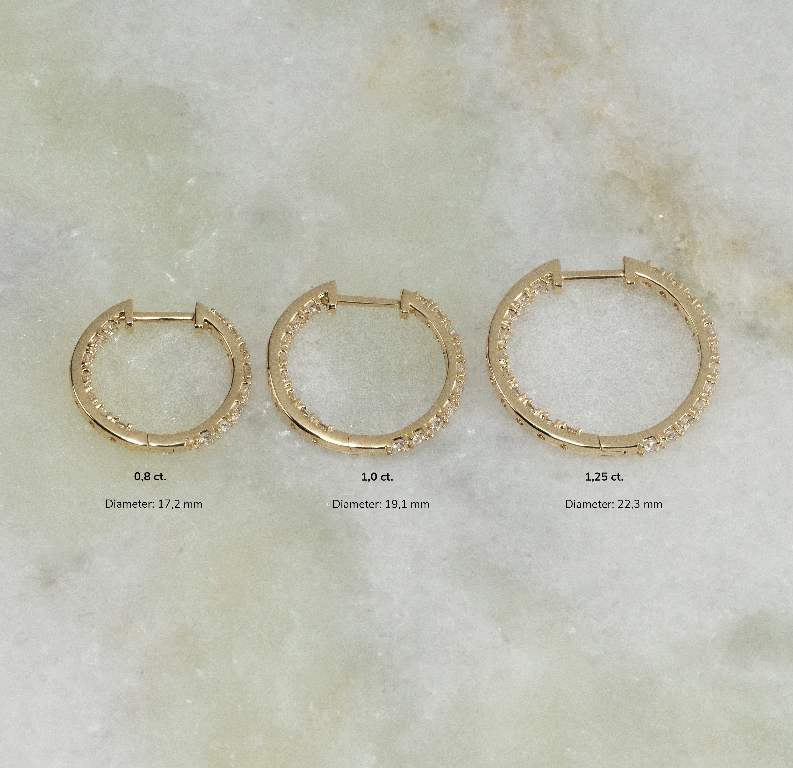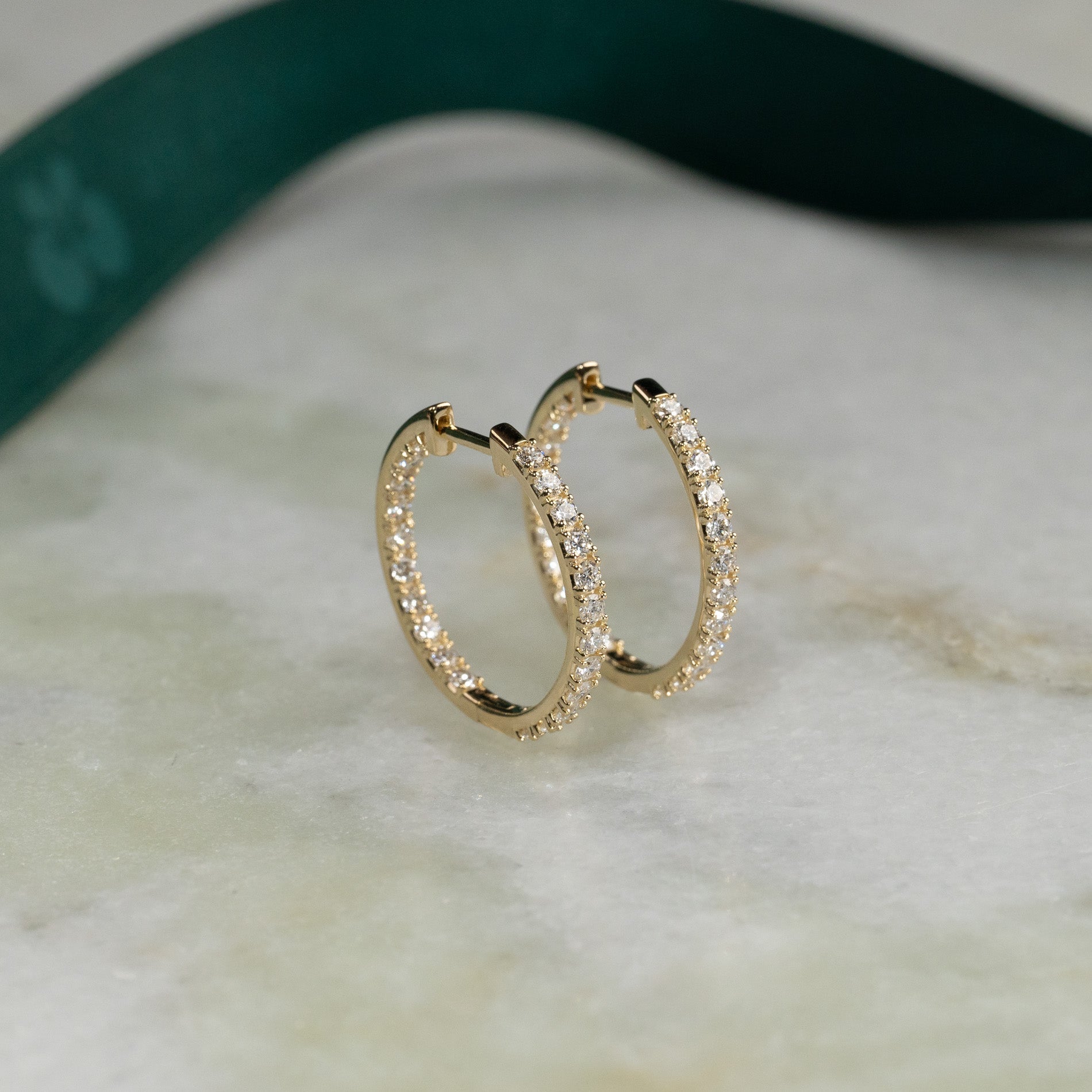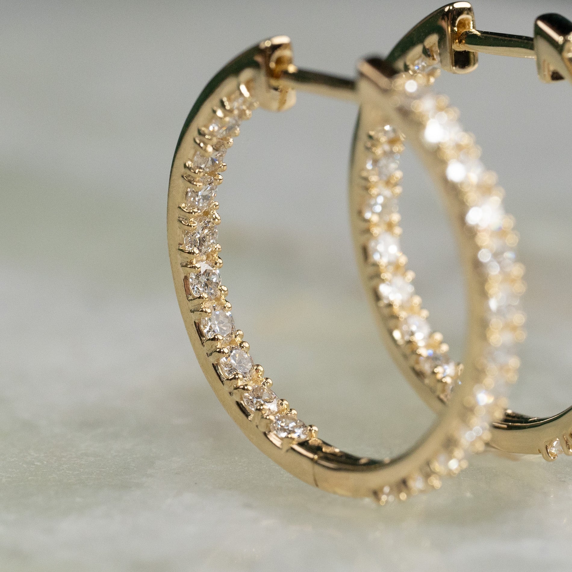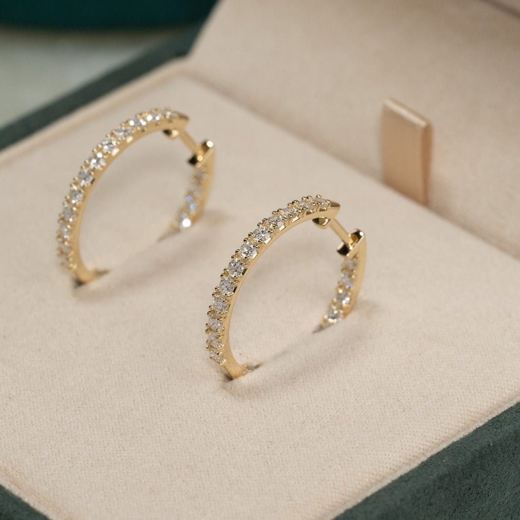 17mm diamond hoops in 14 kt. gold with 1.25 ct. double-set lab-grown diamonds