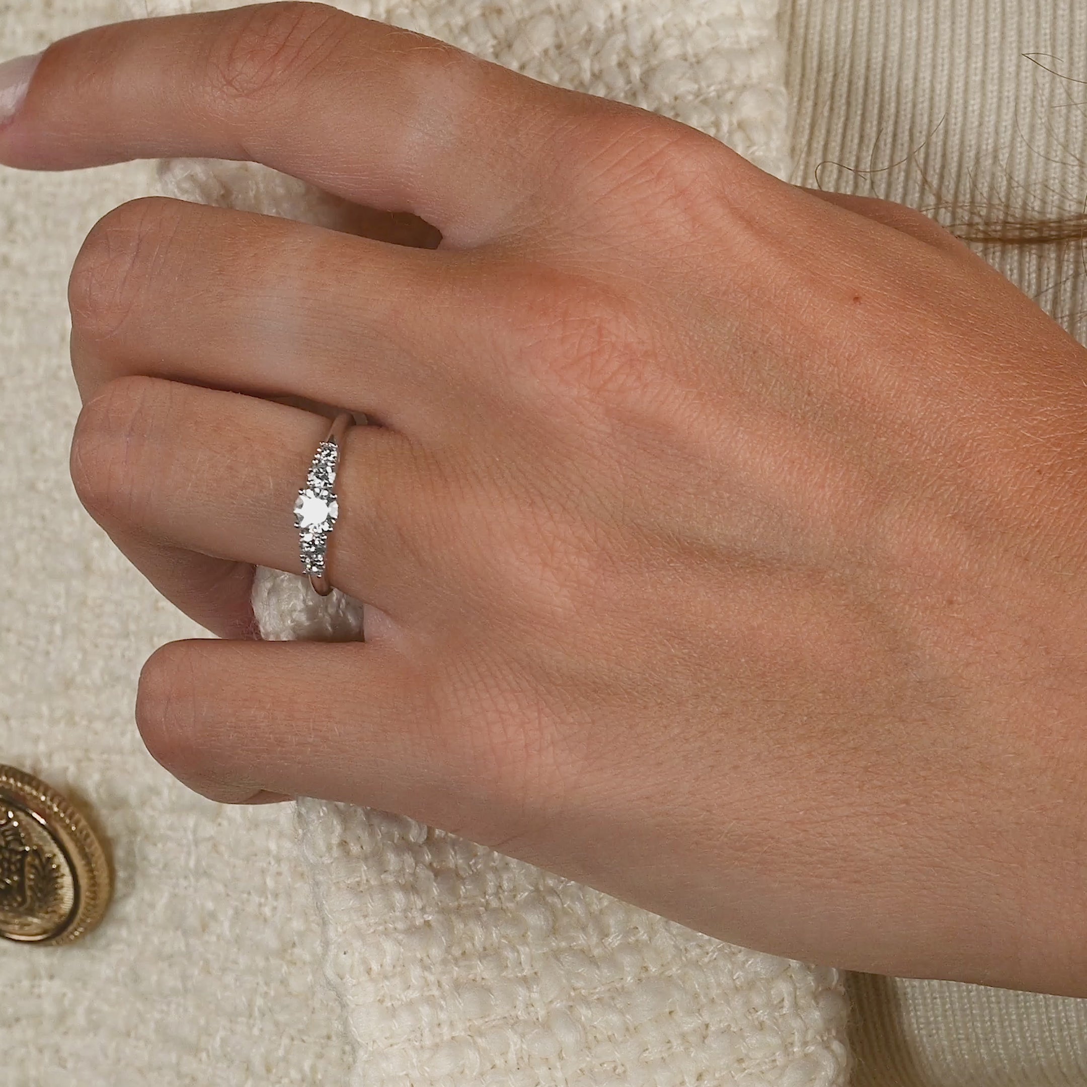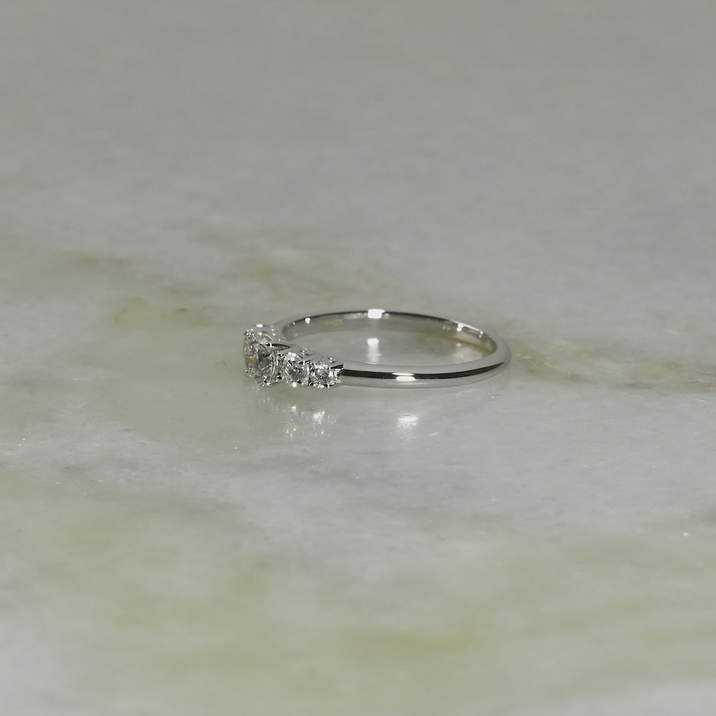 Ring in 14 karat white gold with five lab-grown diamonds totaling 0.5 ct., including a center stone of 0.3 ct.