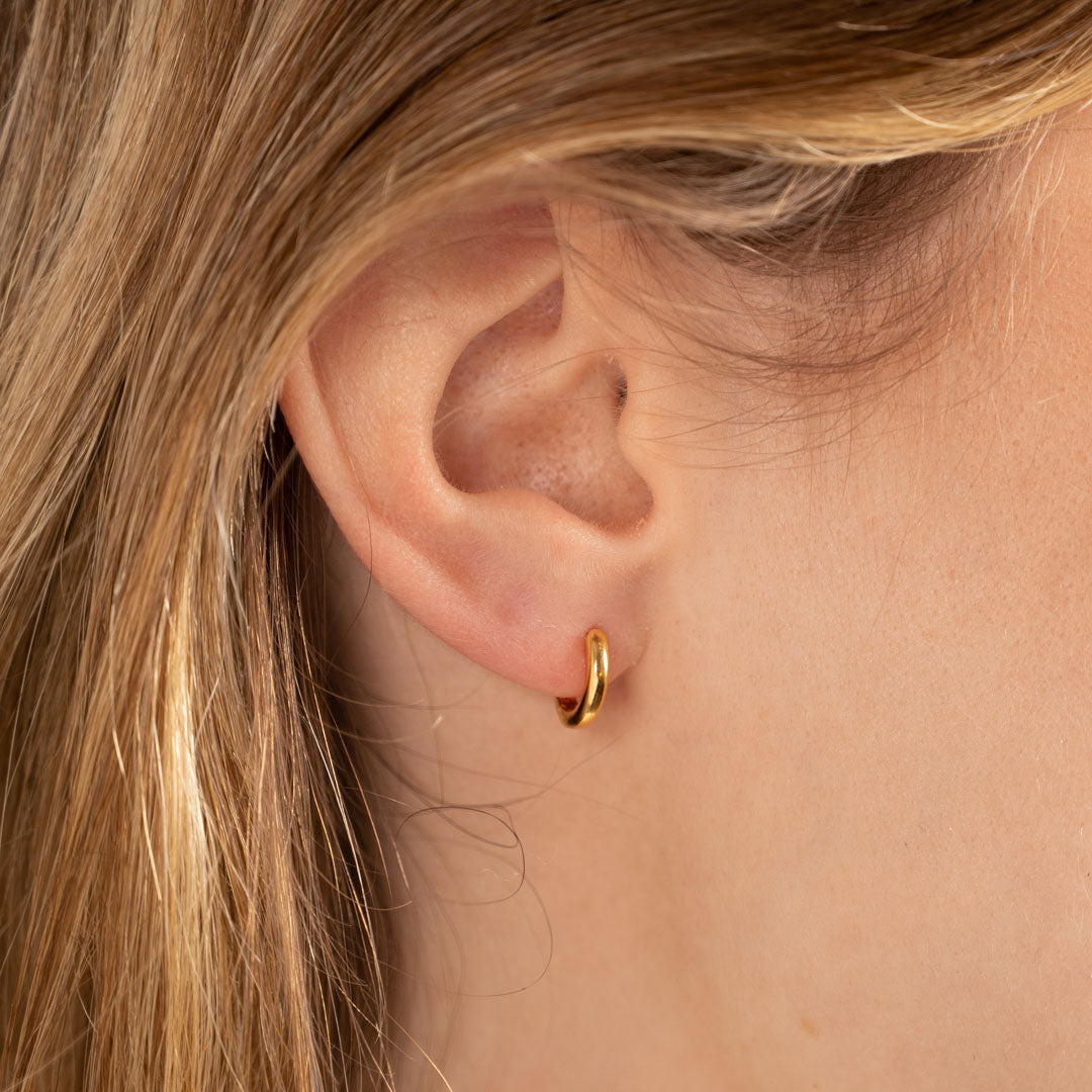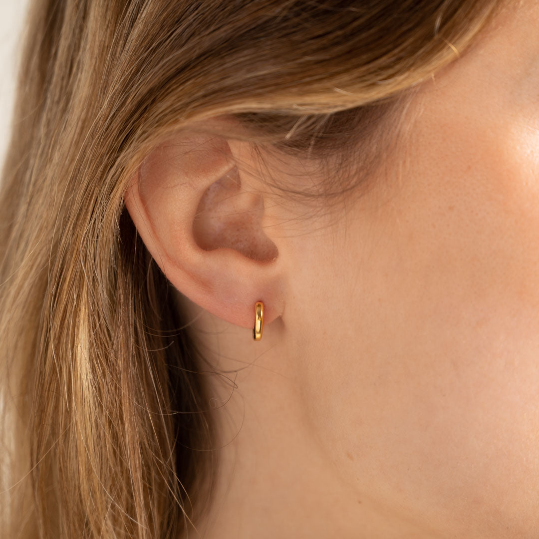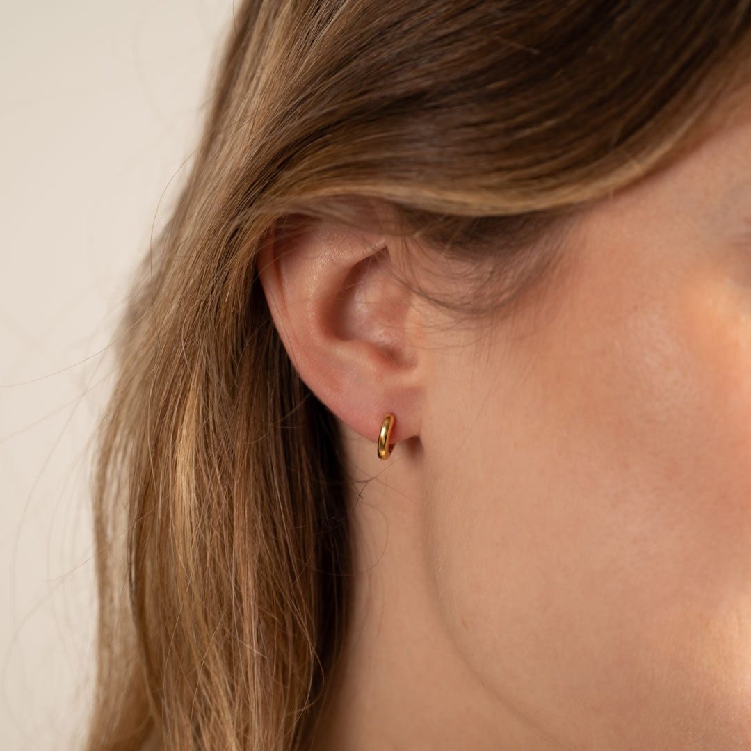 Small hoops in 18-carat gold-plated 925 sterling silver. Our Elina earrings are timeless classics that never go out of style. They are the perfect basics and can easily be combined with other jewelry.