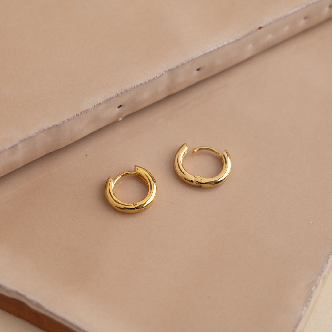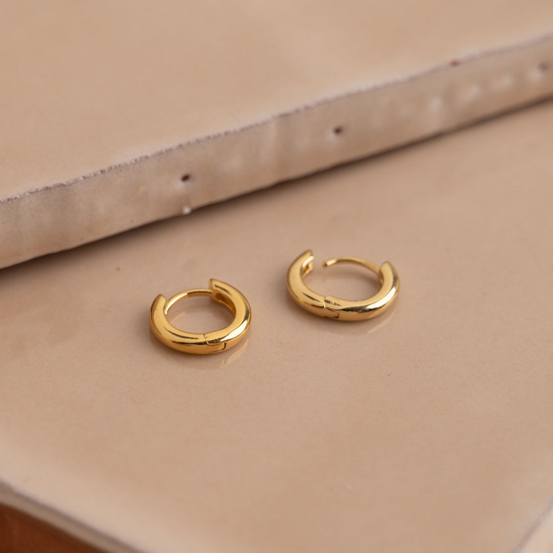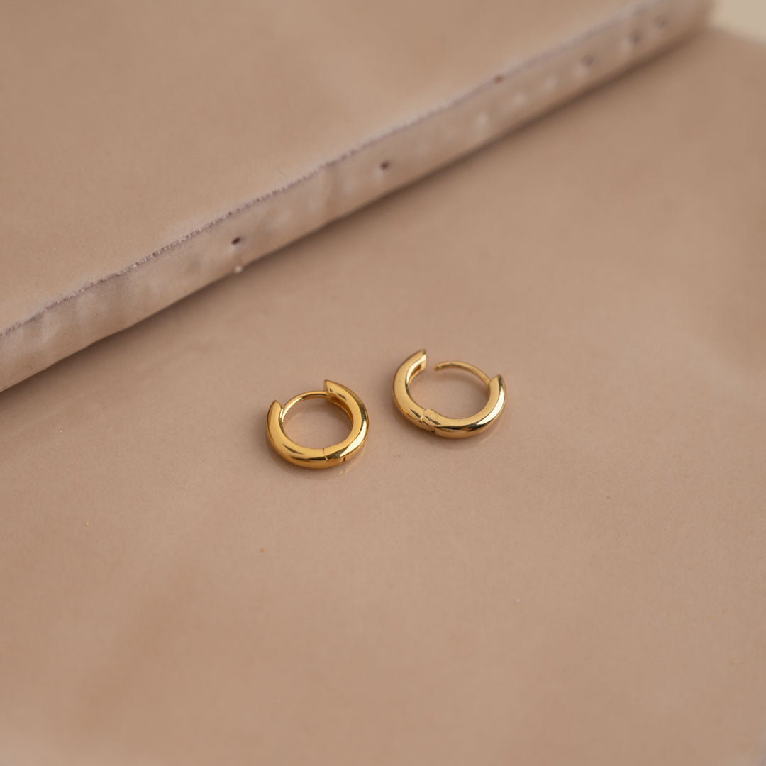 Small hoops in 18-carat gold-plated 925 sterling silver. Our Elina earrings are timeless classics that never go out of style. They are the perfect basics and can easily be combined with other jewelry.
