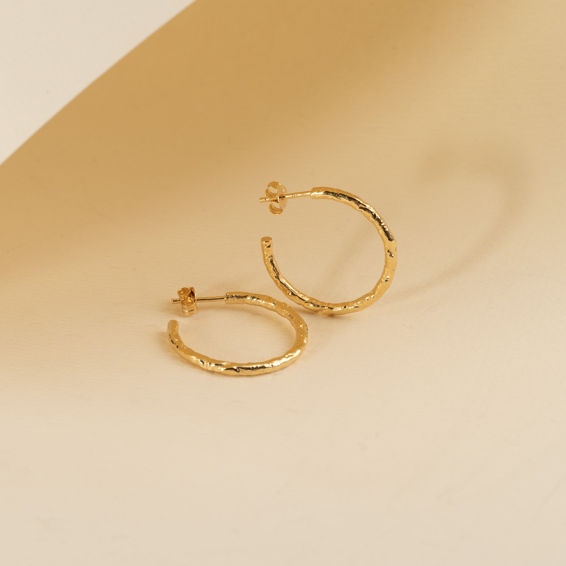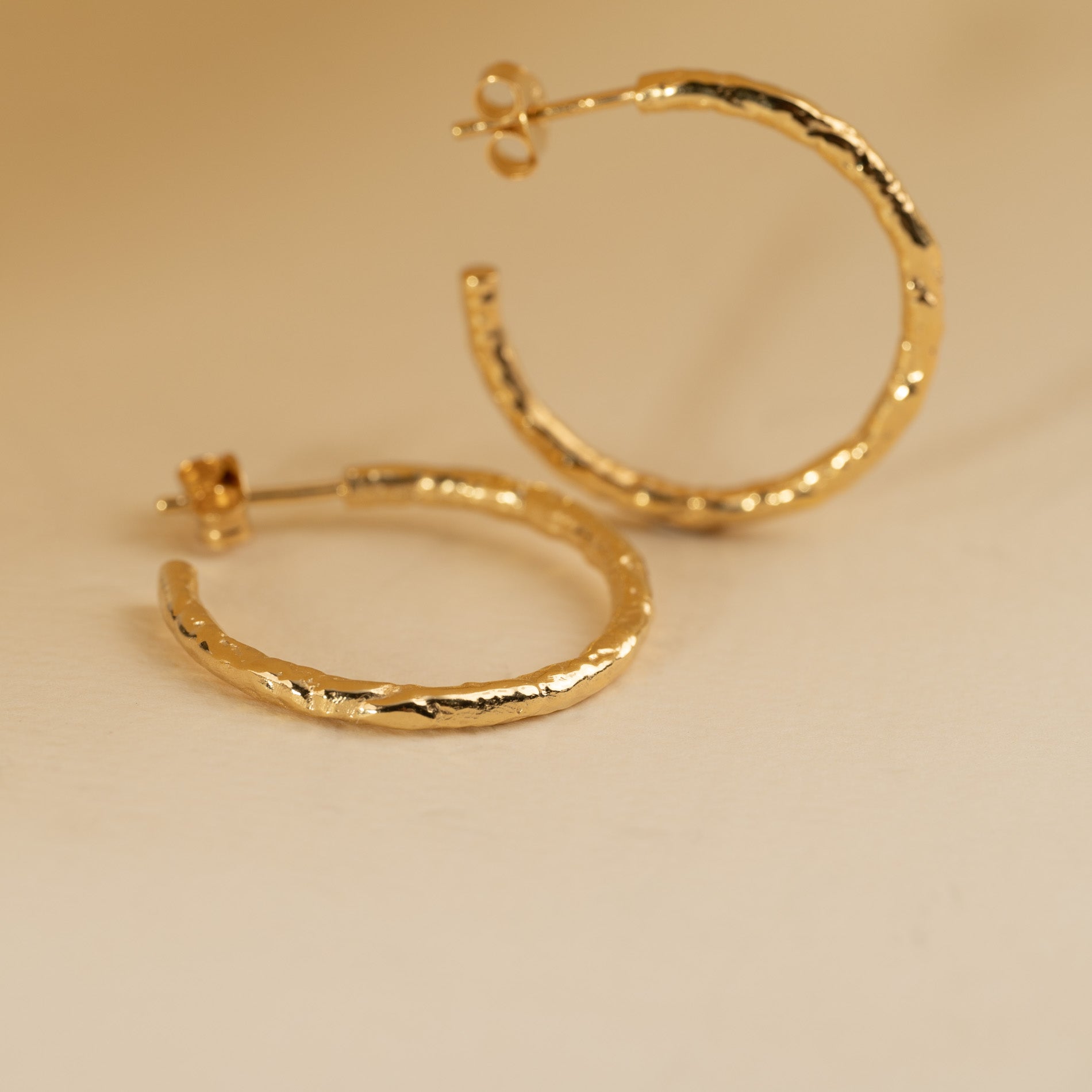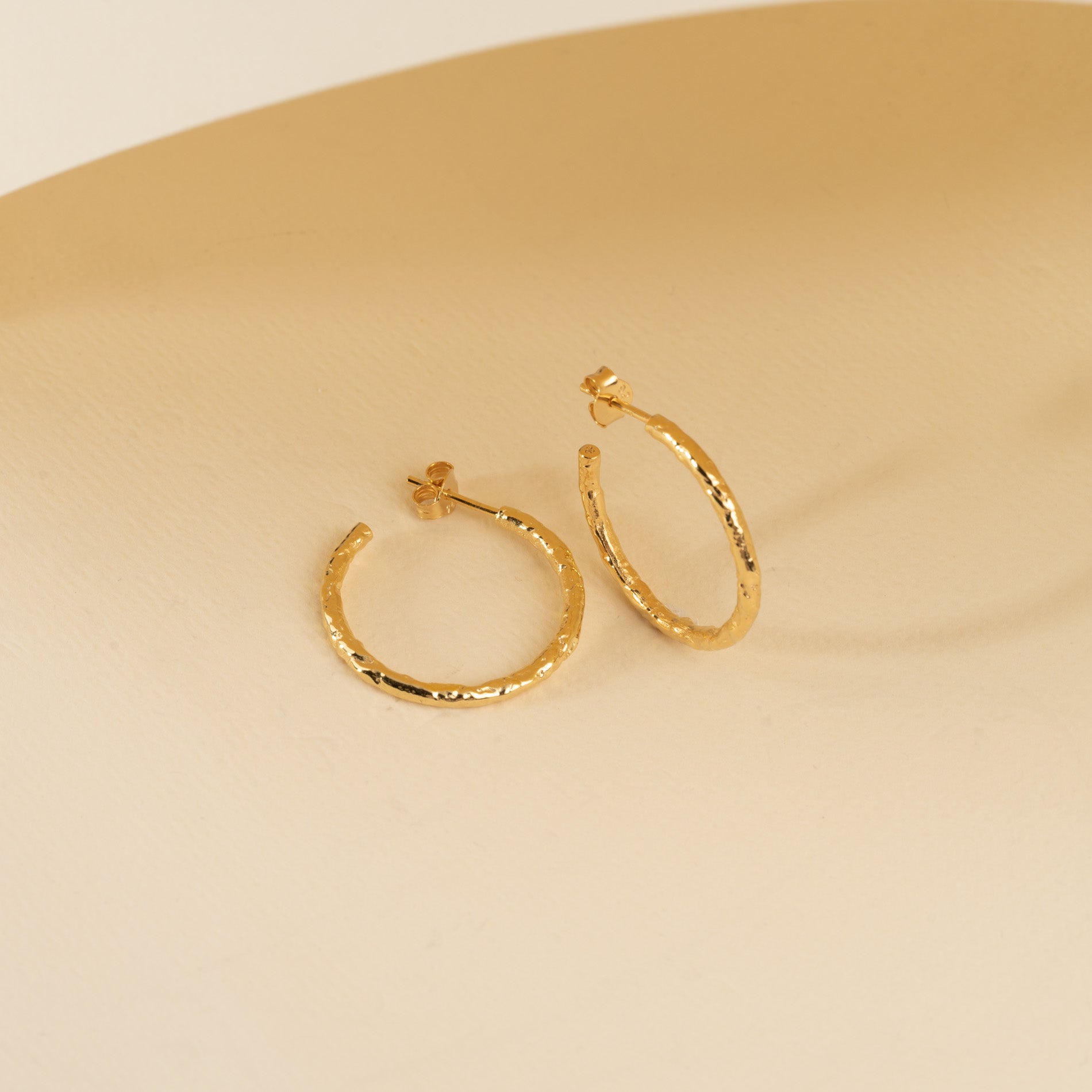 25mm hoops in gold-plated silver with a molten surface