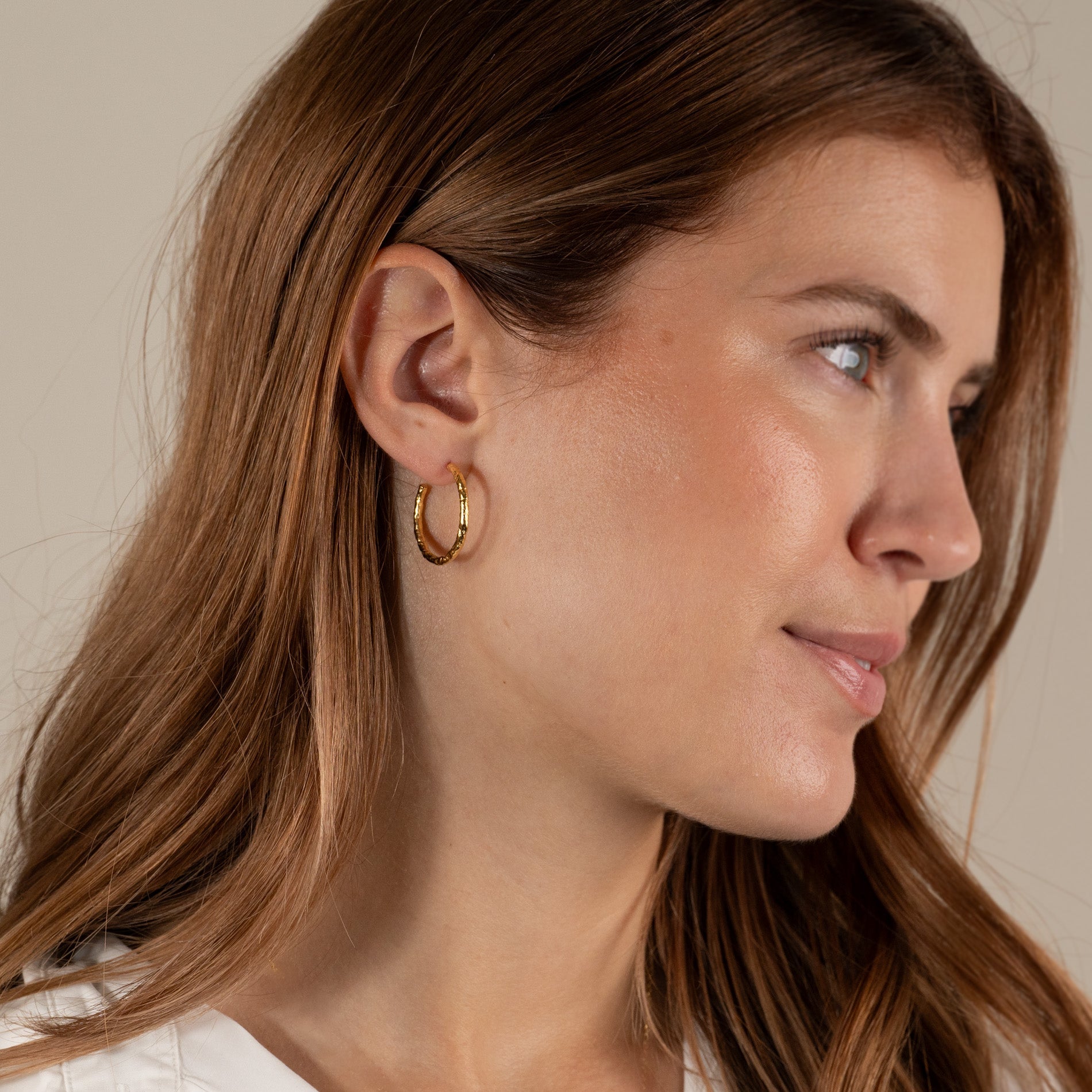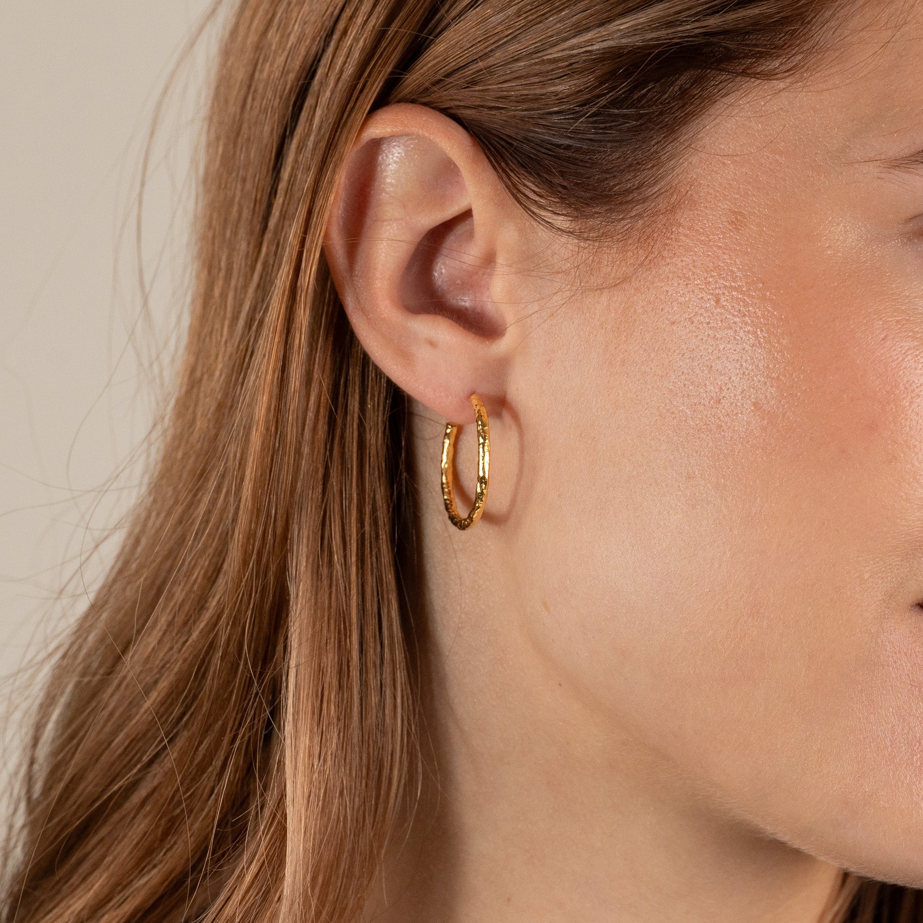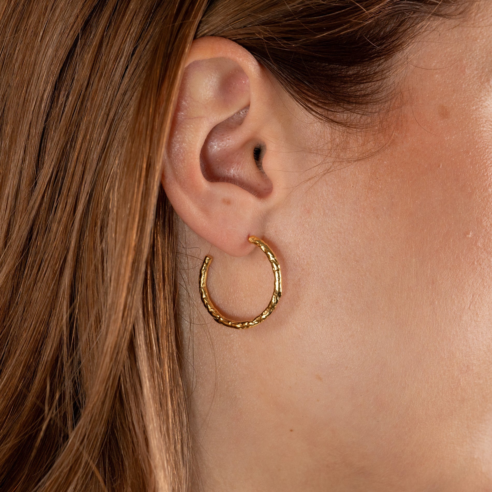 25mm hoops in gold-plated silver with a molten surface