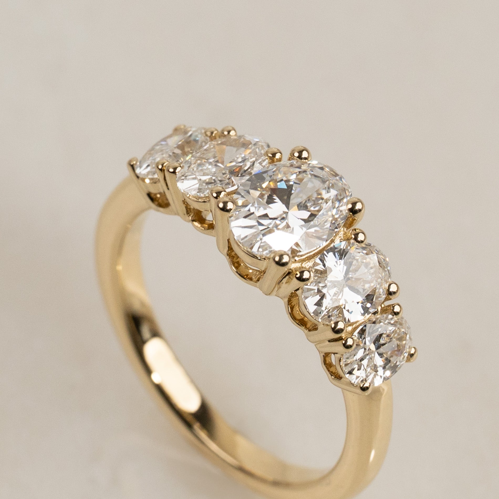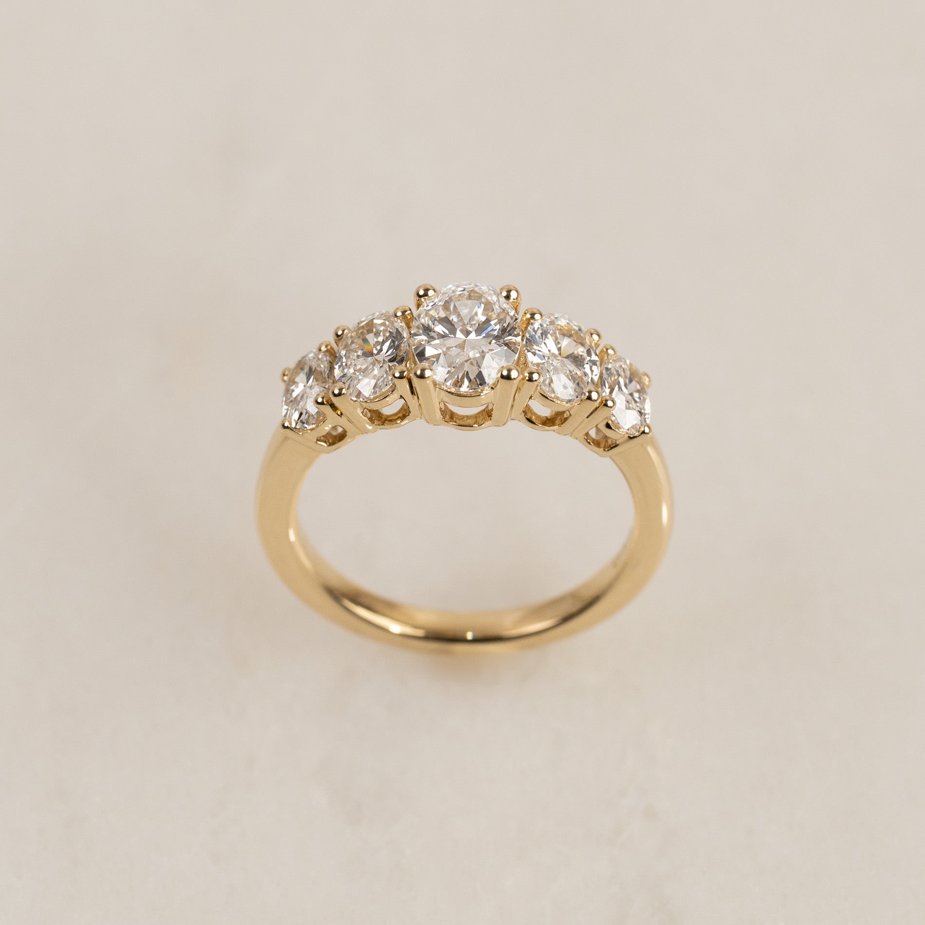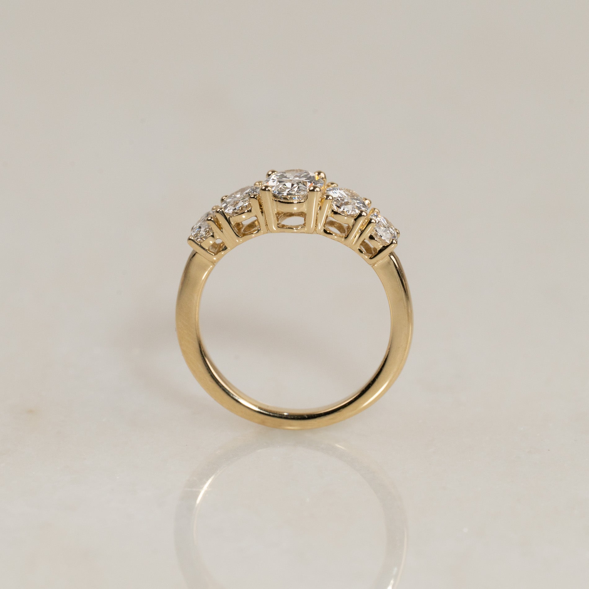 Bespoke design - Five-stone ring in 14 karat gold with oval-cut lab-grown diamonds (1.7 ct.)