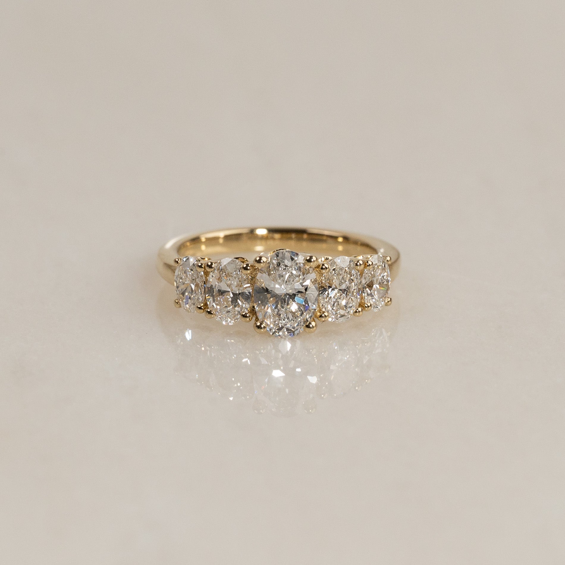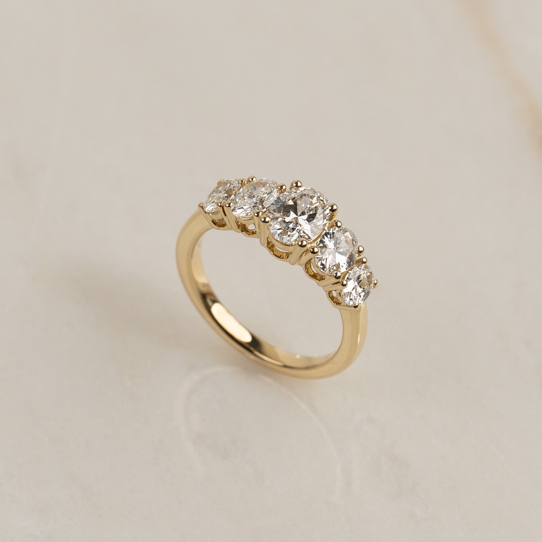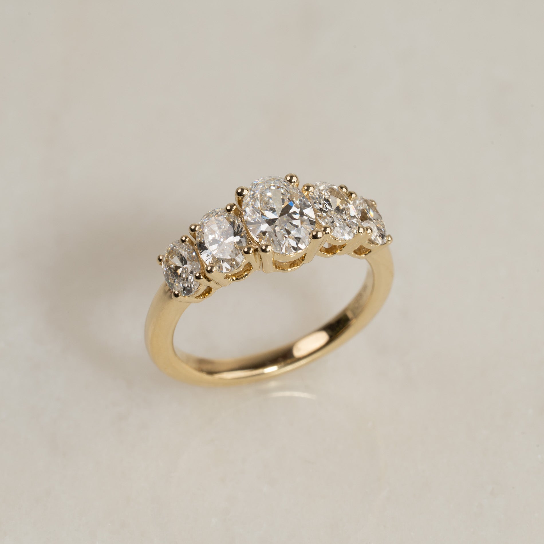 Bespoke design - Five-stone ring in 14 karat gold with oval-cut lab-grown diamonds (1.7 ct.)