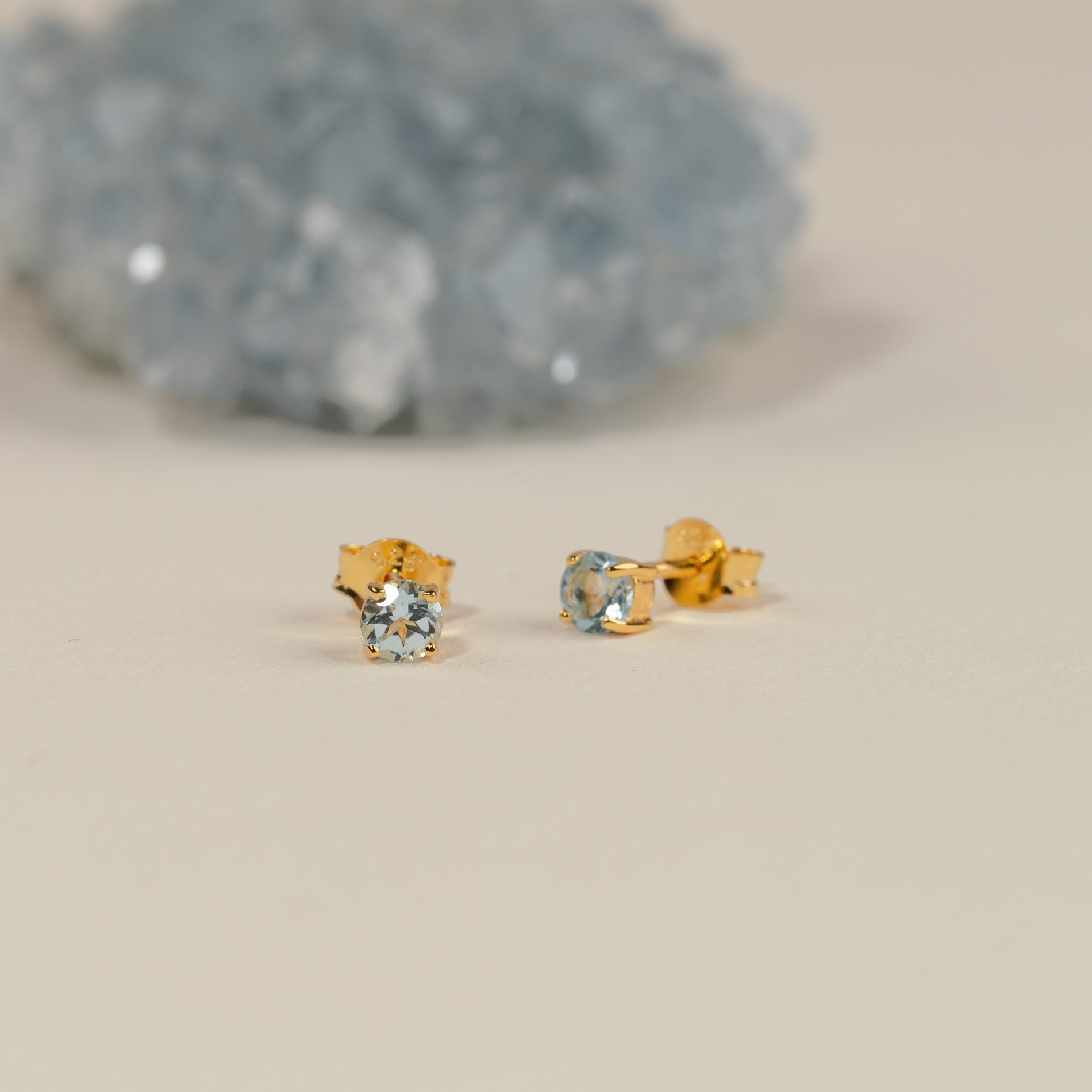 Our Gemma earrings are fine classic earpieces with an Ø 4mm facet -cut Blue Topas that is made with classic grab. The earrings are made of 100% recycled sterling silver with 18 carat gold coating.