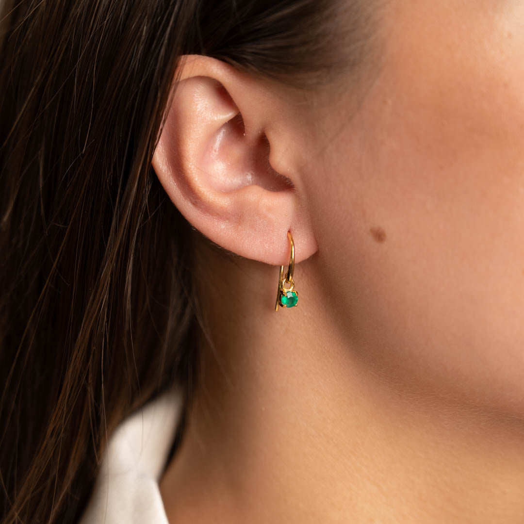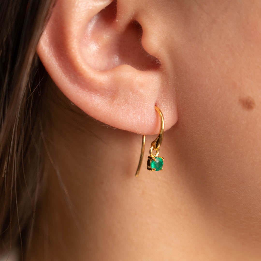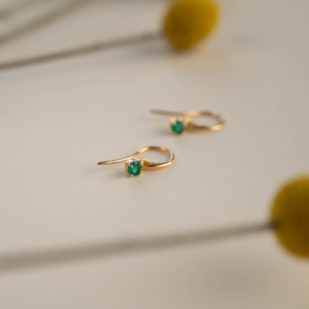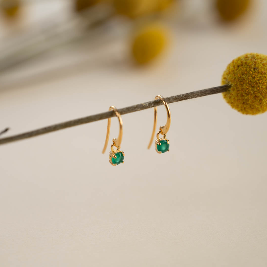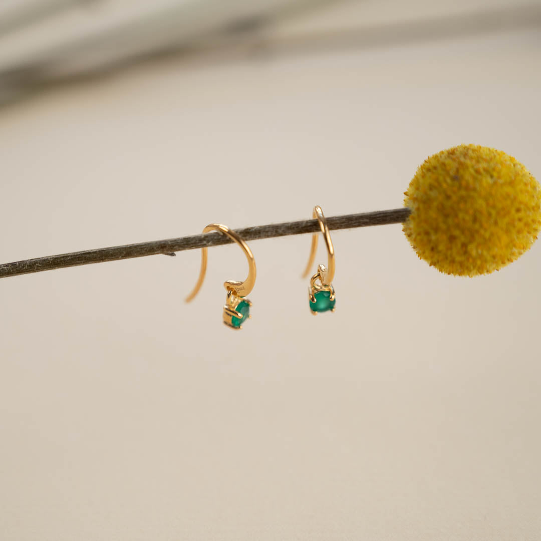 GEMMA GREEN AGATE GOLDEN HOOK EARRING