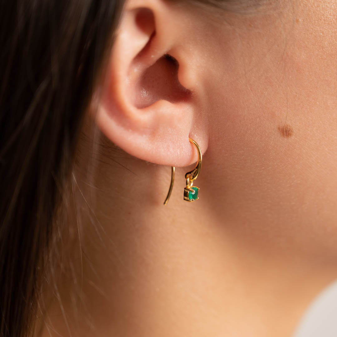Earrings in 18-carat gold-plated 925 sterling silver with a pendant, studded with green agate. The stone measures Ø 4mm and is set in a classical socket. The beautiful earrings are timeless classics that suit both everyday and special occasions perfectly. They can be worn alone or with other earrings.