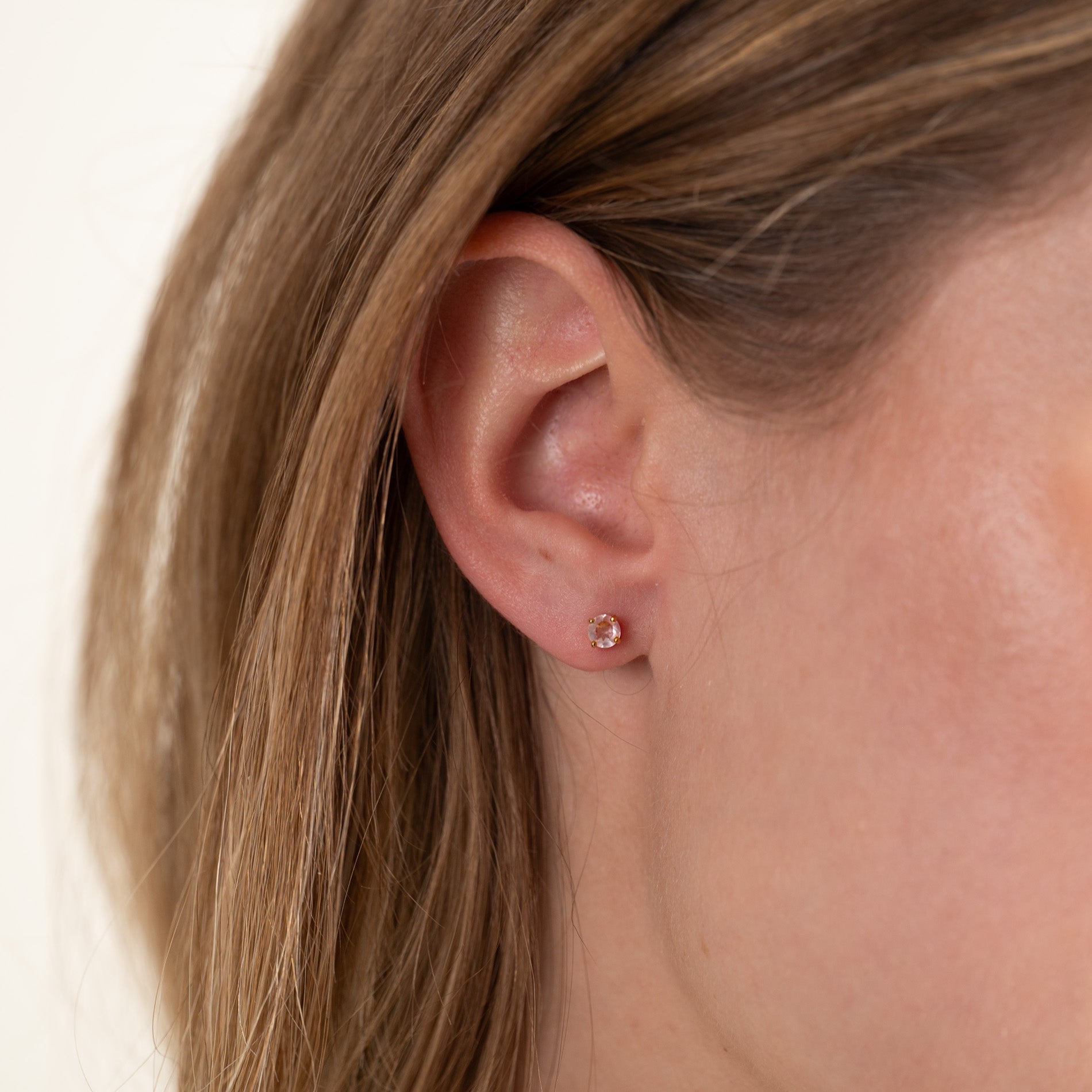 Our Gemma earrings are fine classic earrings with an Ø 4mm facet -cut Rosakvarts that is made with classic grab. The earrings are made of 100% recycled 18 karat gold-plated sterling silver.