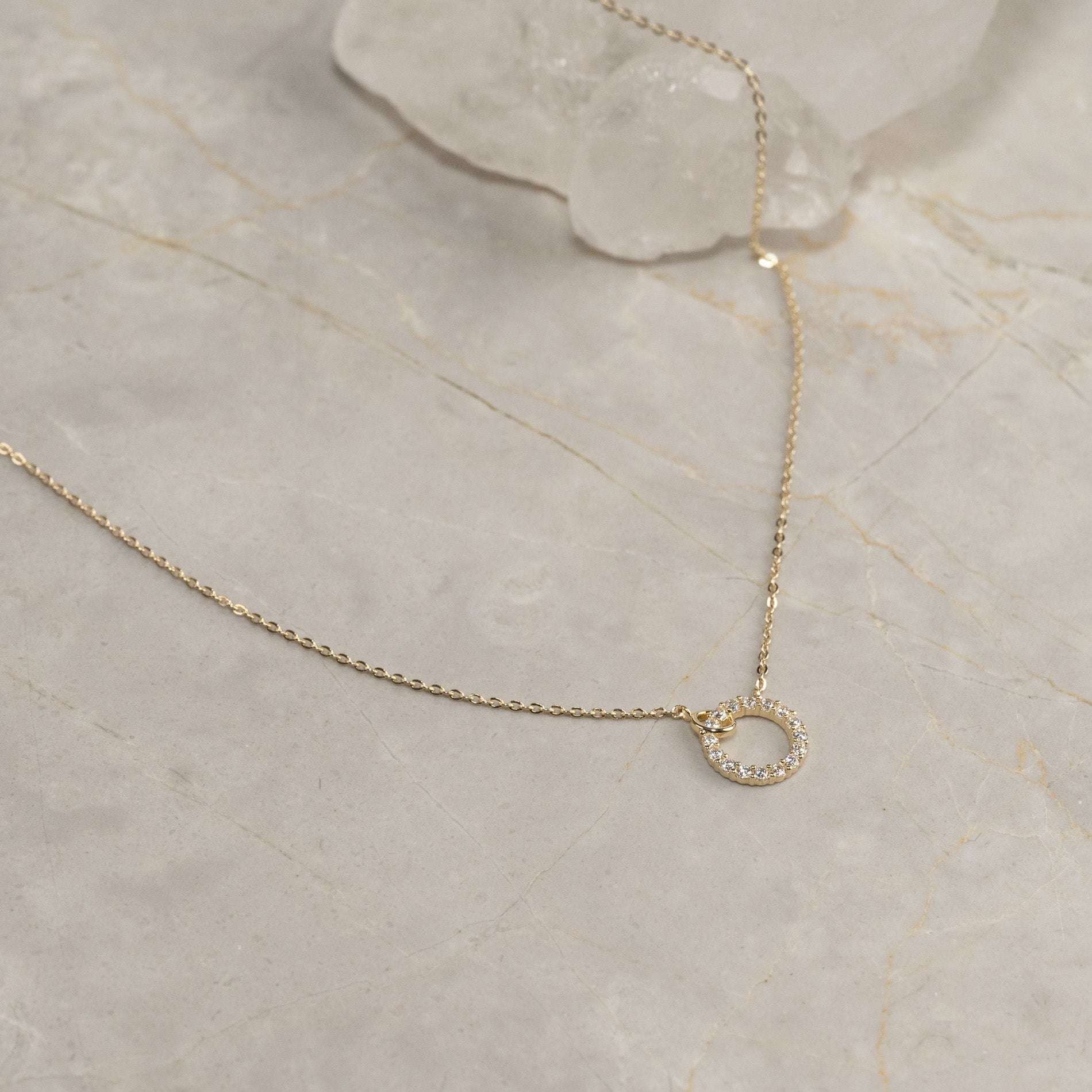 GLORIA CRYSTAL SOLID GOLD NECKLACE
