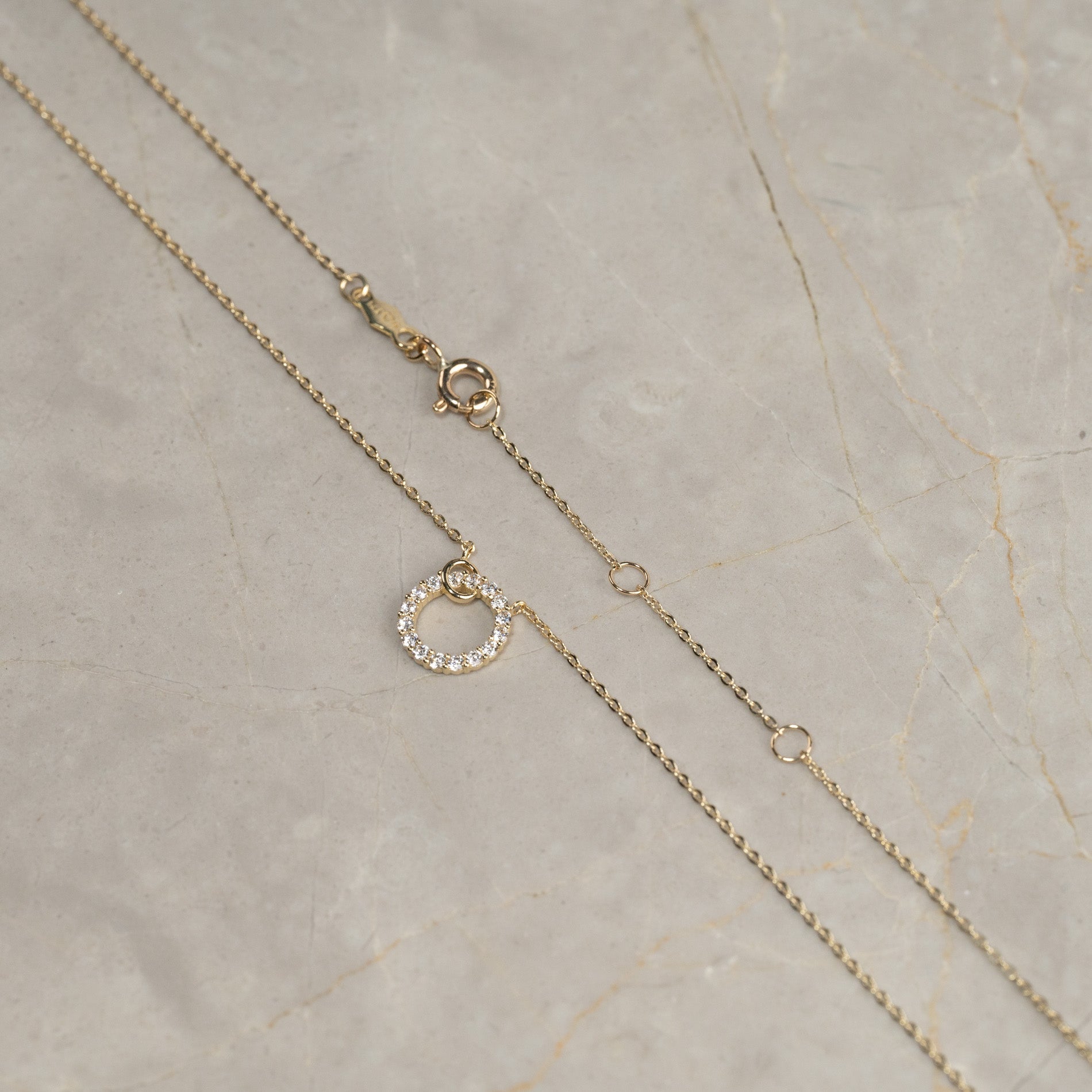 Round necklace design with zirconias in solid 9 kt. gold