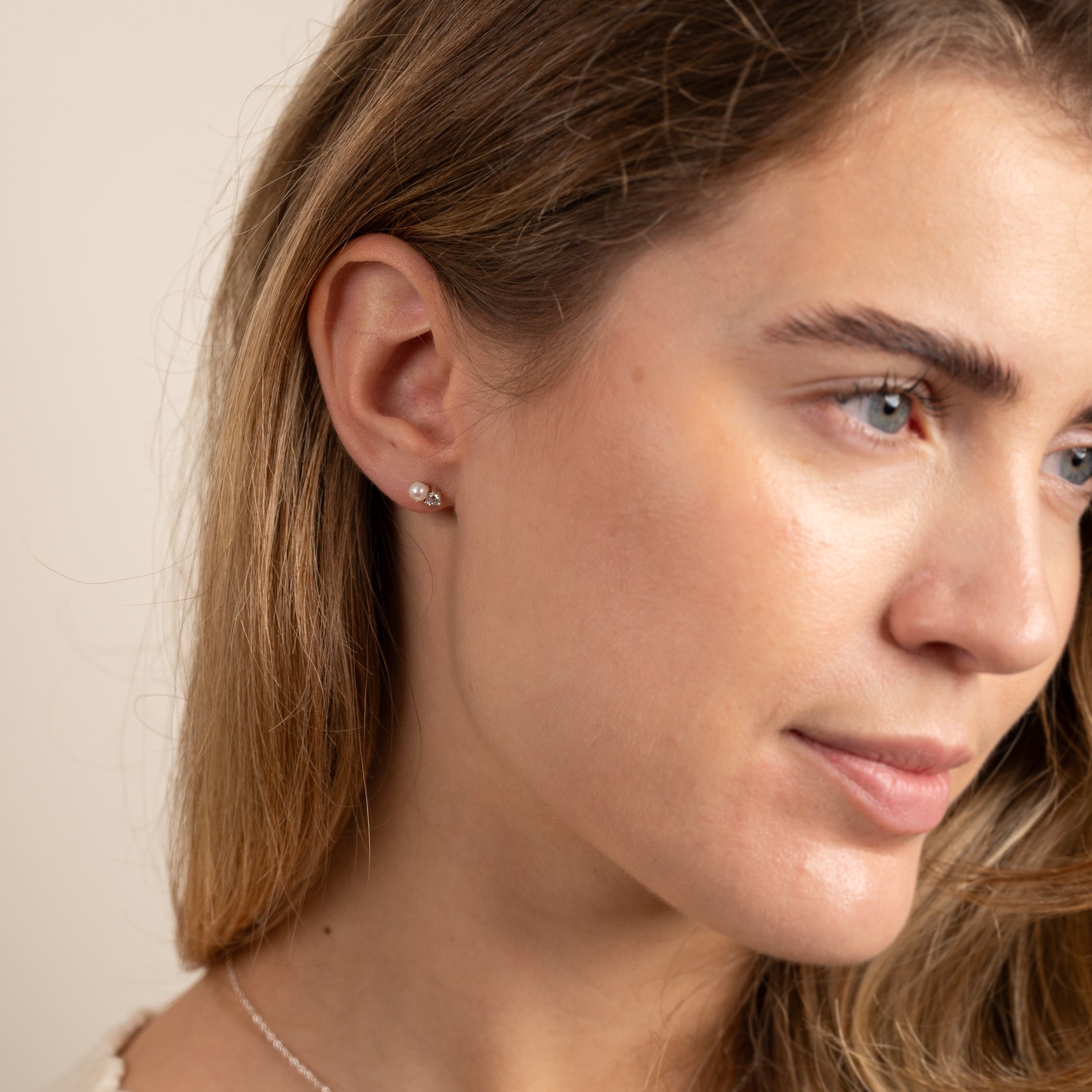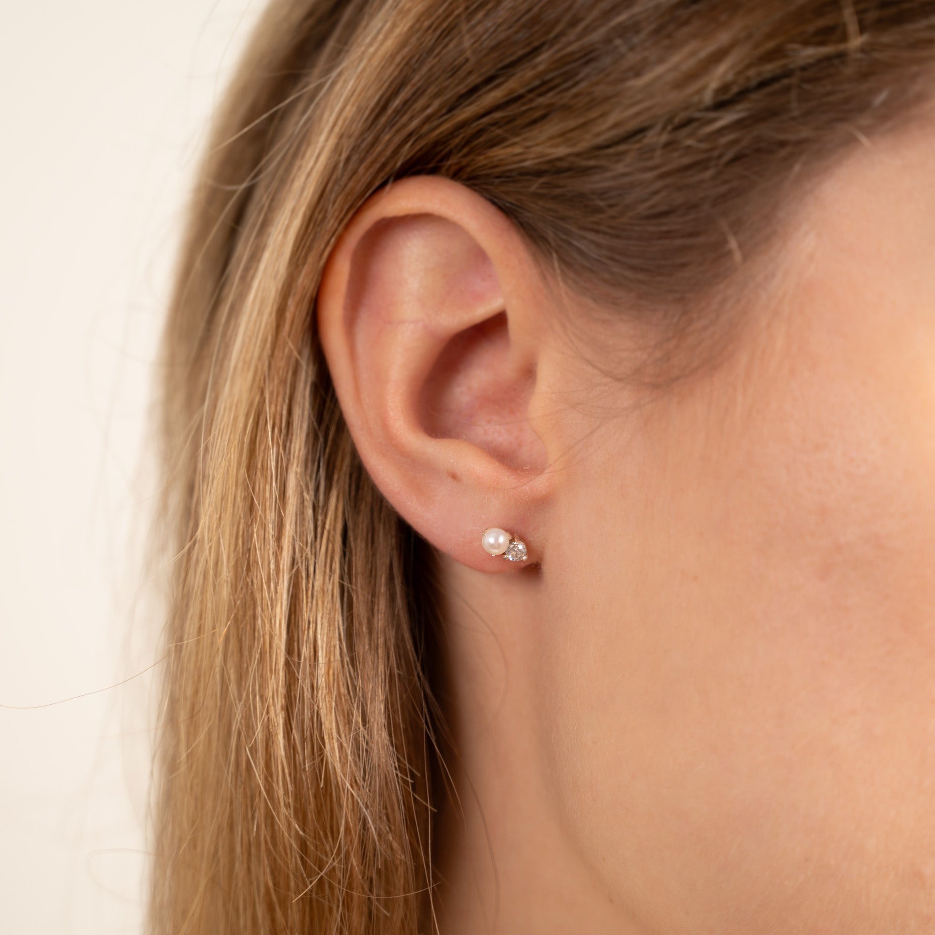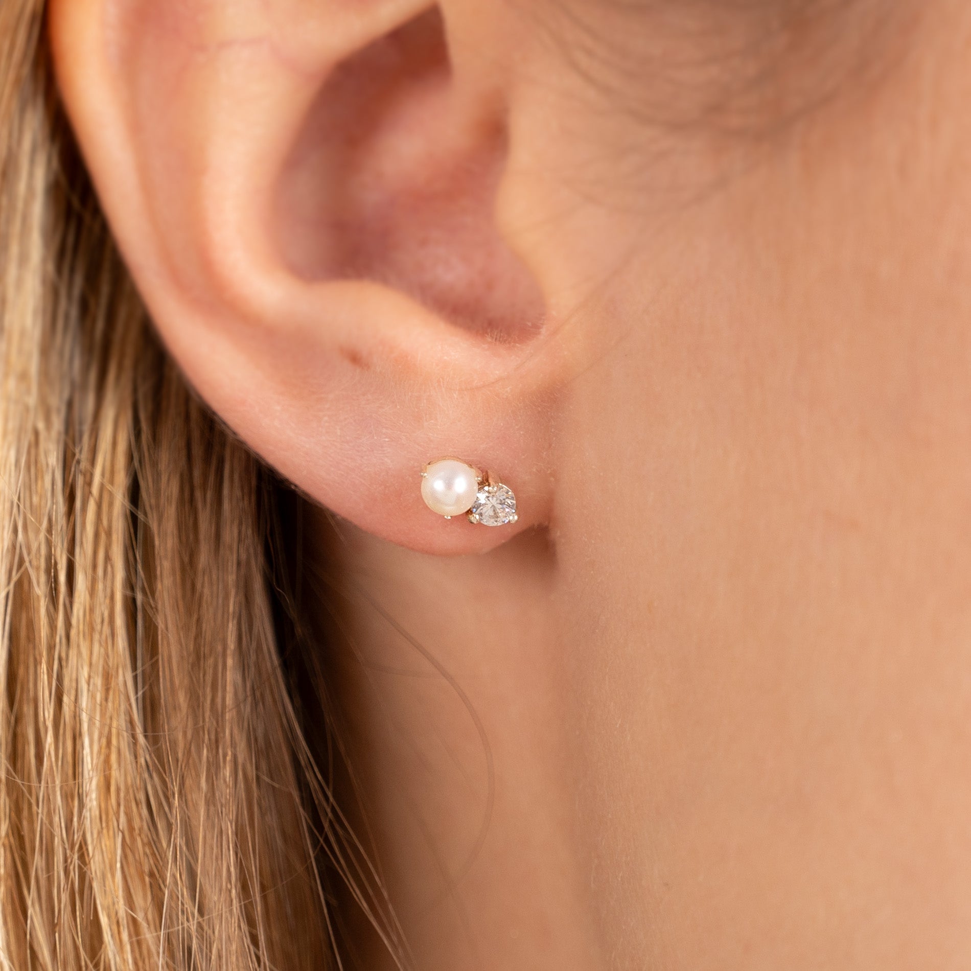 Our Hannah earrings have a classy and timeless design. They consist of a nice little freshwater pearl and a zircon that sit next to each other. The earrings measure 7 mm.