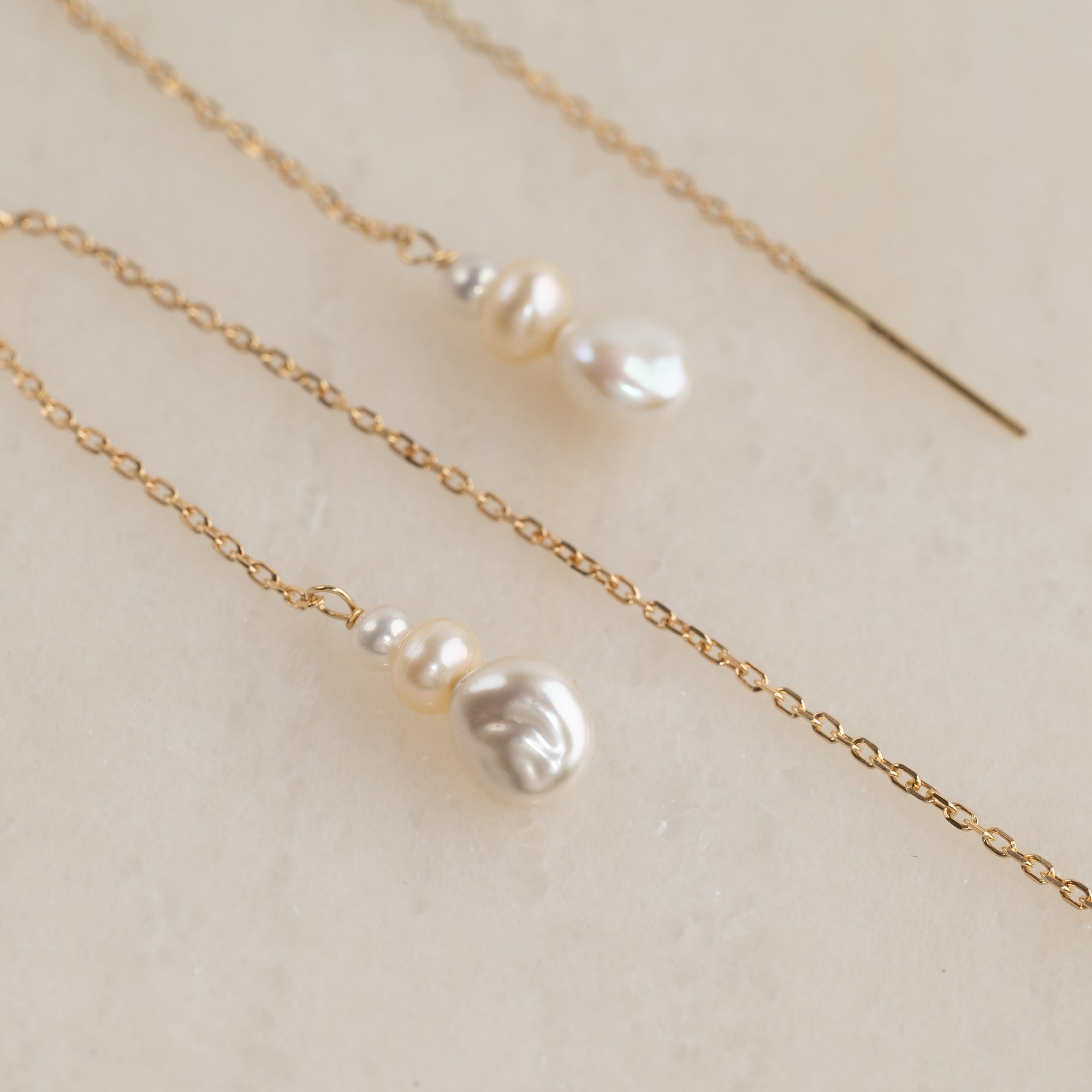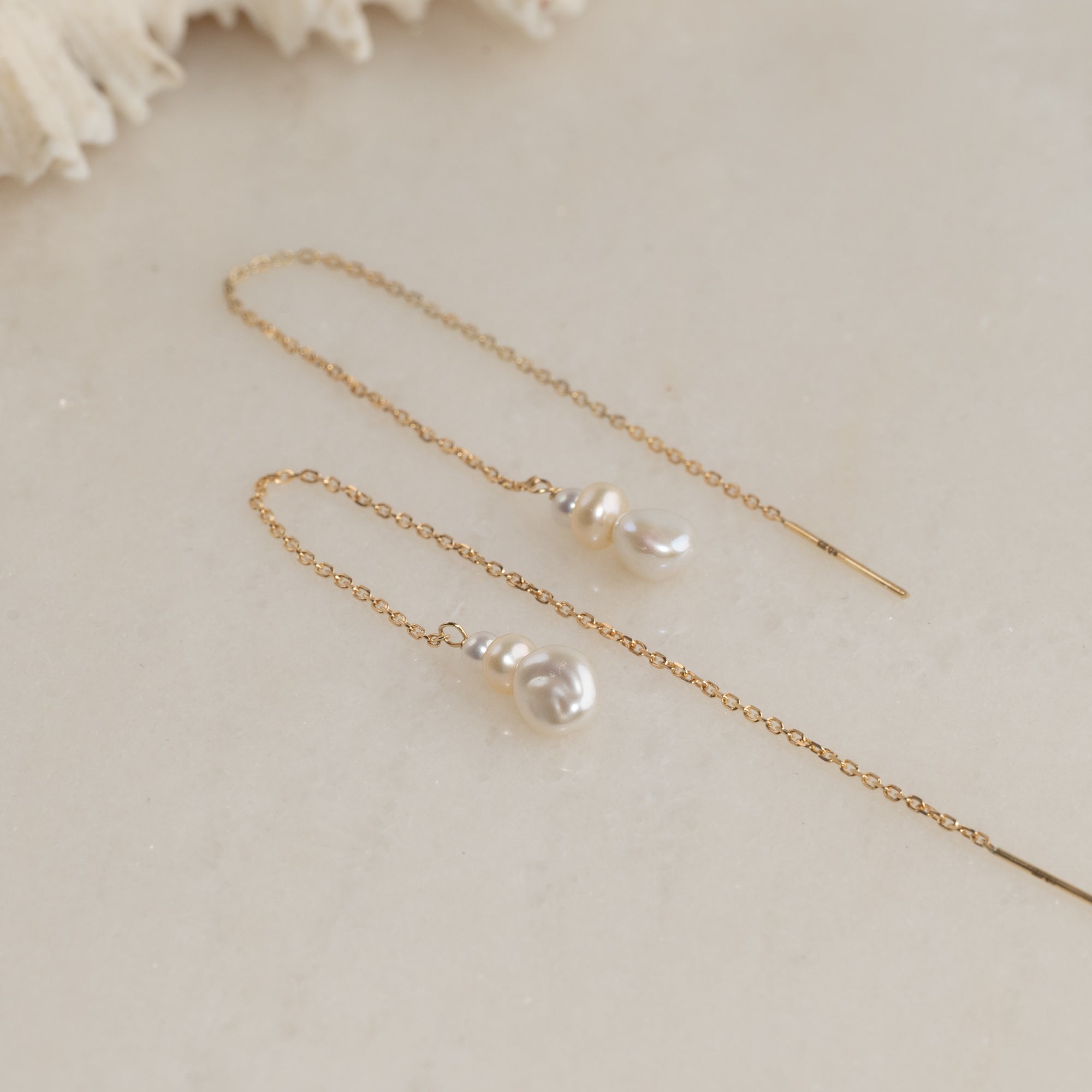 They can be worn alone for a simple and elegant expression, or styled with other earrings if you have multiple piercings. The chain adds lightness, while the pearls gives them a feminine touch.