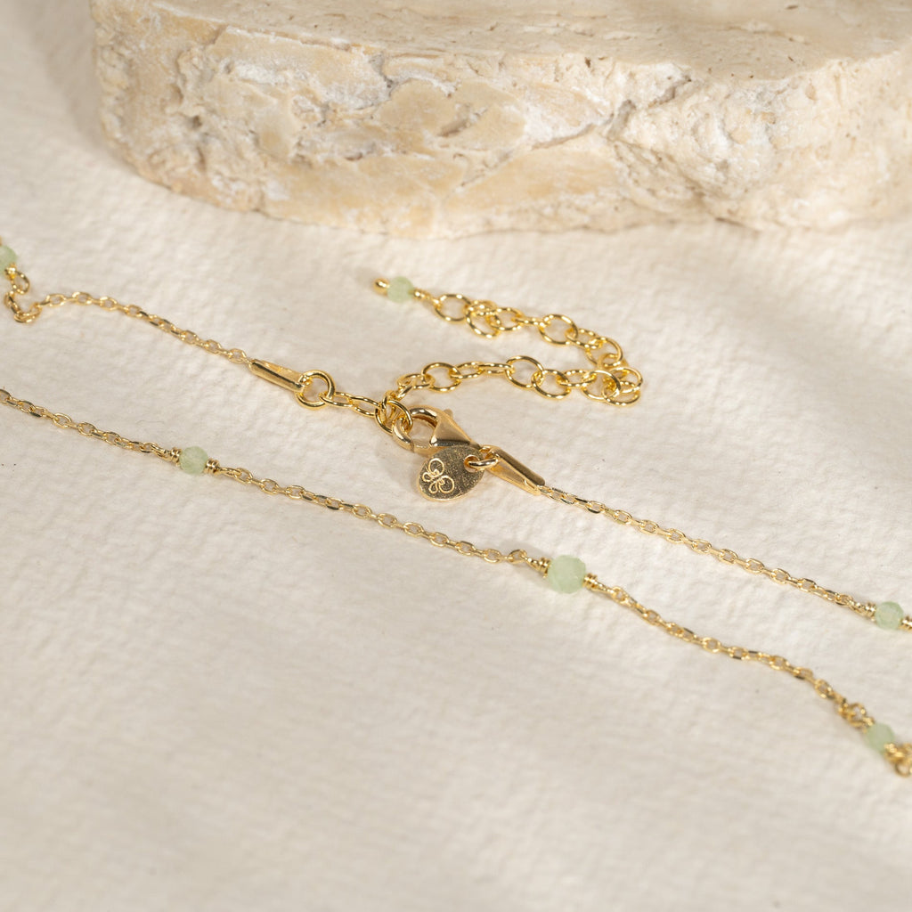 Necklace made from 100% recycled 18-karat gold-plated sterling silver with green jade stones.