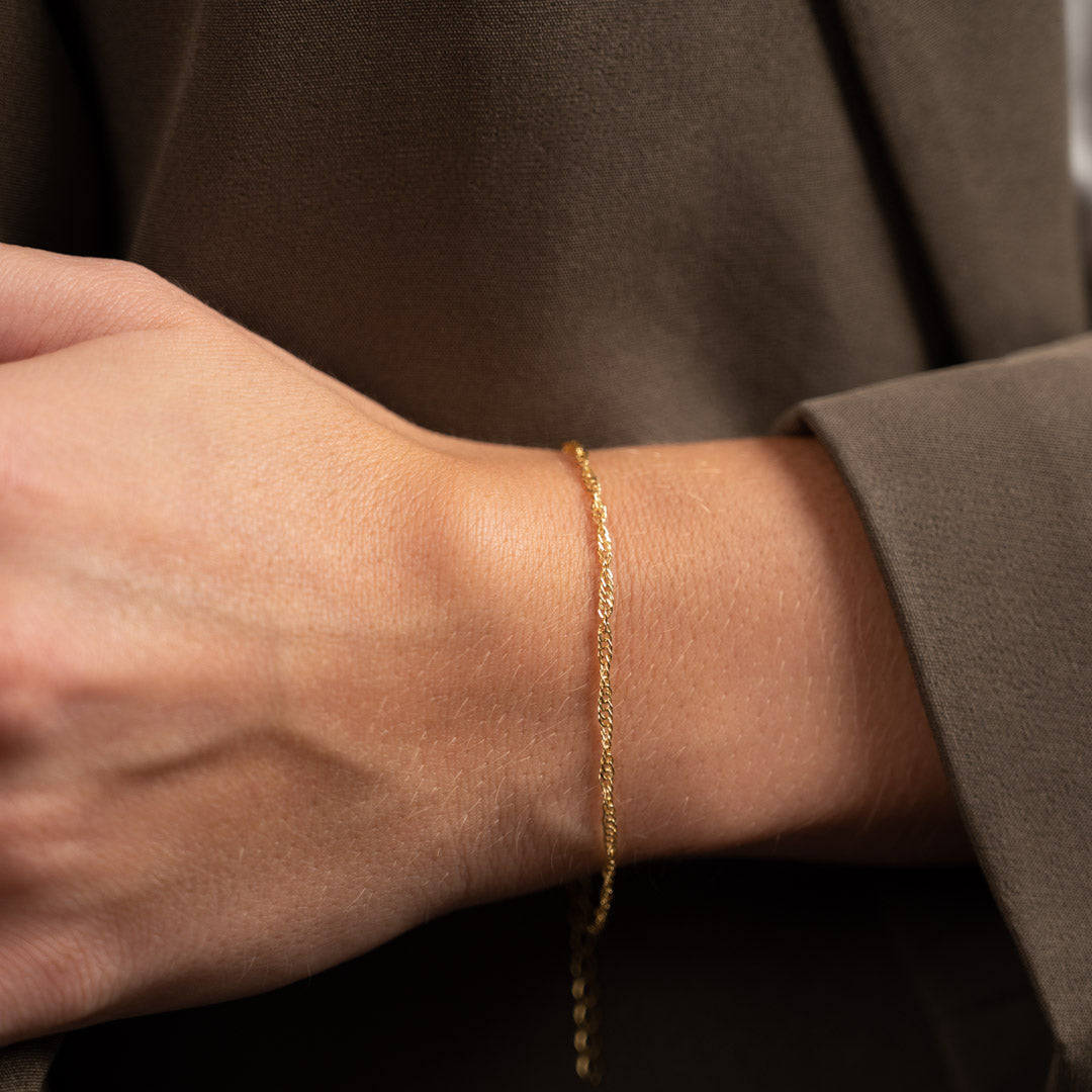 Our Leonora bracelet has an elegant and feminine look. The wristbands moving twisted shape gives the bracelet an understated organic expression that is so beautiful. An elegant bracelet, which fits well for all occasions.