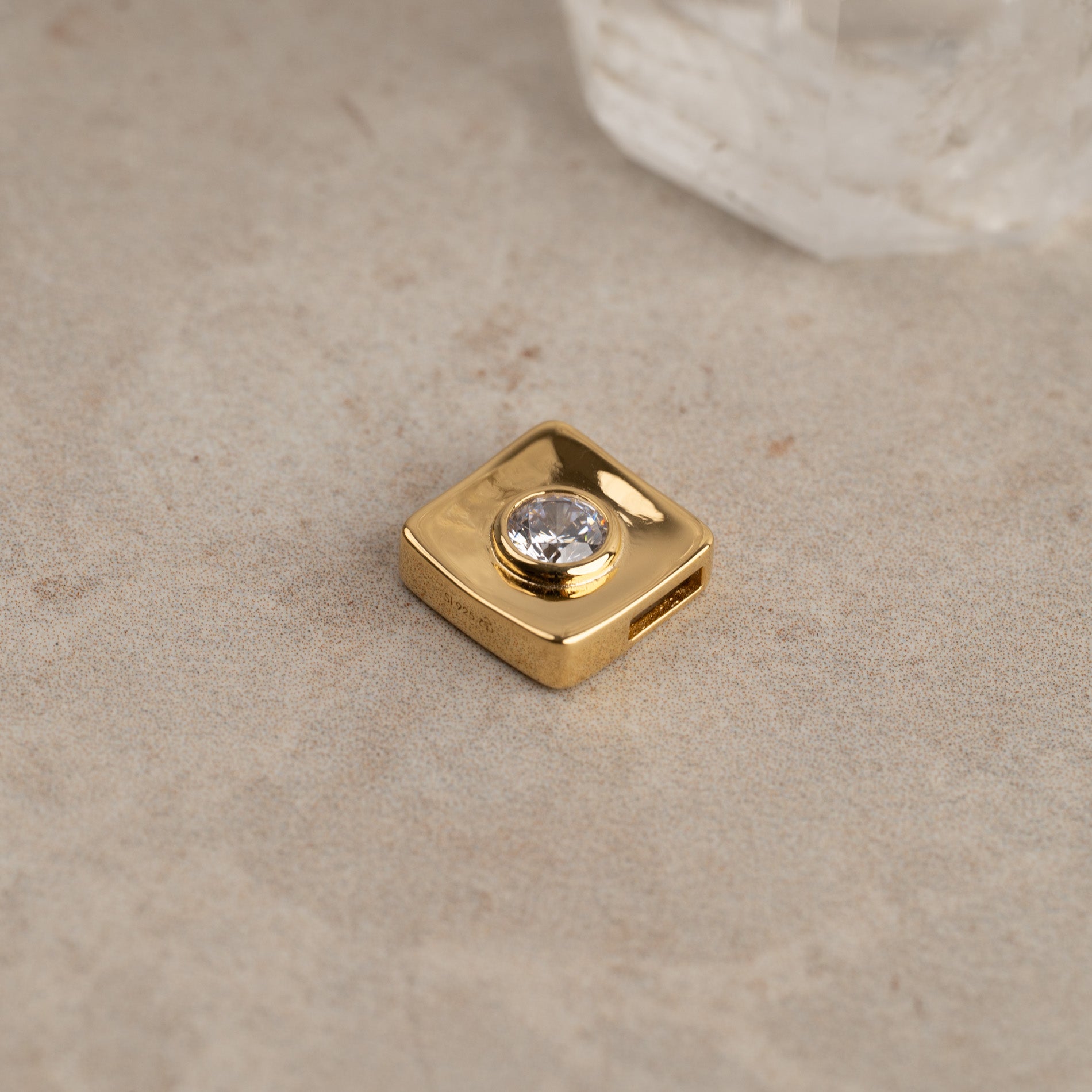 Gold-plated square pendant with a clear zircon