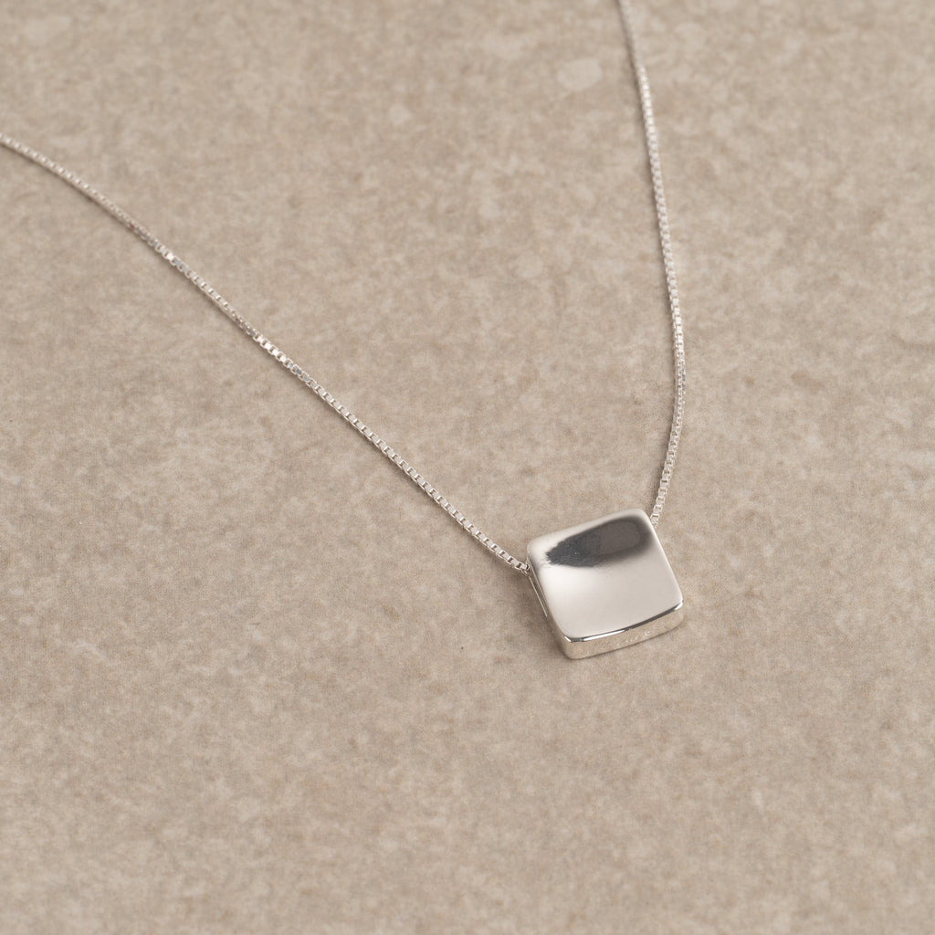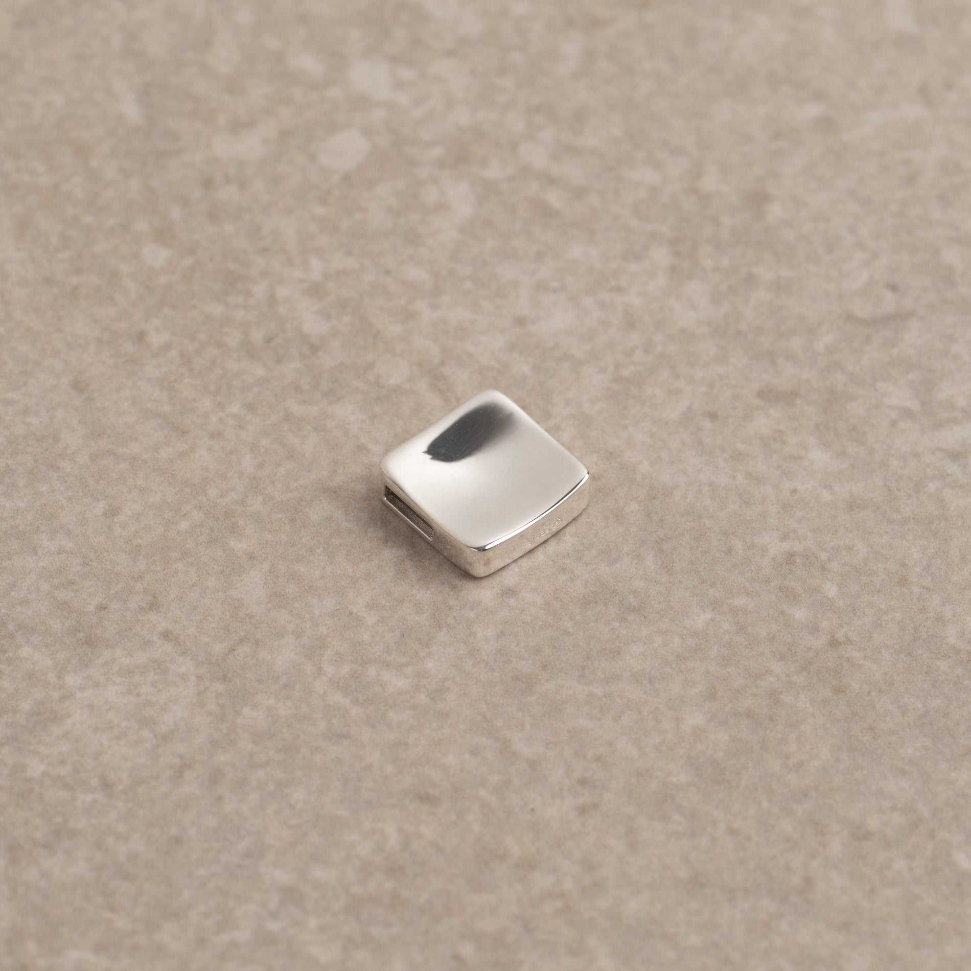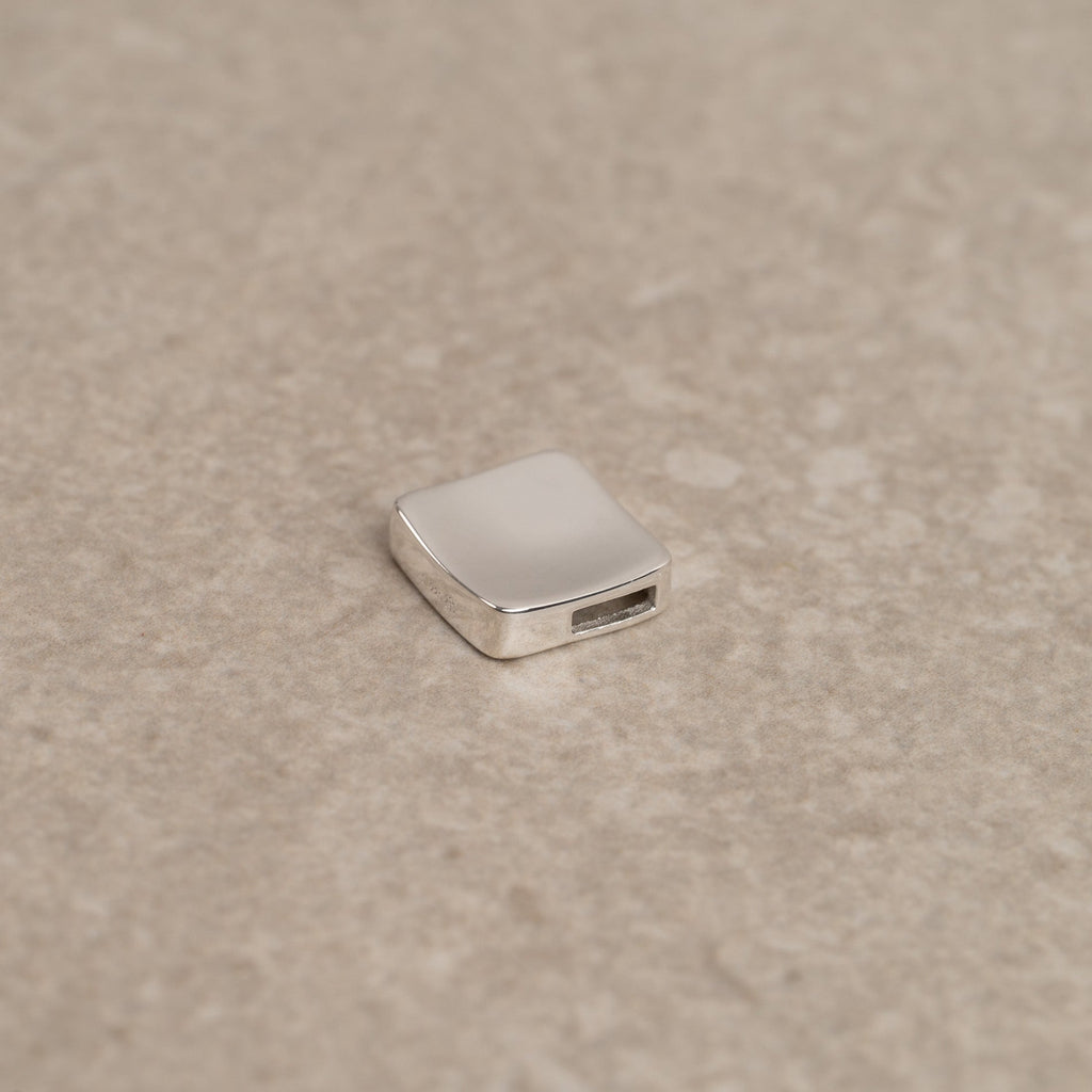 The square design with softly rounded corners creates a subtle, retro-inspired feel. Measuring 12 x 12 mm, the pendant features a slide-in opening of approximately 4 mm, making it easy to add to any necklace.