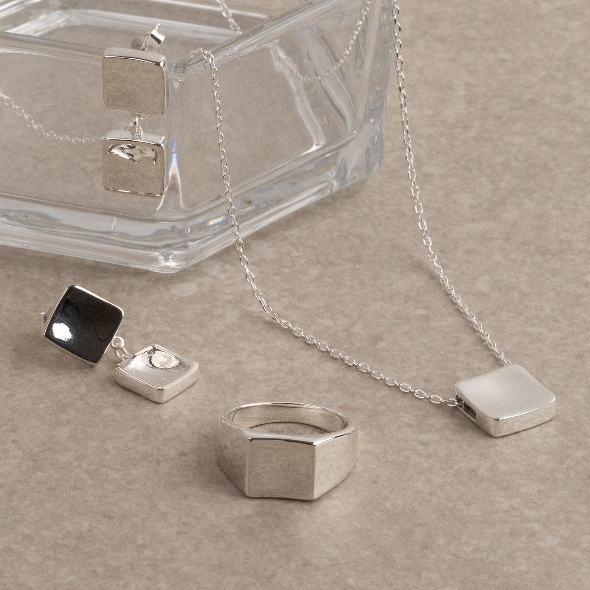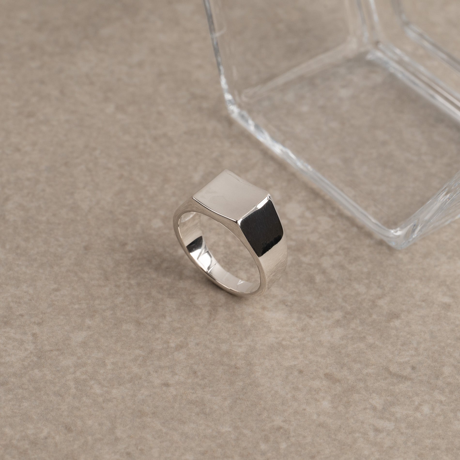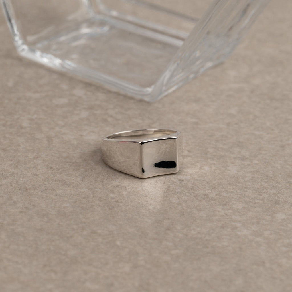 A classic square signet ring crafted from 100% recycled 925 sterling silver. Its bold, retro-inspired design adds instant character, making it the ultimate statement piece.