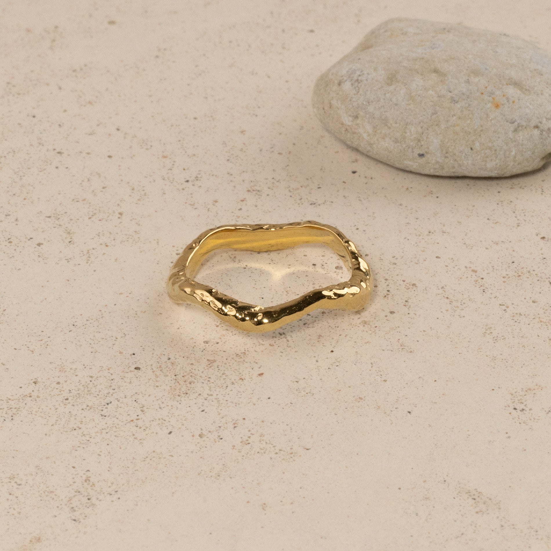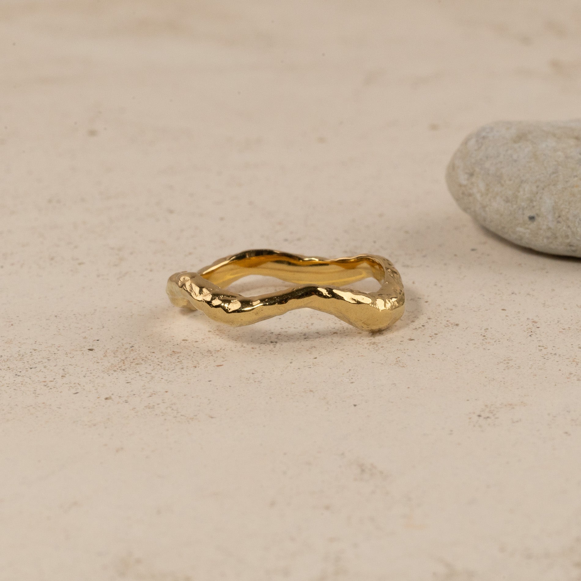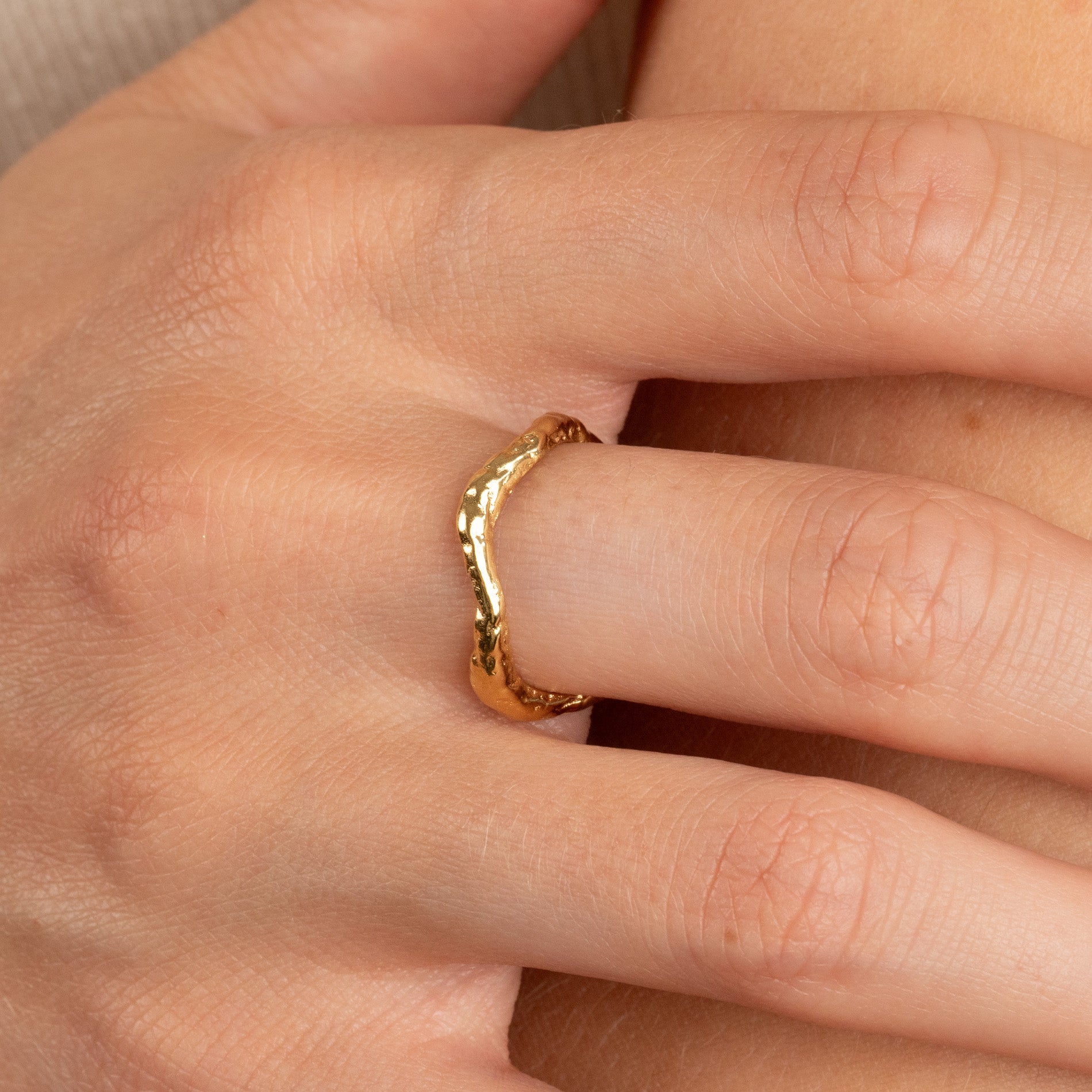 Organically undulating ring in gold-plated silver with a raw surface