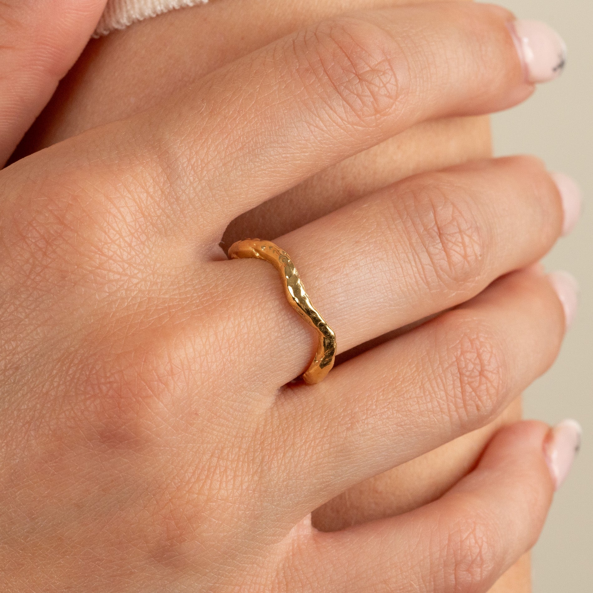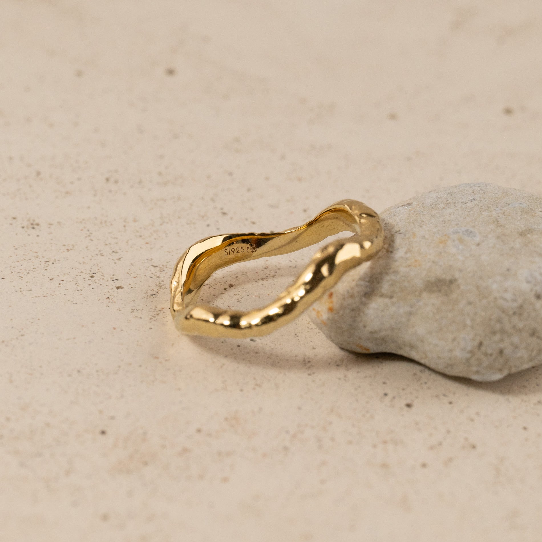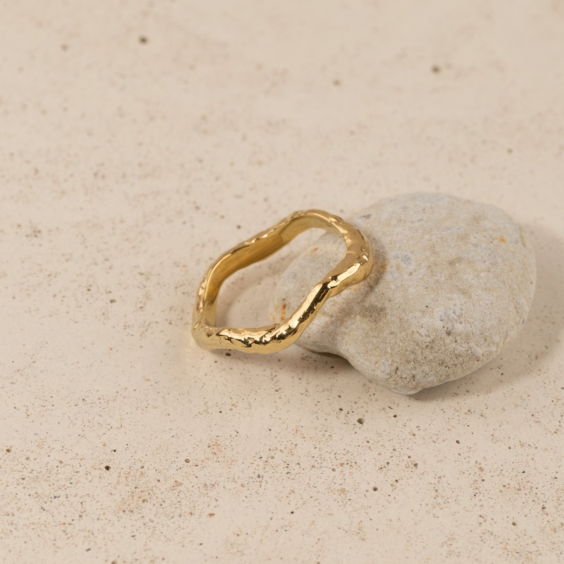 Organically undulating ring in gold-plated silver with a raw surface