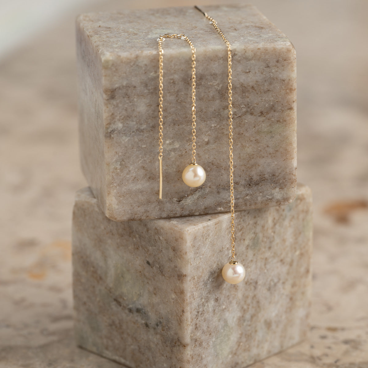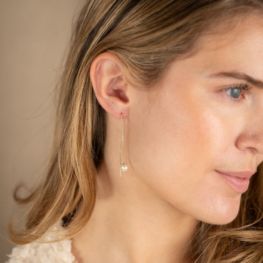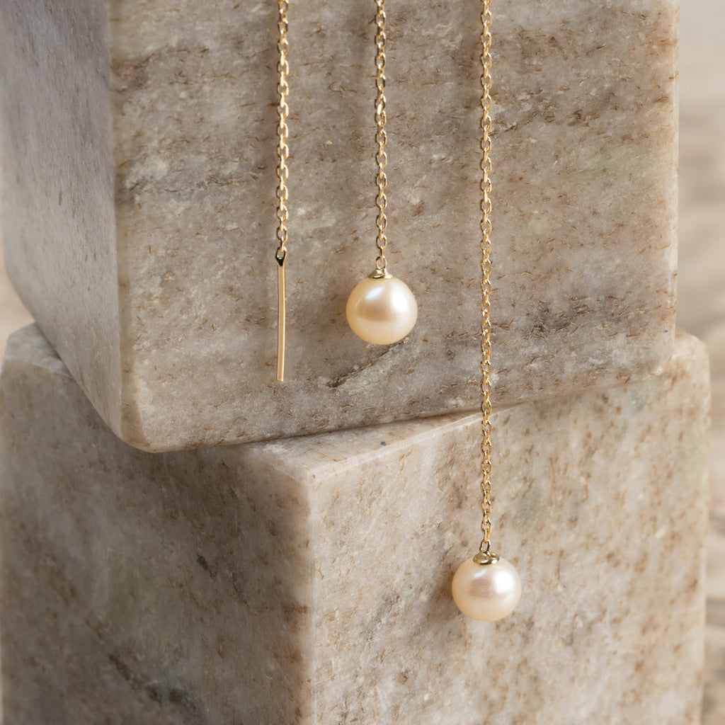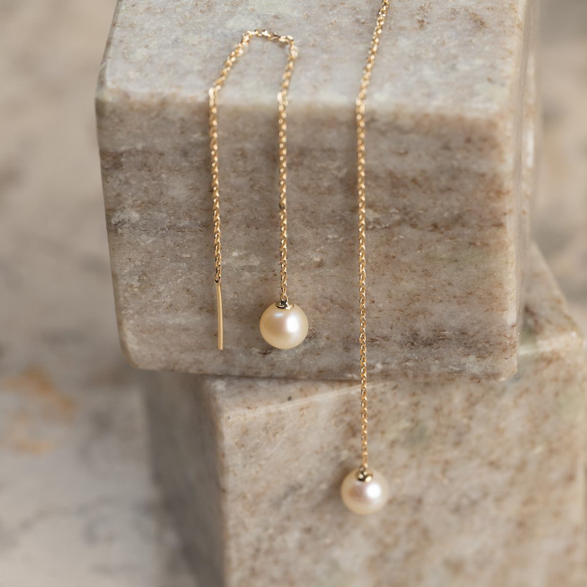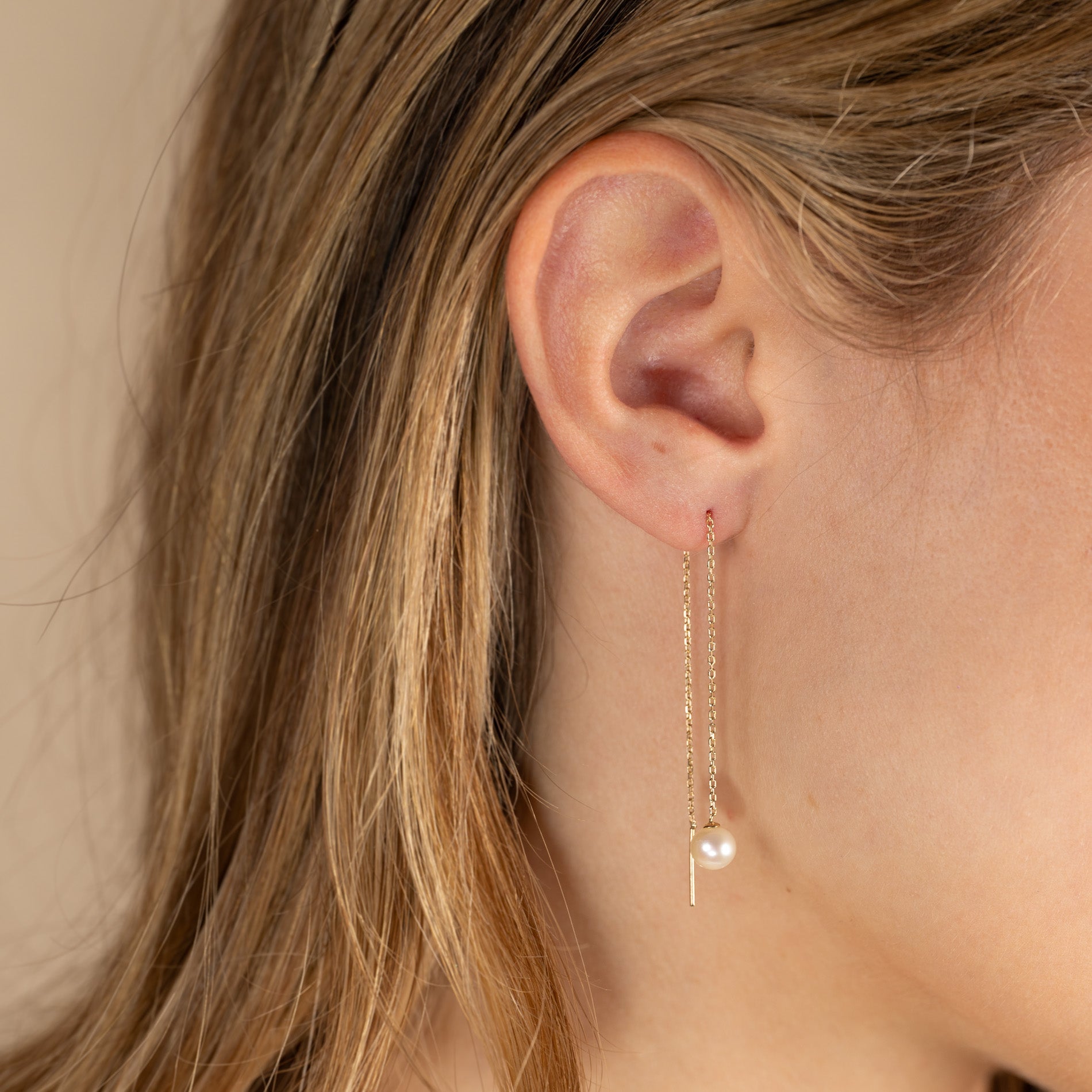 The earrings can be worn alone or paired with other earrings if you have multiple piercings. The fine gold chain makes the earring incredibly elegant, with the pearl adding a feminine touch.