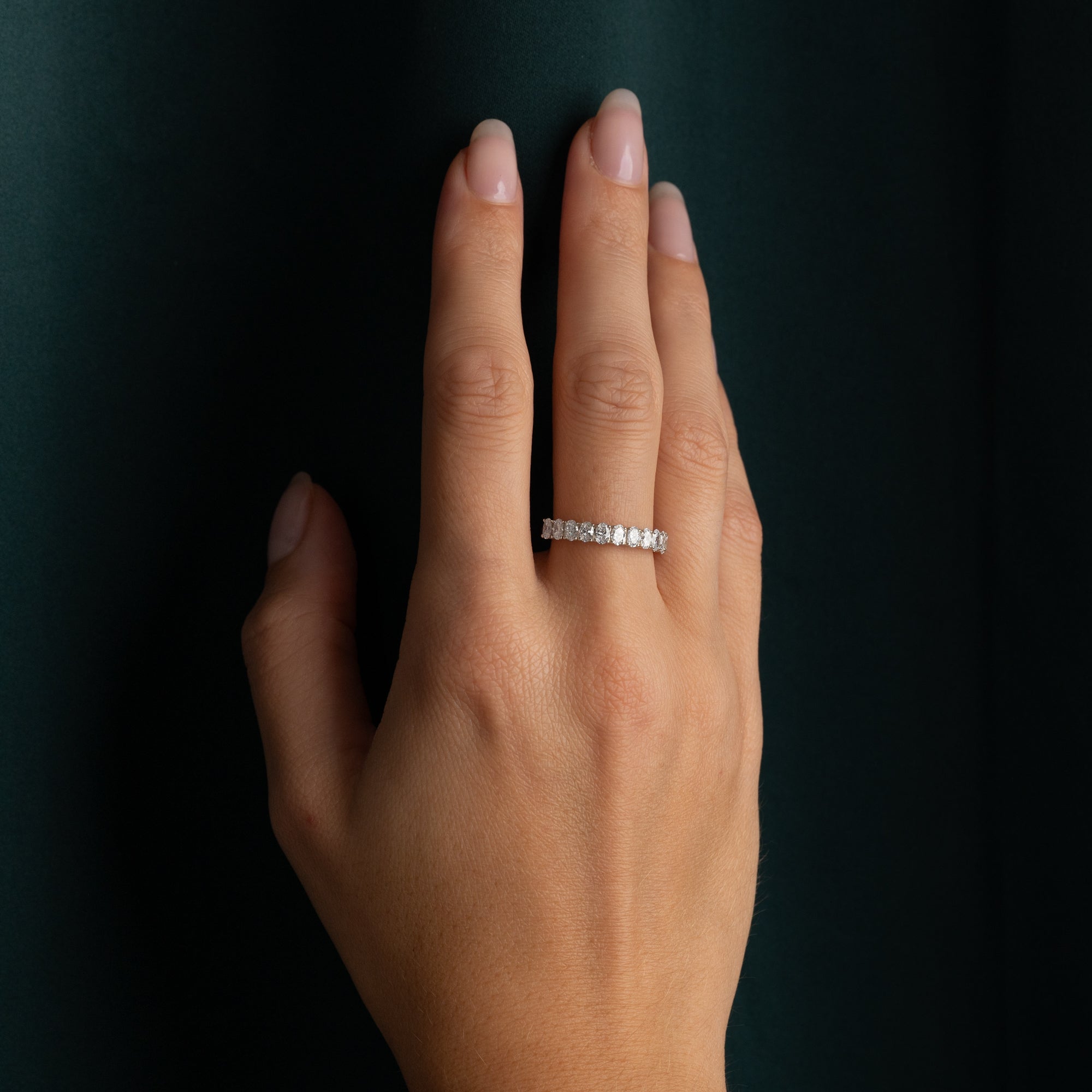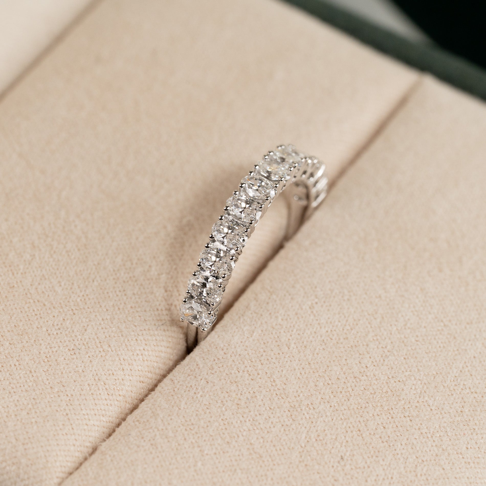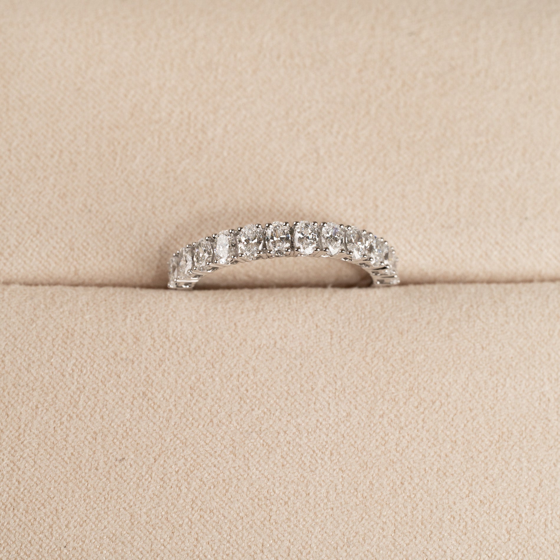 Alliance ring in 14 kt. white gold with 12 oval lab-grown diamonds with a total weight of 1.0 ct., set along the upper half of the ring band.