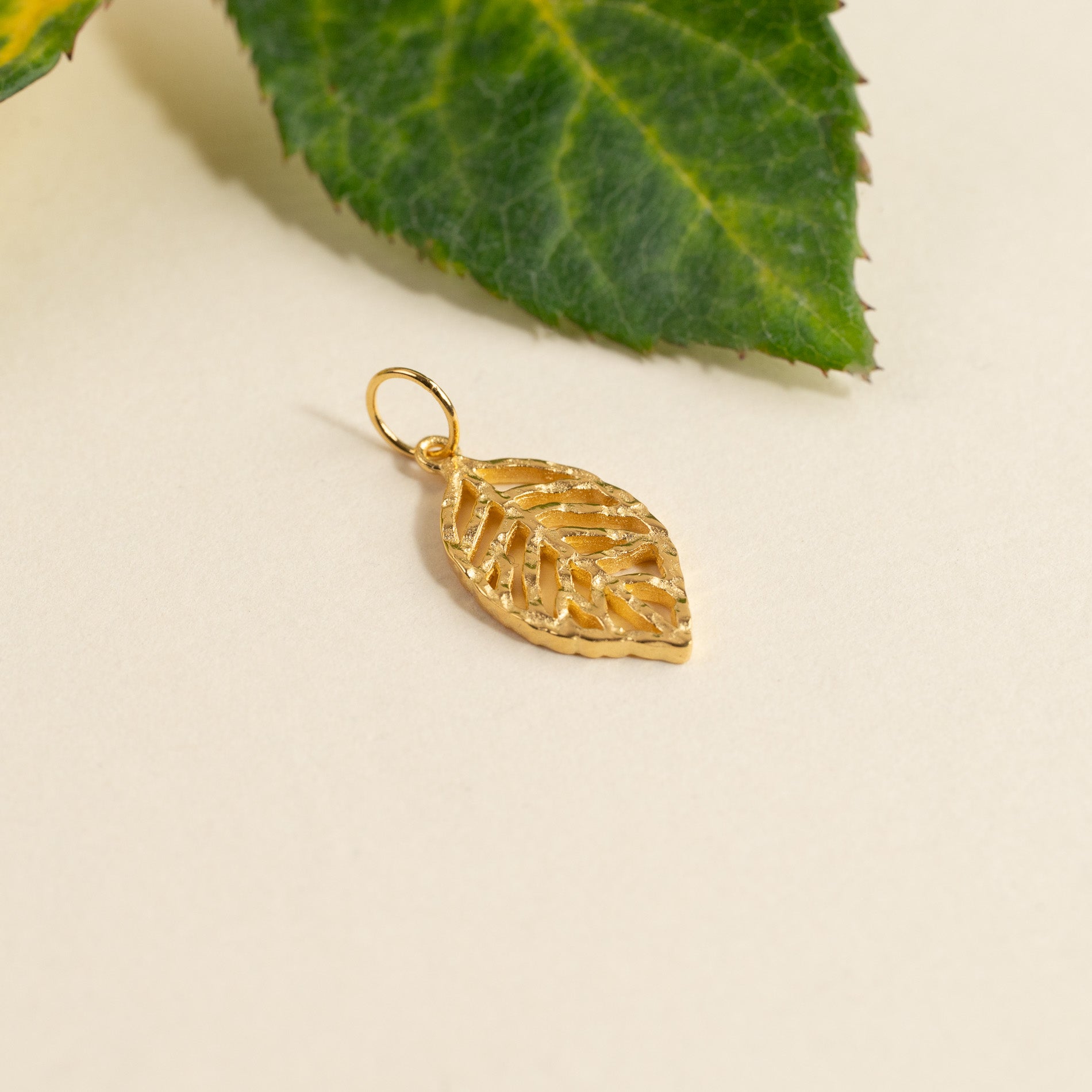 Leaf-shaped pendant with textured surface in gold-plated sterling silver