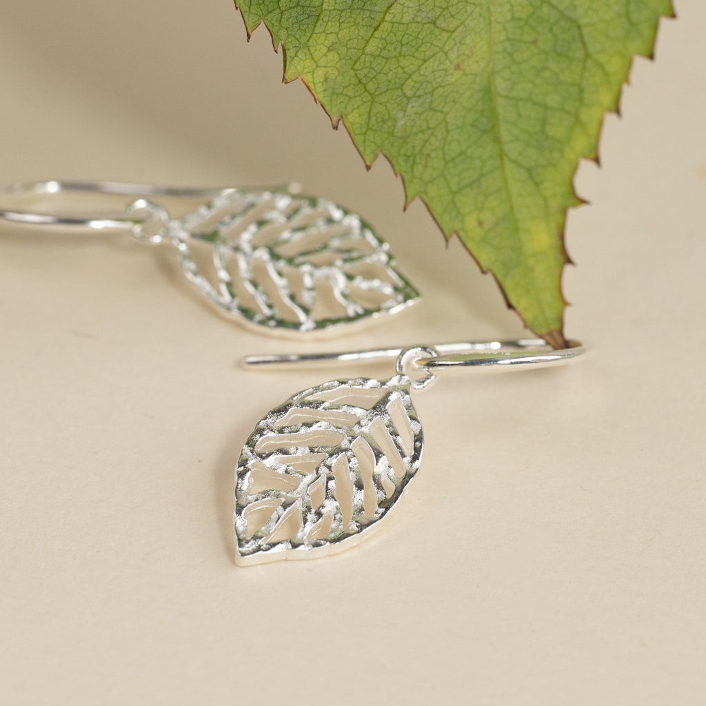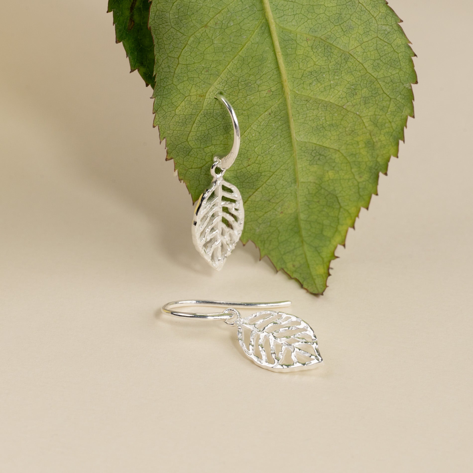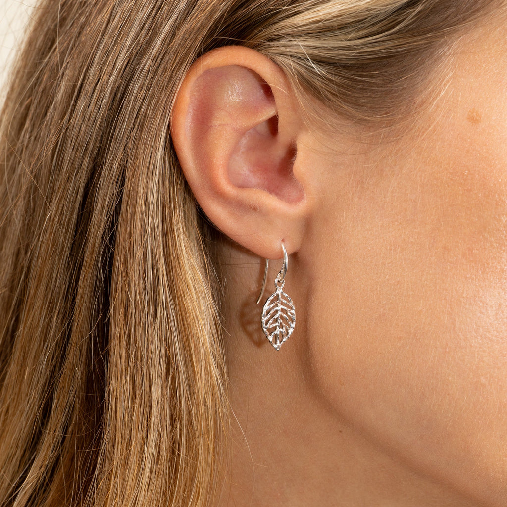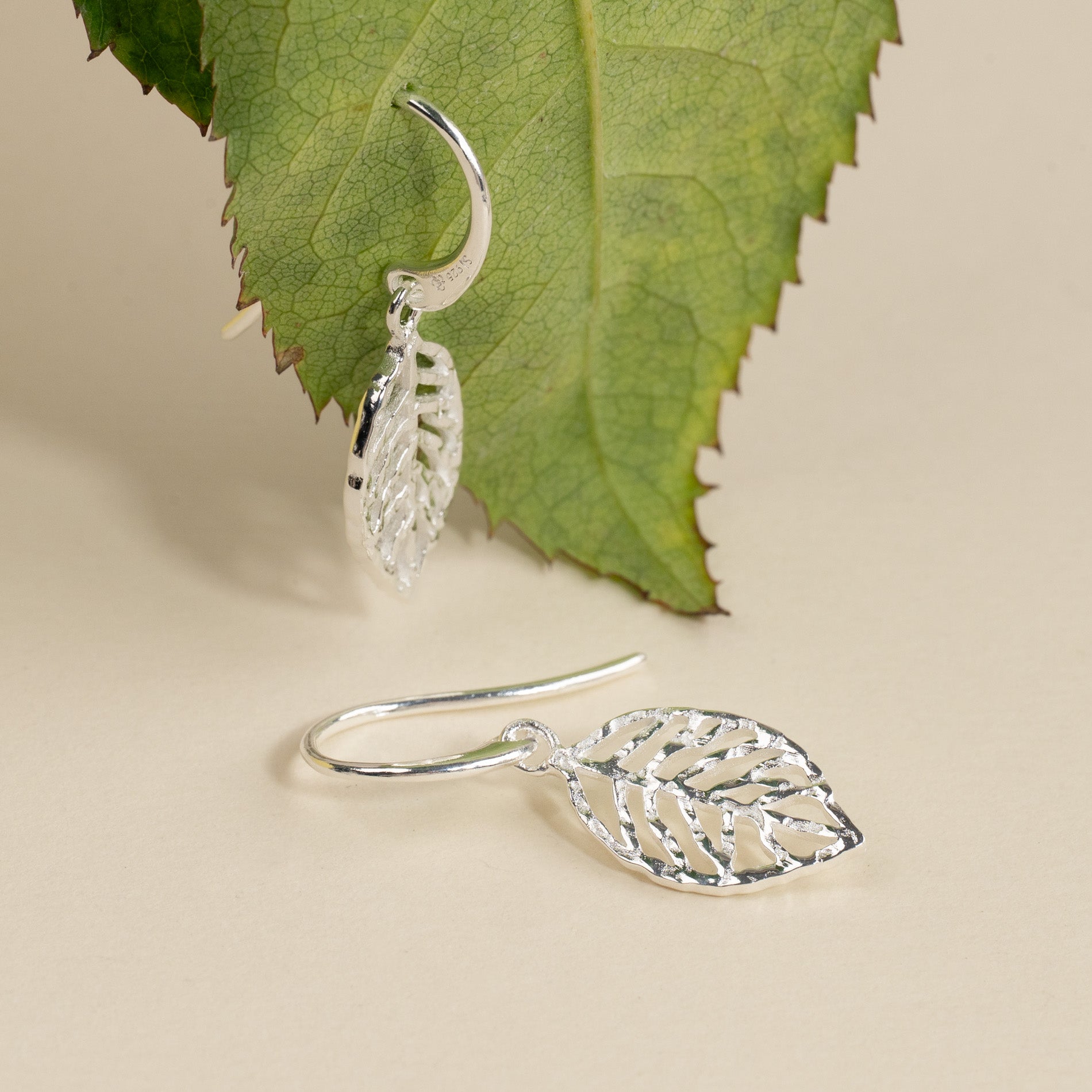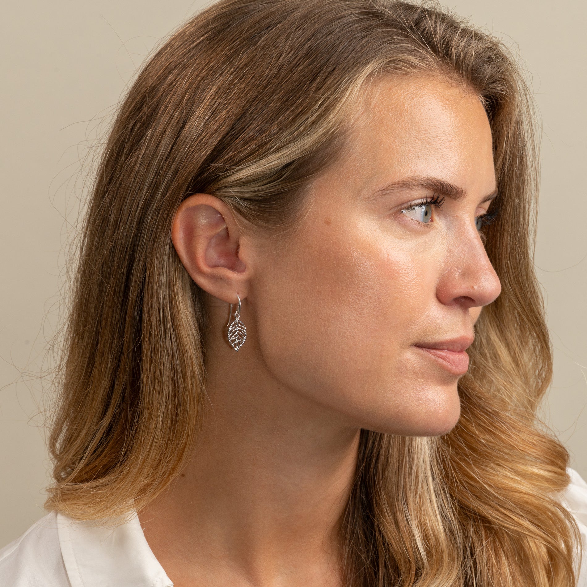 Earrings made from 100% recycled sterling silver with an elegant leaf-shaped design.