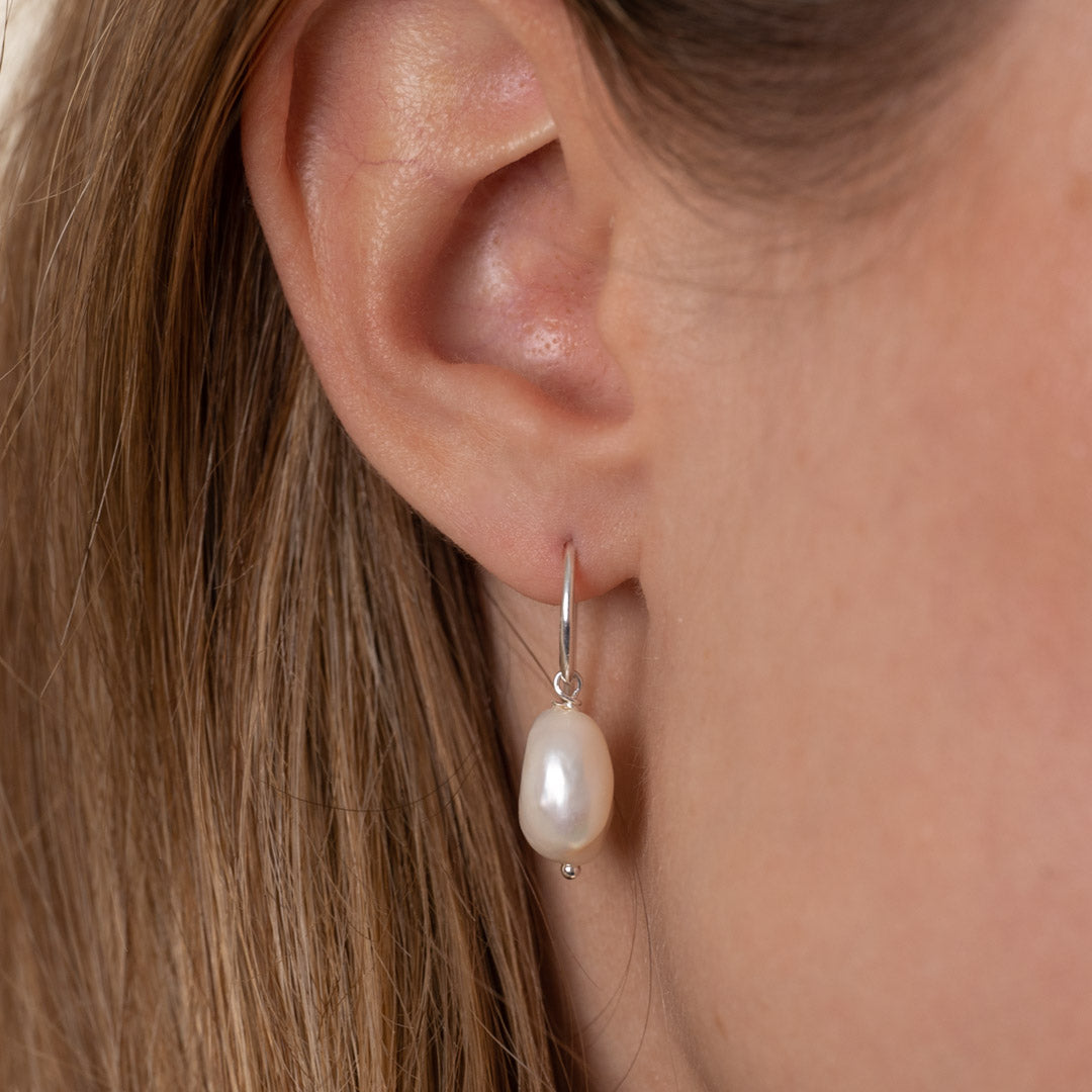 Earrings in 925 sterling silver with white baroque freshwater pearls.